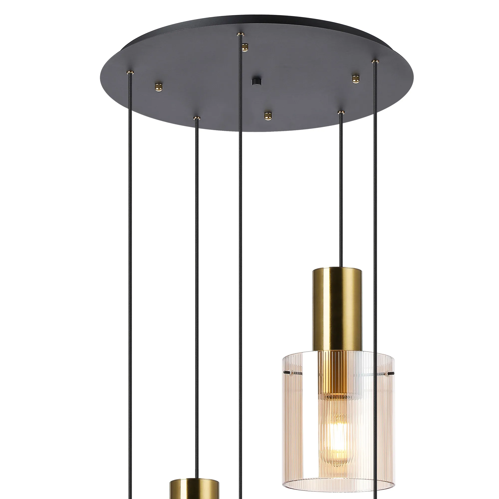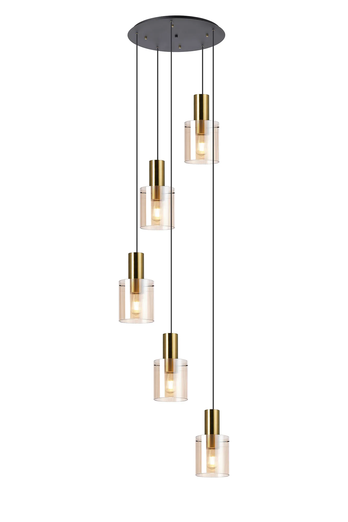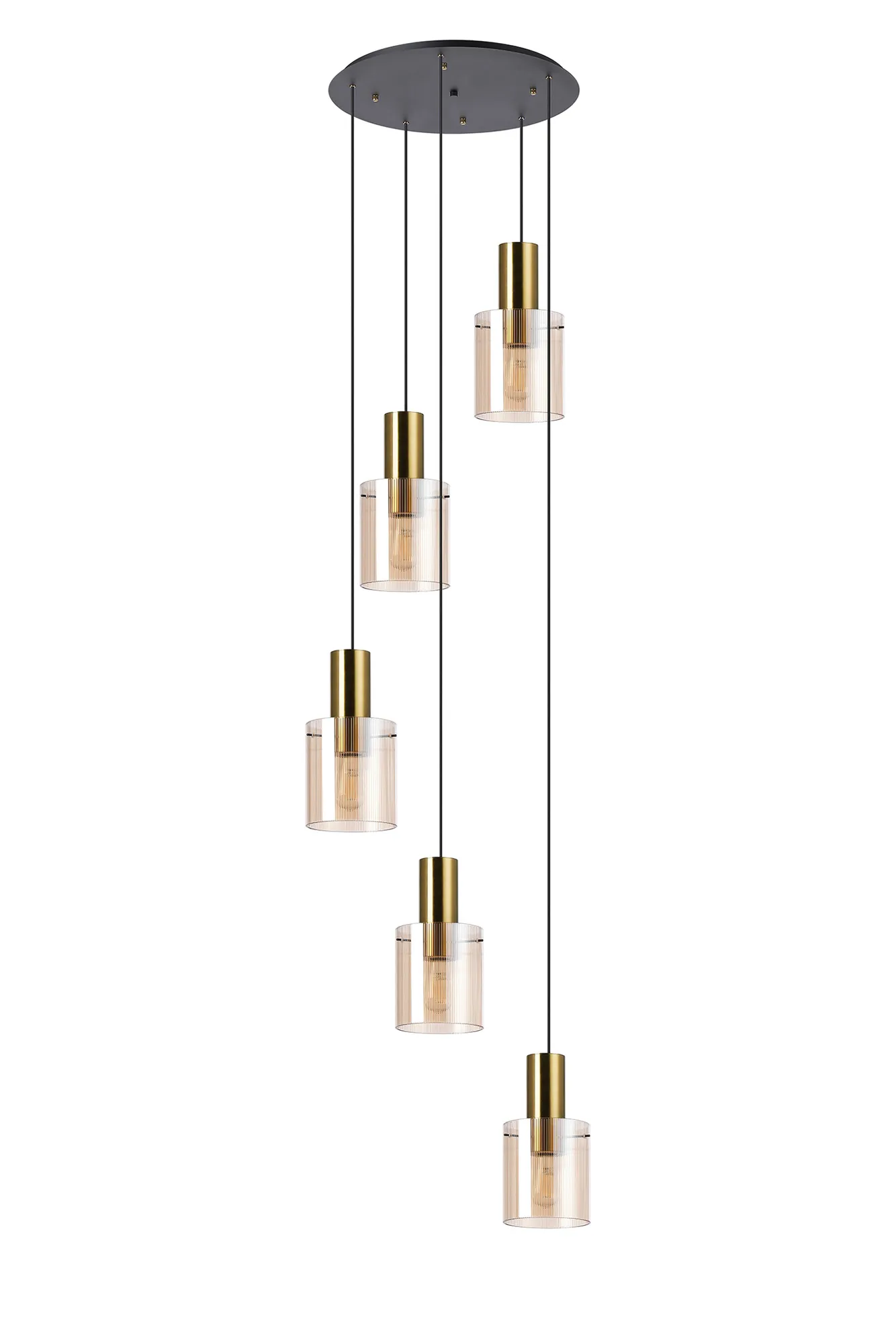OTHER Arienzo 65cm Round Pendant, 5 Light Adjustable E27, Brass/Sand Black/Amber Narrow Inner Lines