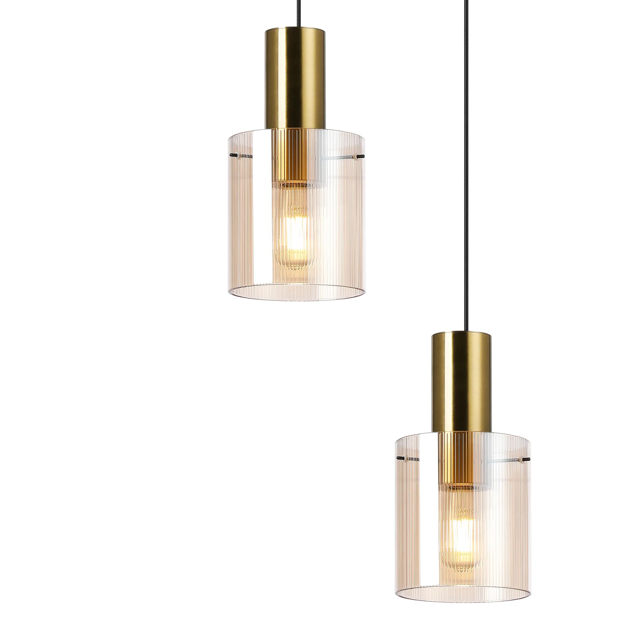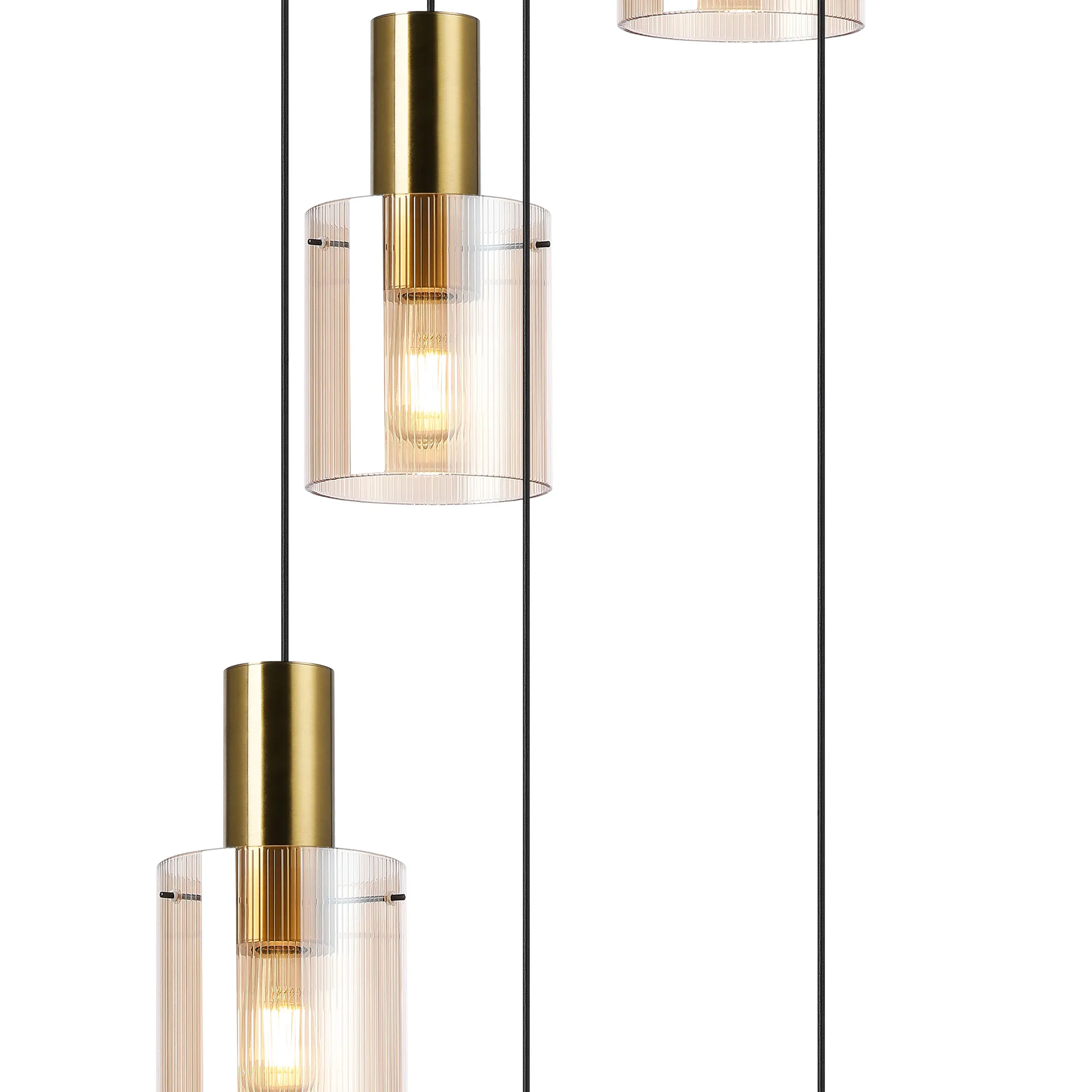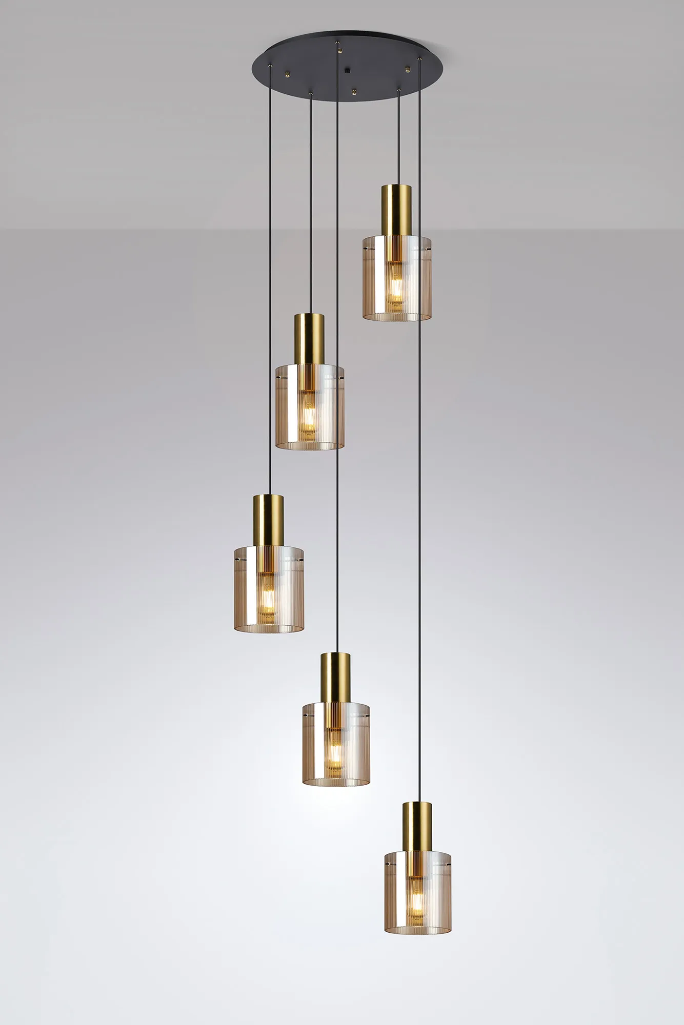 OTHER Arienzo 65cm Round Pendant, 5 Light Adjustable E27, Brass/Sand Black/Amber Narrow Inner Lines