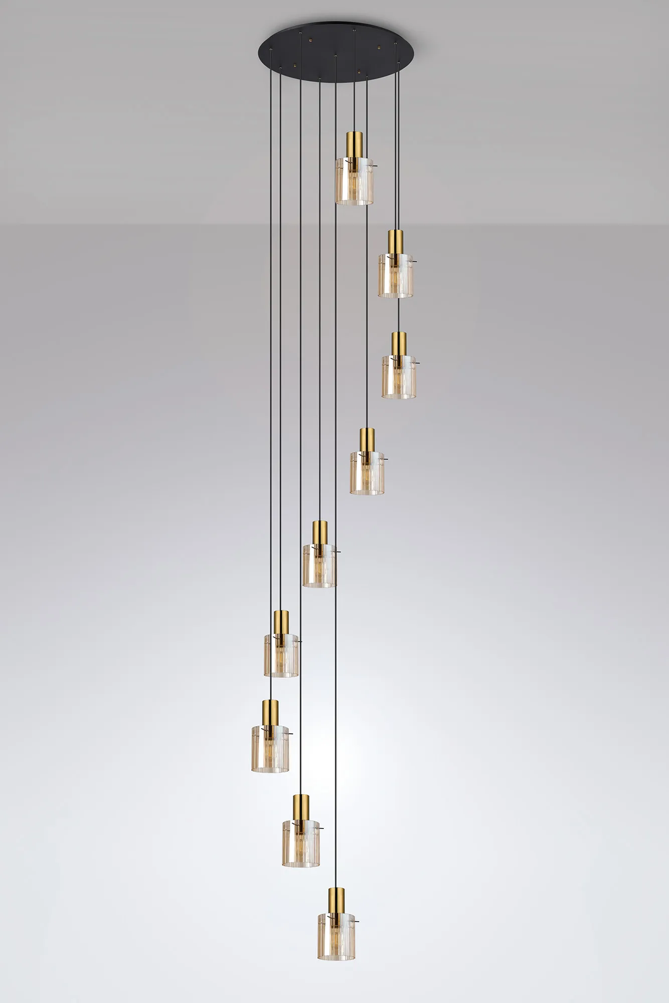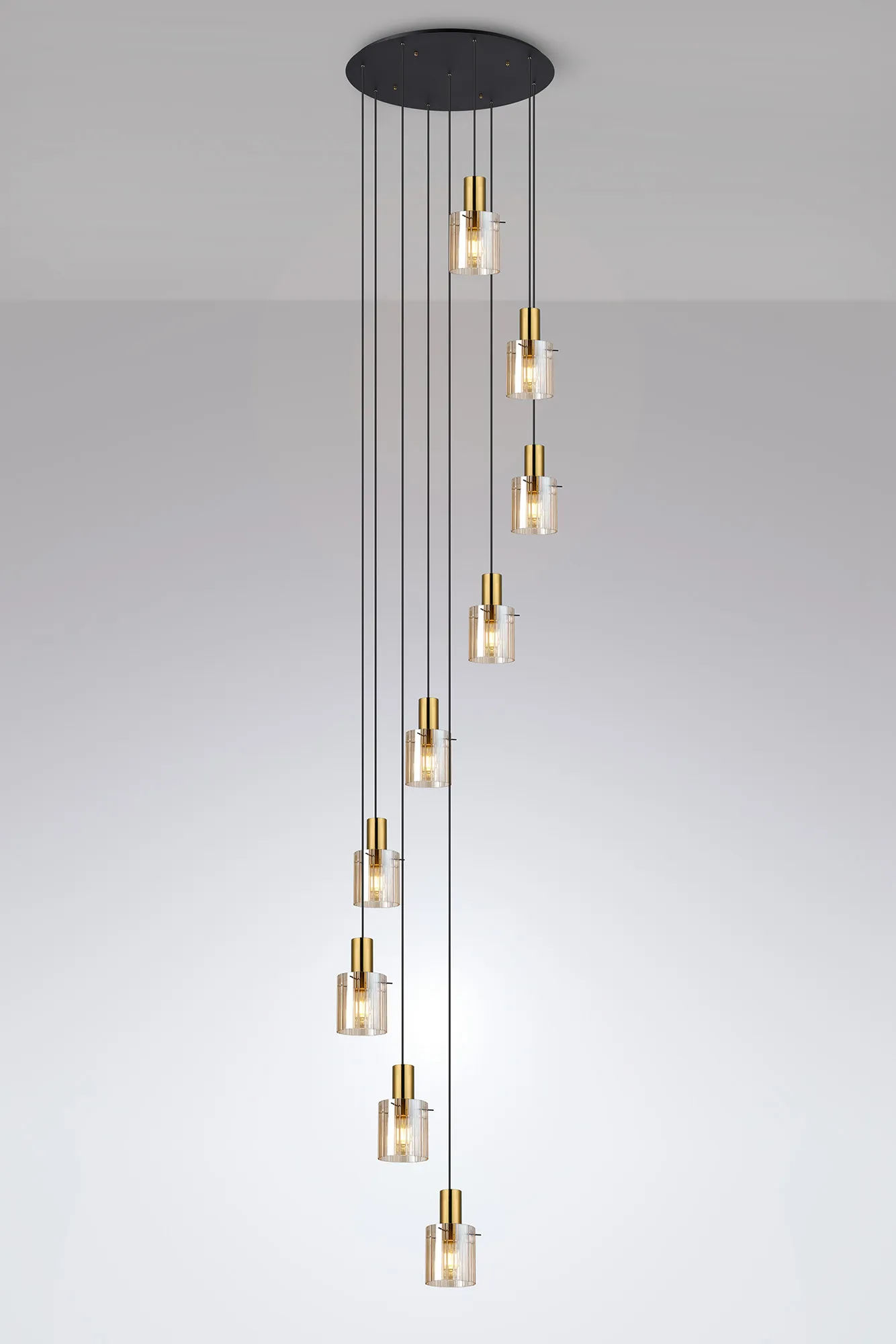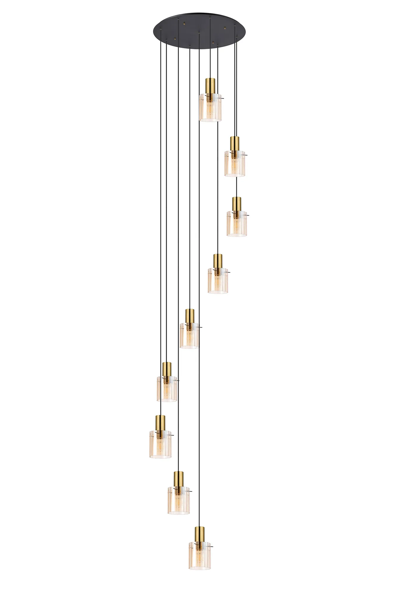 OTHER Arienzo 90cm Round Pendant, 9 Light Adjustable E27, Brass/Sand Black/Amber Wide Inner Lines