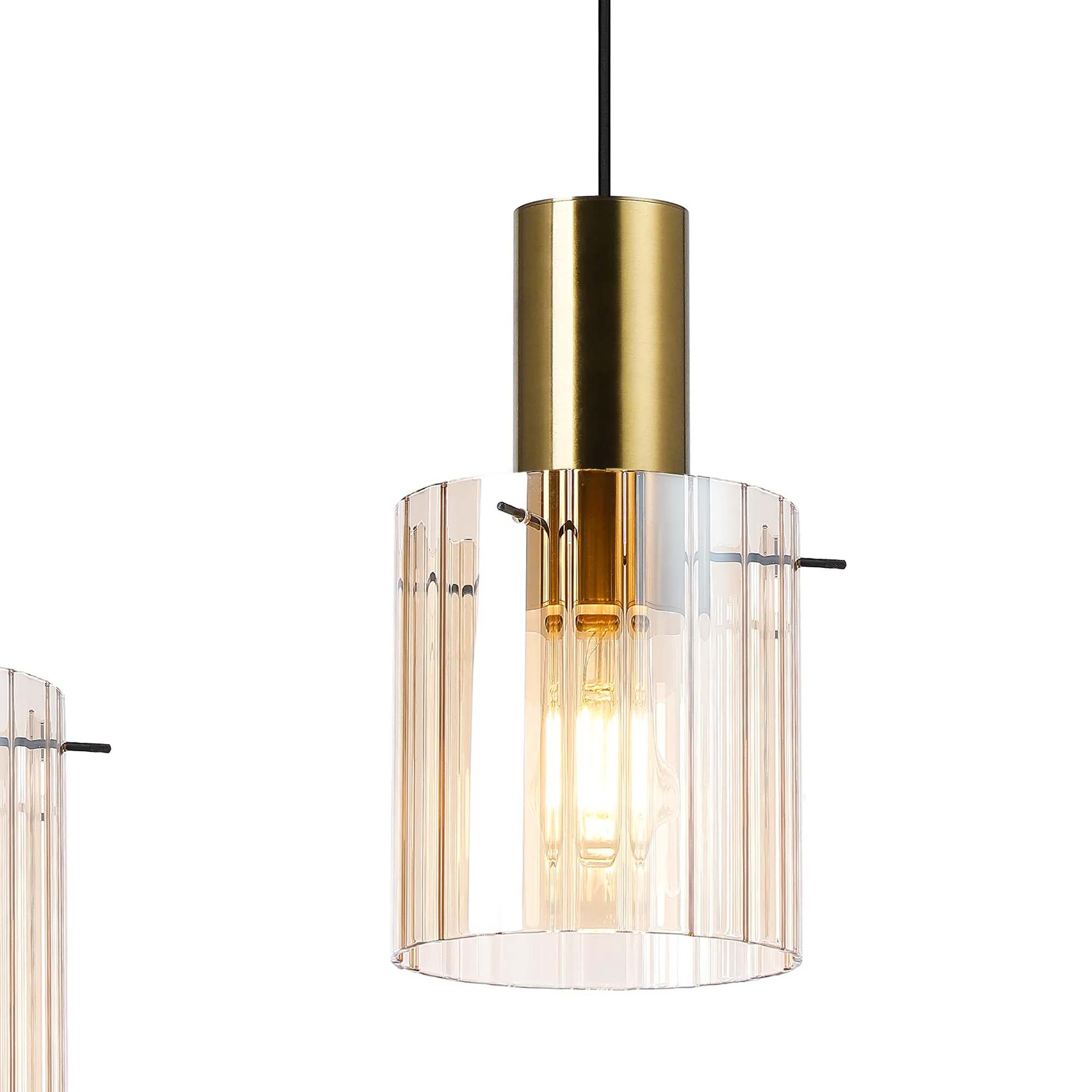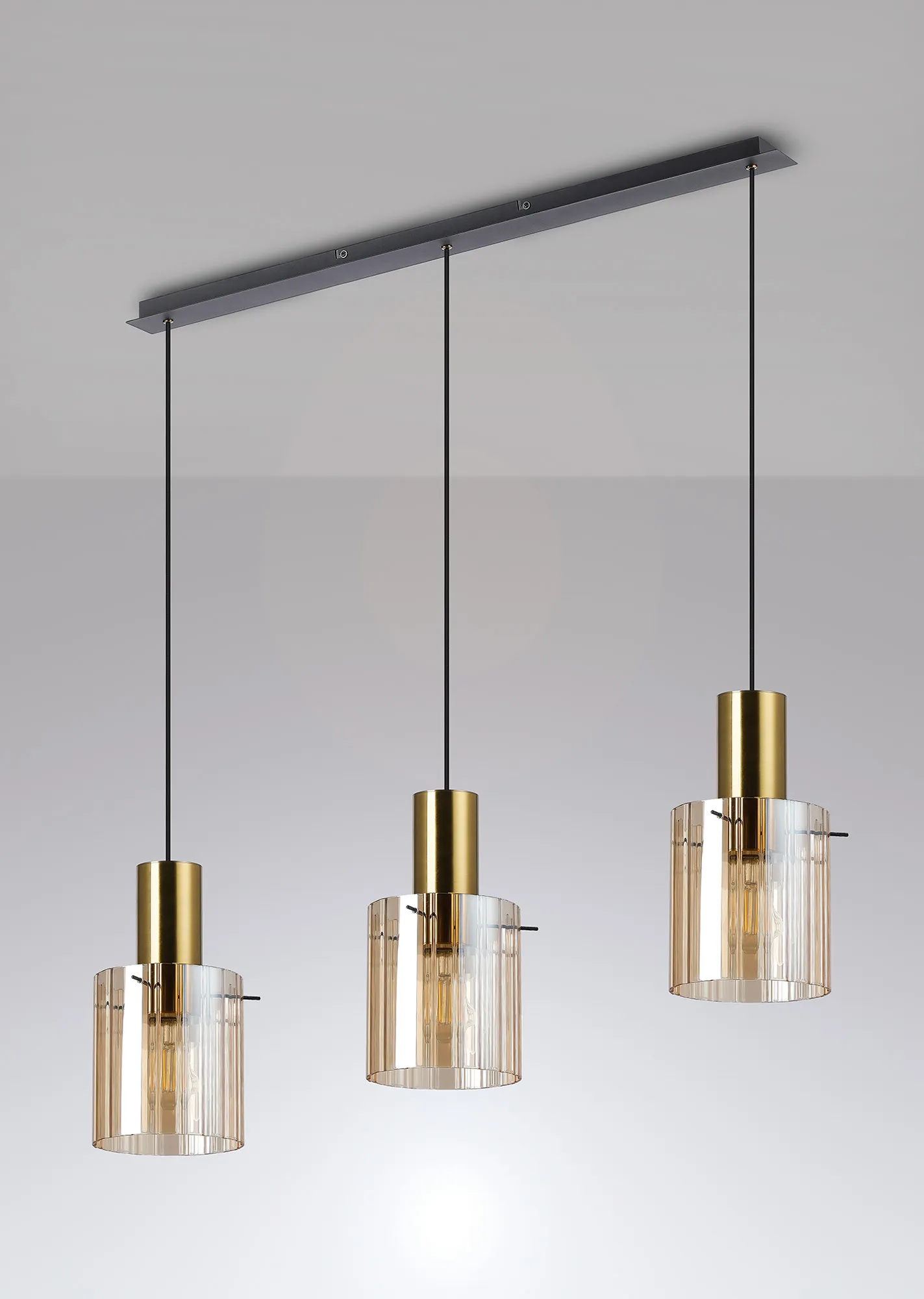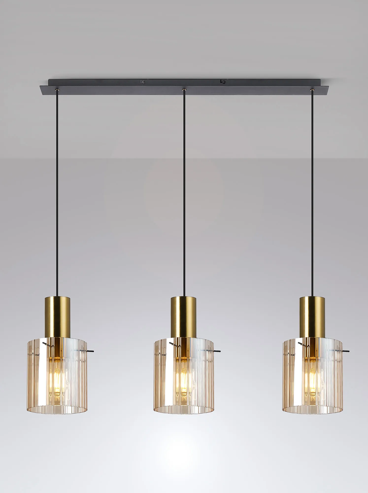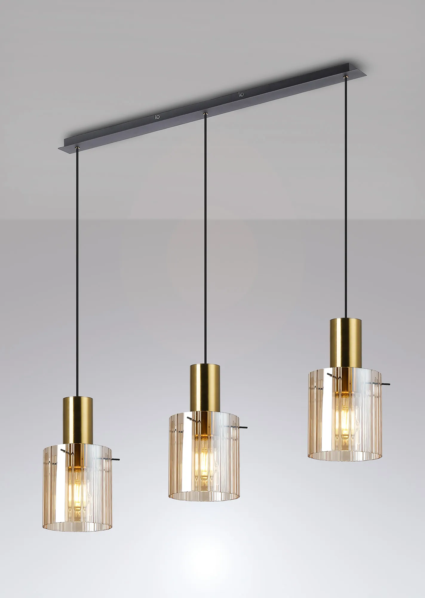The Arienzo range is a refined expression of contemporary design, offering a complete suite of lighting options to elevate any interior. From the sleek 1-light pendant to the showstopping 9-light pendant, the collection also includes semi-flush fittings, matching wall lights, table lamps, and floor lamps-ideal for creating a cohesive and sophisticated lighting scheme throughout your home. Each piece features ribbed cylindrical glass shades, available in a selection of smoked, clear, frosted, or gloss white finishes, with a choice of narrow or wide inner line detailing for added texture and visual interest. The glass is elegantly suspended by slender rods, providing a clean, architectural look while securely supporting each shade. The range is beautifully finished in a striking combination of sand black and brass, offering a bold yet timeless contrast. Designed for both ambient and accent lighting, the Modern Elegance collection delivers the perfect balance of style, function, and luxury.