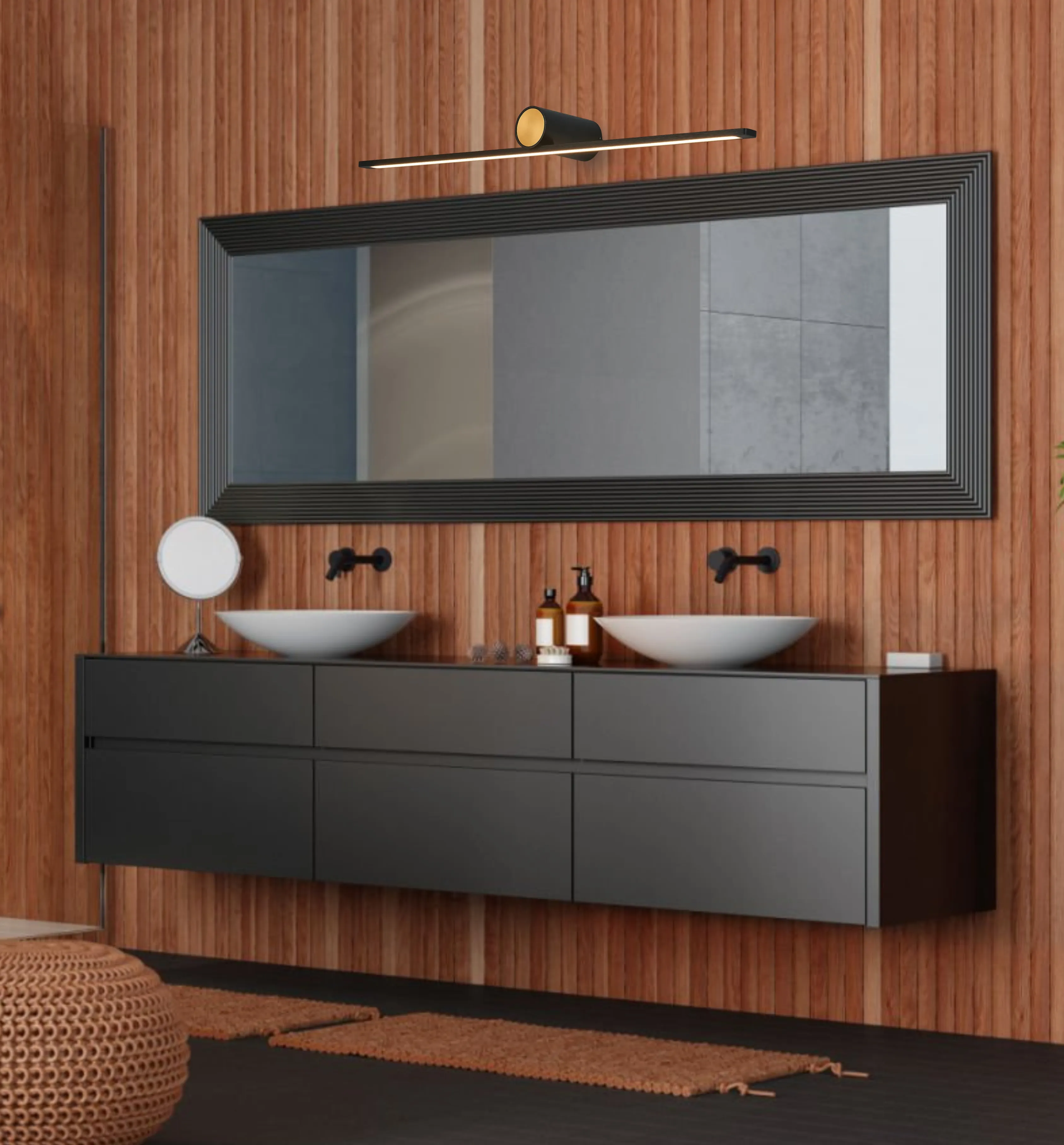 Sleek, modern, and practical – the Bonea wall light collection combines bold black finishes with rich gold accents for a touch of luxury. Designed with IP44 protection, it’s perfect for bathrooms and other moisture-prone spaces while maintaining a sophisticated style. The integrated LED technology offers warm 3000K illumination, creating an inviting atmosphere with excellent efficiency and longevity. Available in four sizes, the range adapts beautifully to any setting – from compact spaces to statement feature walls. A perfect blend of contemporary design and everyday functionality.