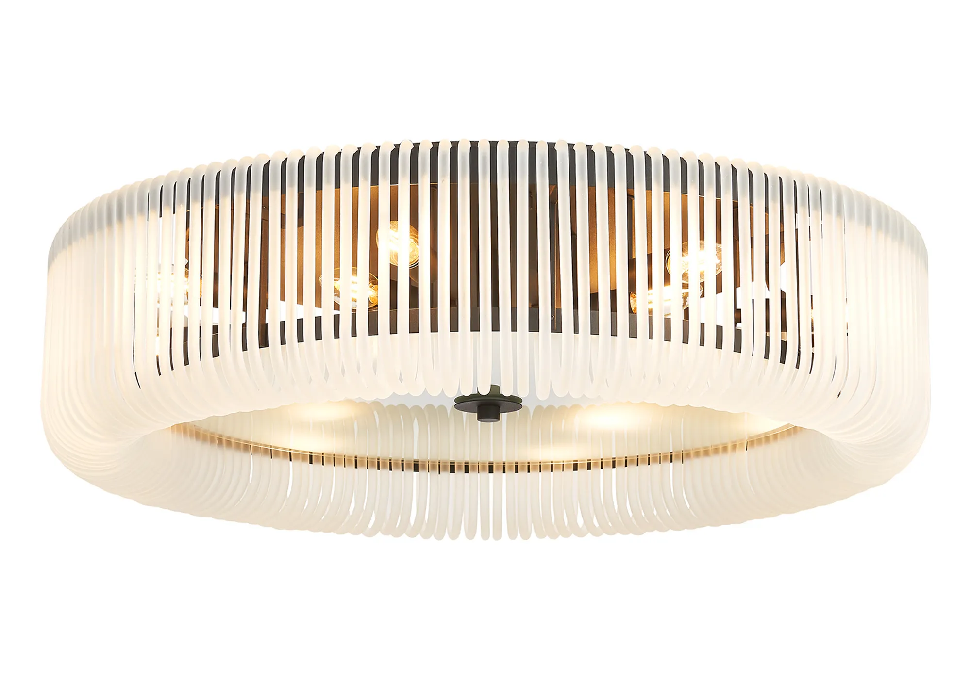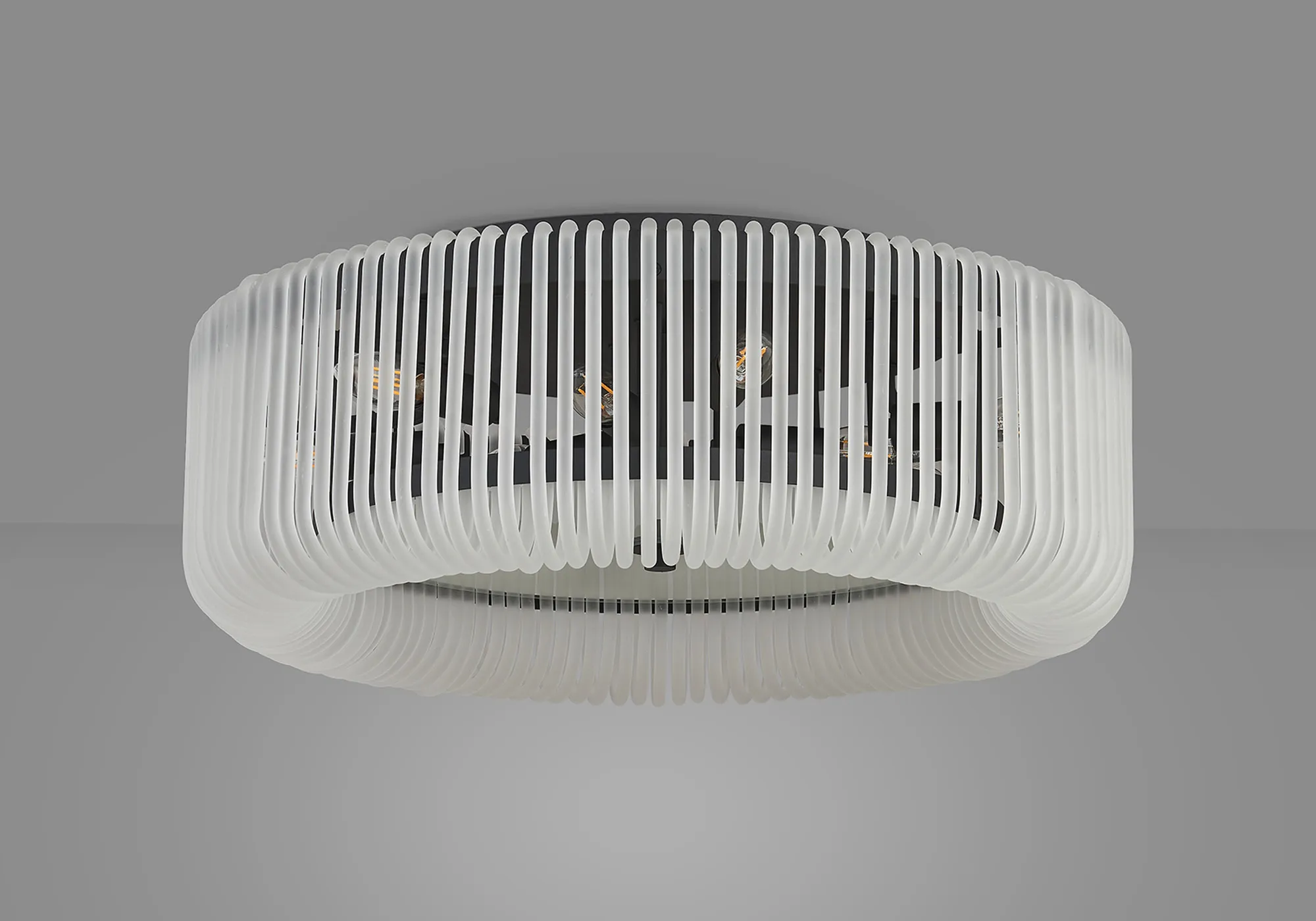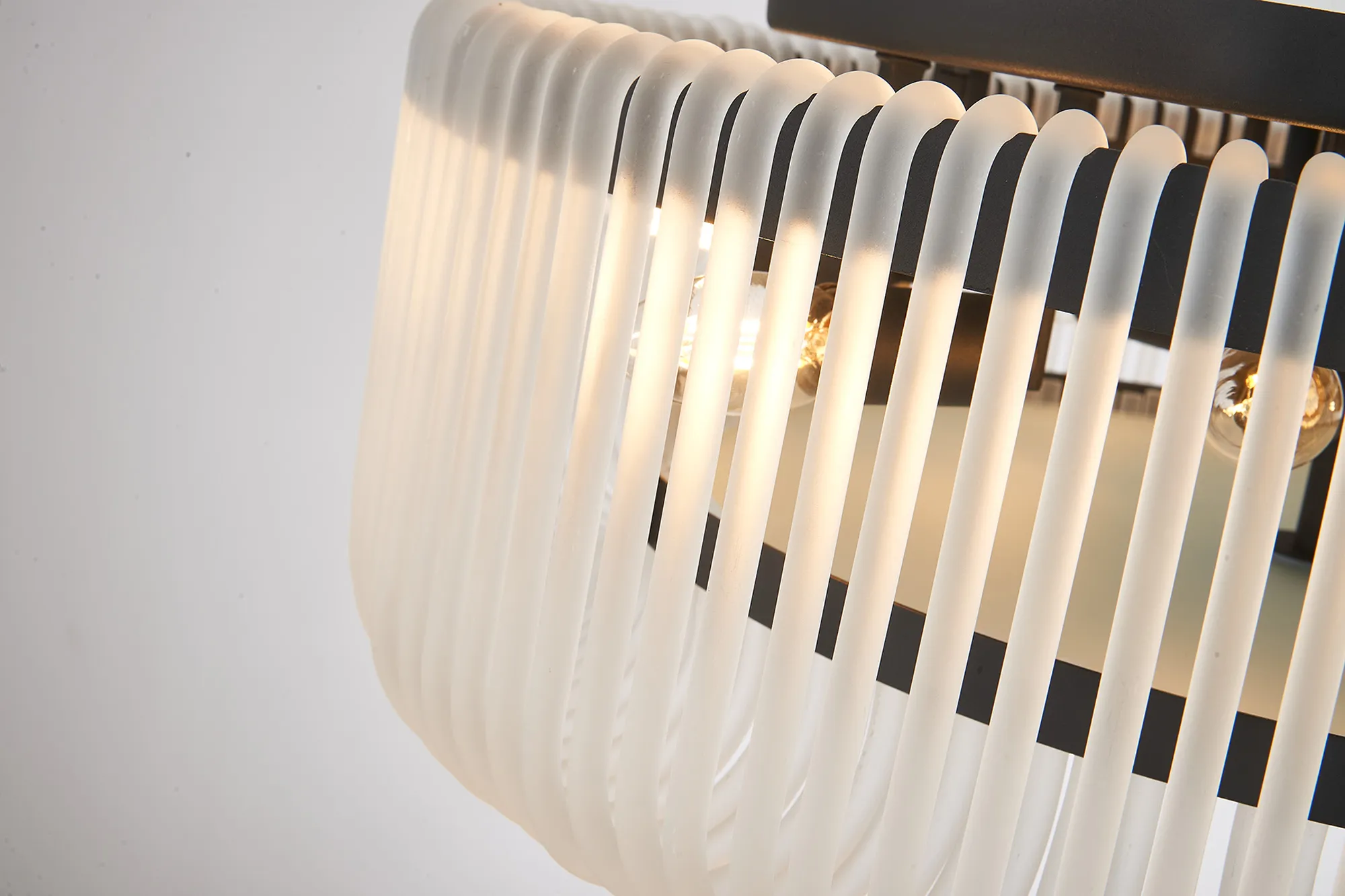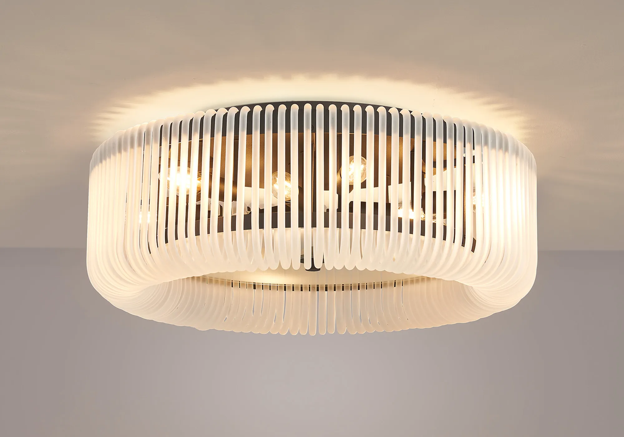 Agerola is an inventive lighting collection that blends striking visuals with effortless installation. Each piece features a scalloped trim frame, designed to neatly hang the glass hooks that create its captivating detail. Available as flush ceiling, pendant, and wall lamp frames, the range offers versatility for any setting. Choose from glass finishes in clear, smoke brown, smoke, or frosted to complement your space, paired with frame options in elegant brass or modern black. A distinctive design that makes a bold yet refined statement in any interior.