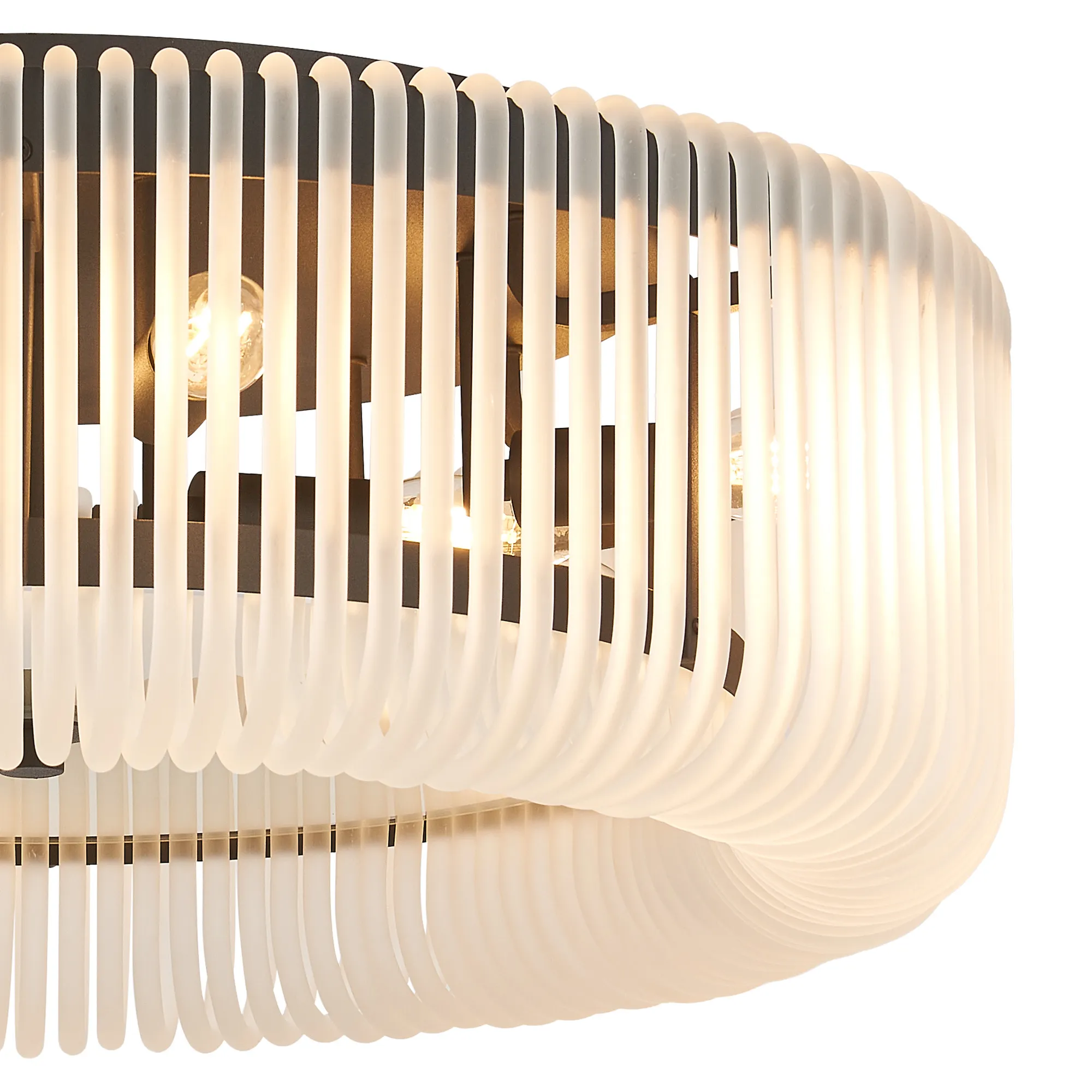 Agerola, 100cm 3 Tier Round Pendant/Semi Ceiling, 32 x E14, Black/Frosted Glass, Item Weight 47kg