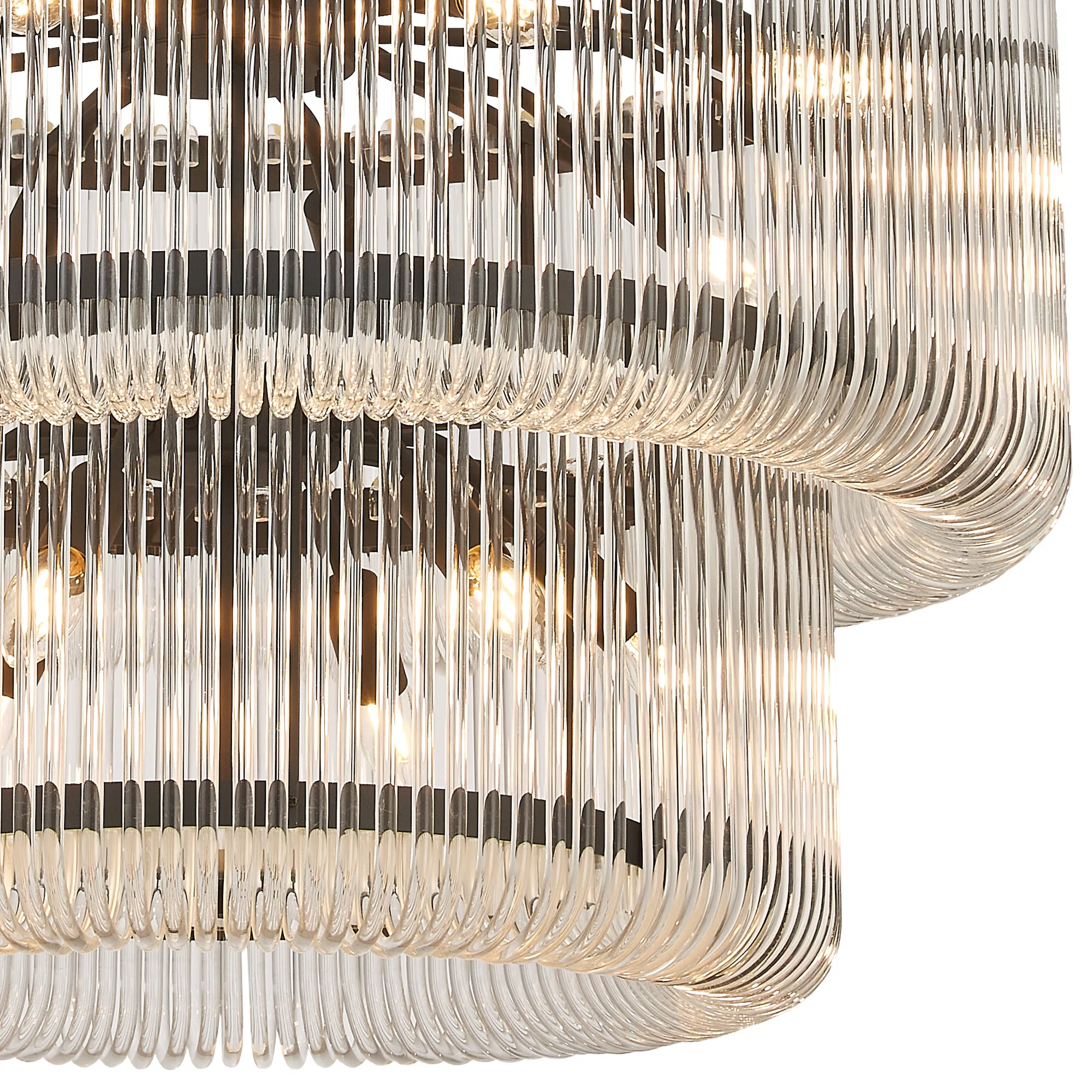 Agerola, 100cm 3 Tier Round Pendant/Semi Ceiling, 32 x E14, Black/Clear Glass, Item Weight 47kg