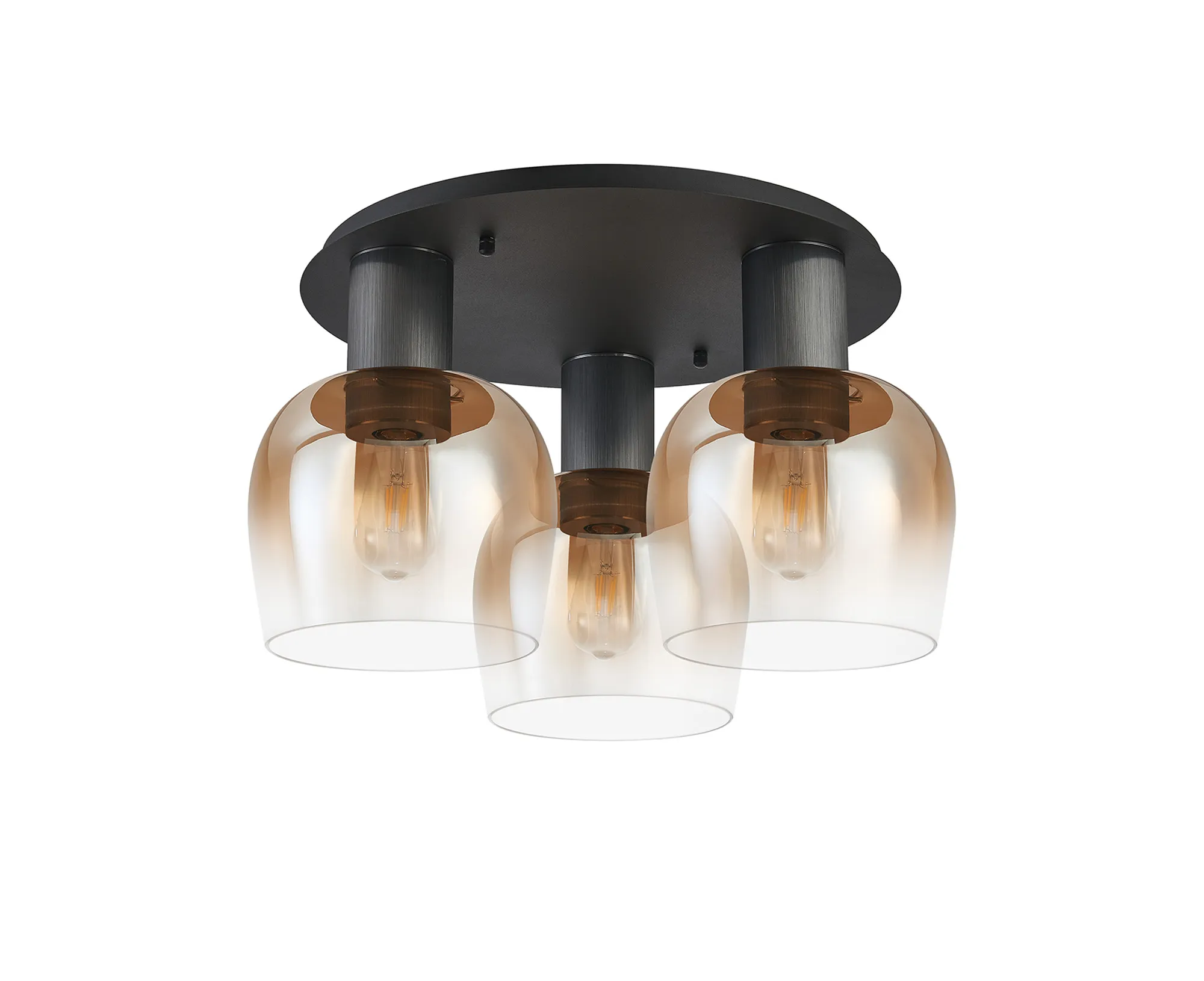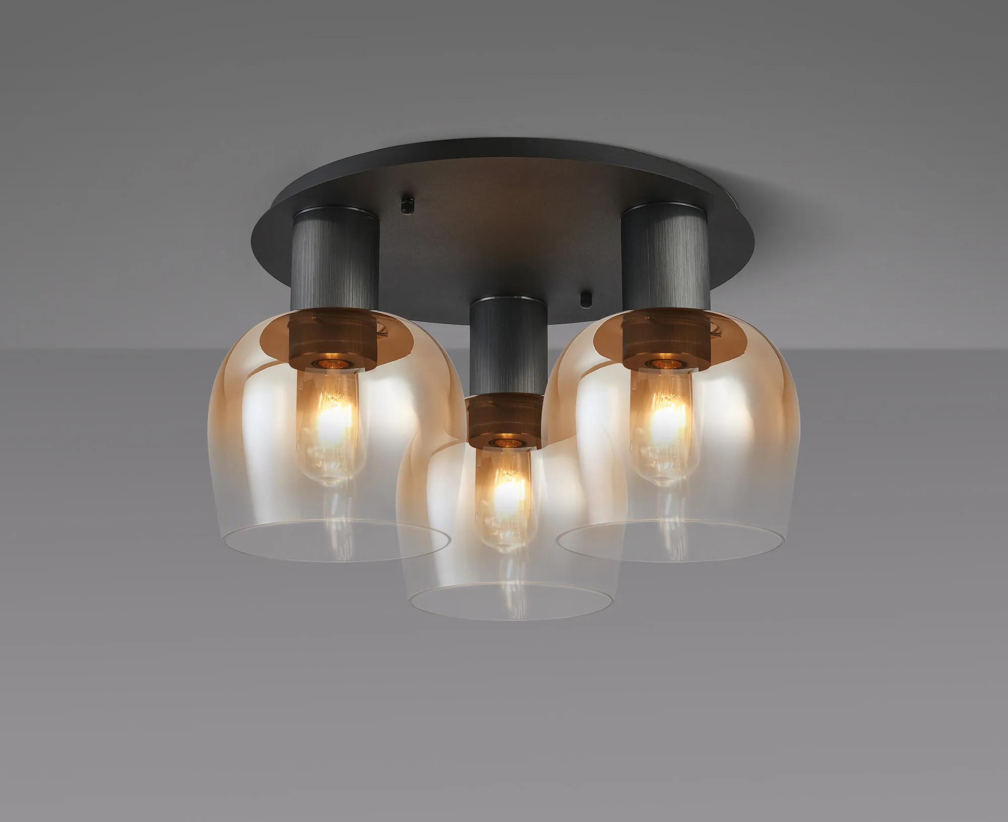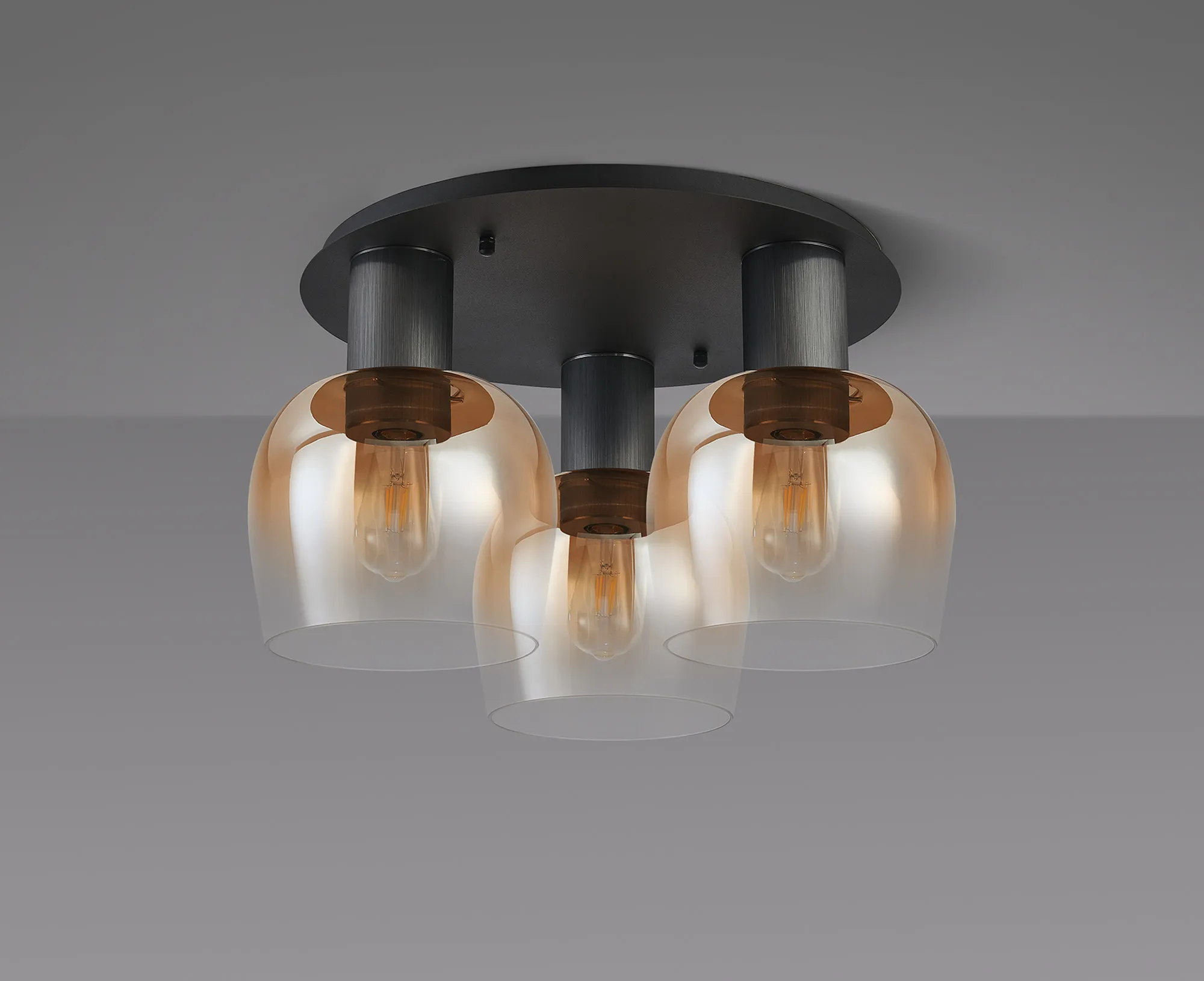 OTHER Albanella 63cm Round Ceiling Light, 3 x E27, Gun Metal/Satin Black/Amber Fade Wine Glass