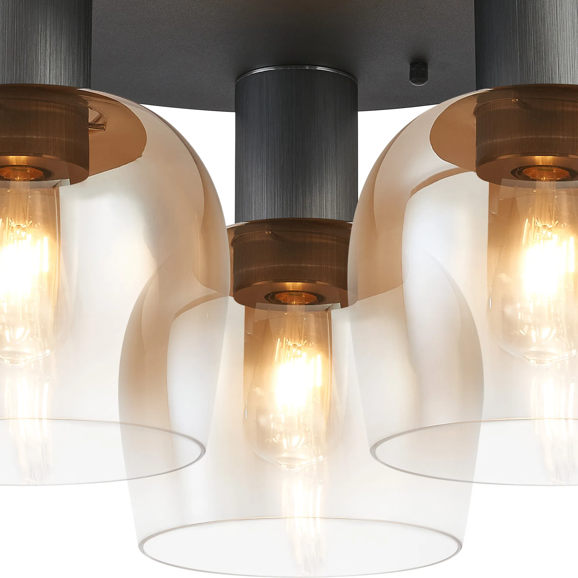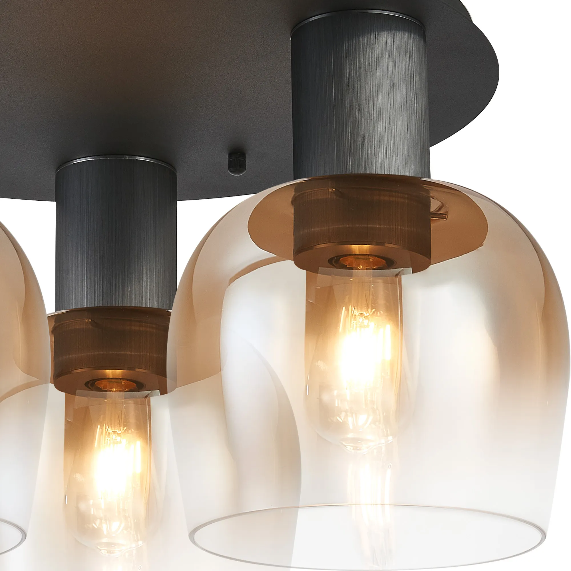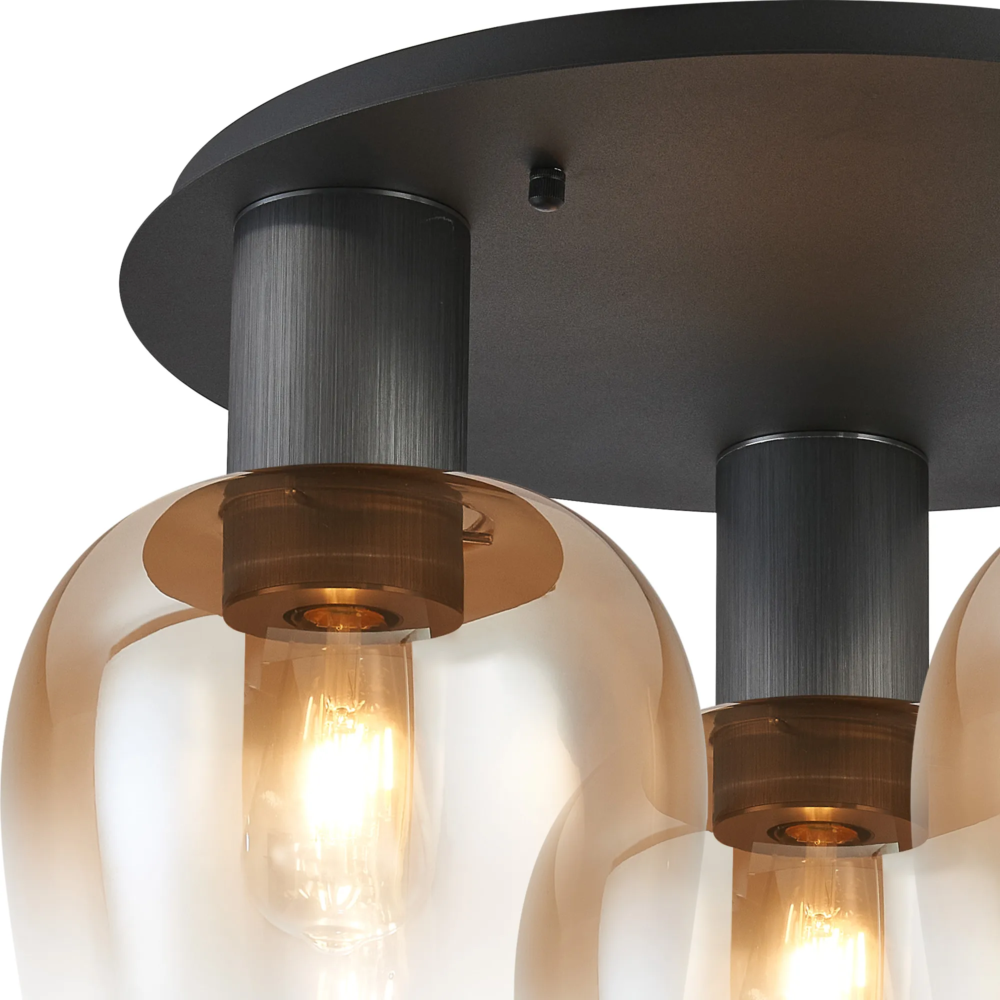 OTHER Albanella 63cm Round Ceiling Light, 3 x E27, Gun Metal/Satin Black/Amber Fade Wine Glass