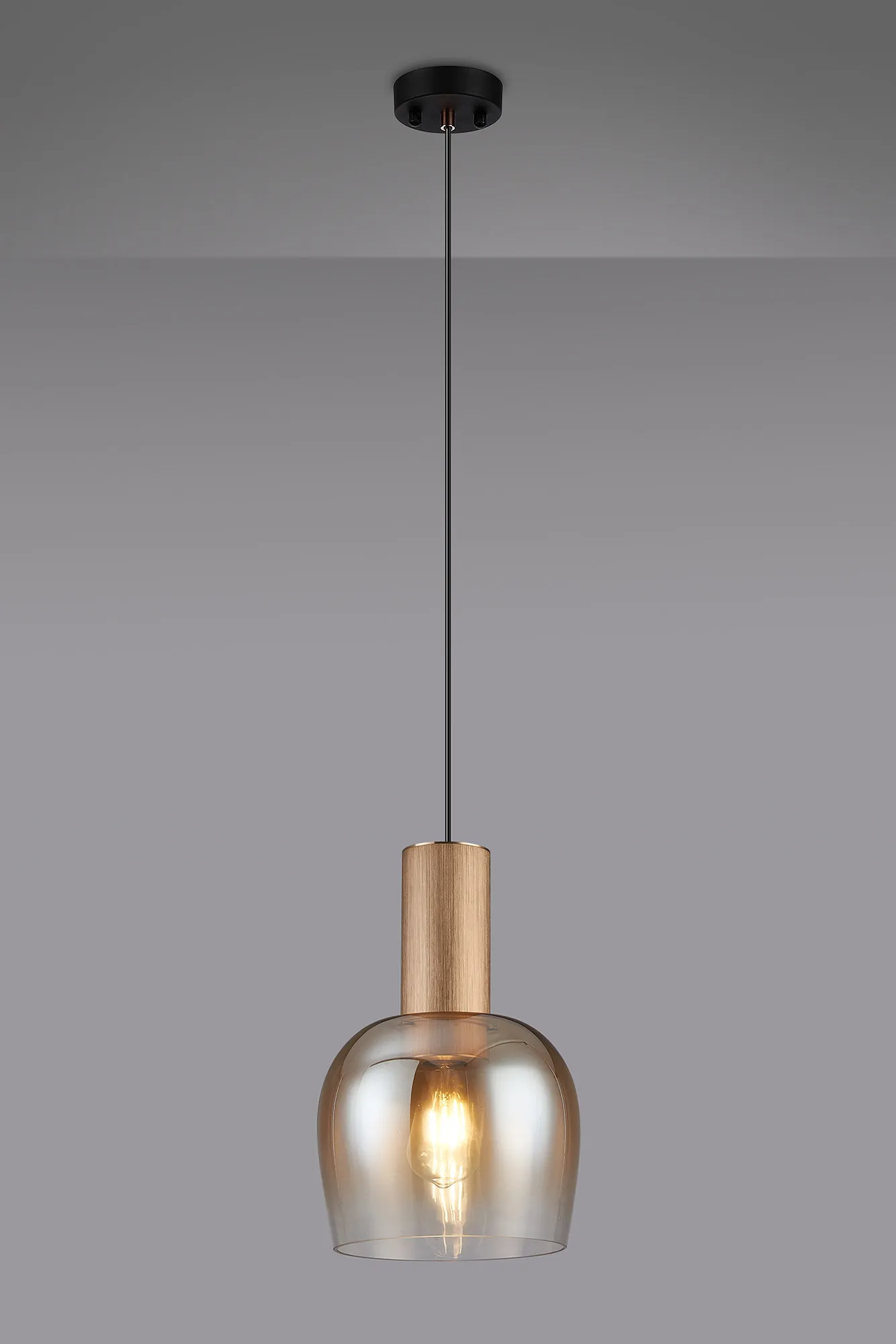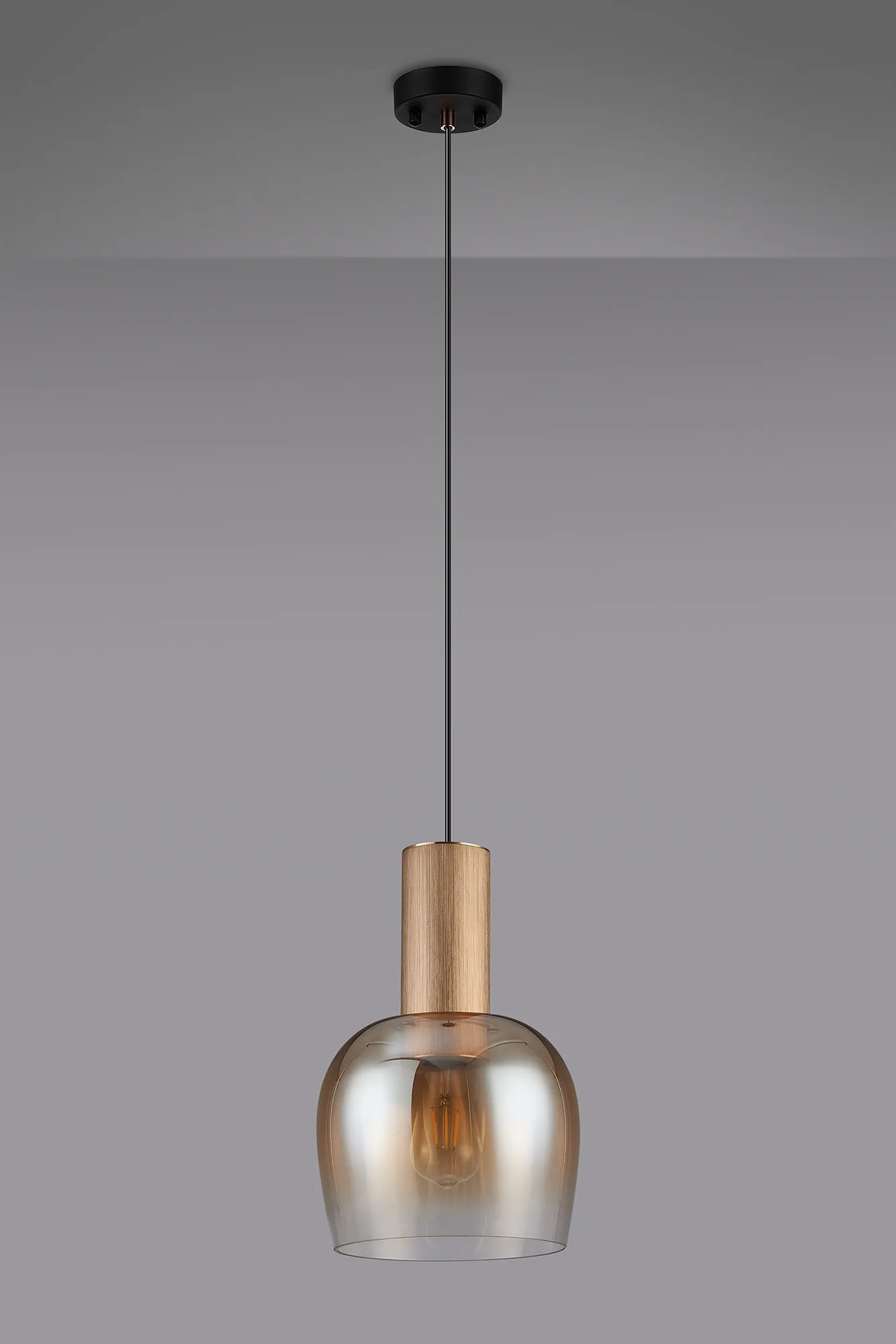 OTHER Albanella 23cm Pendant, 1 x E27, Titanium Gold/Satin Black/Amber Fade Wine Glass
