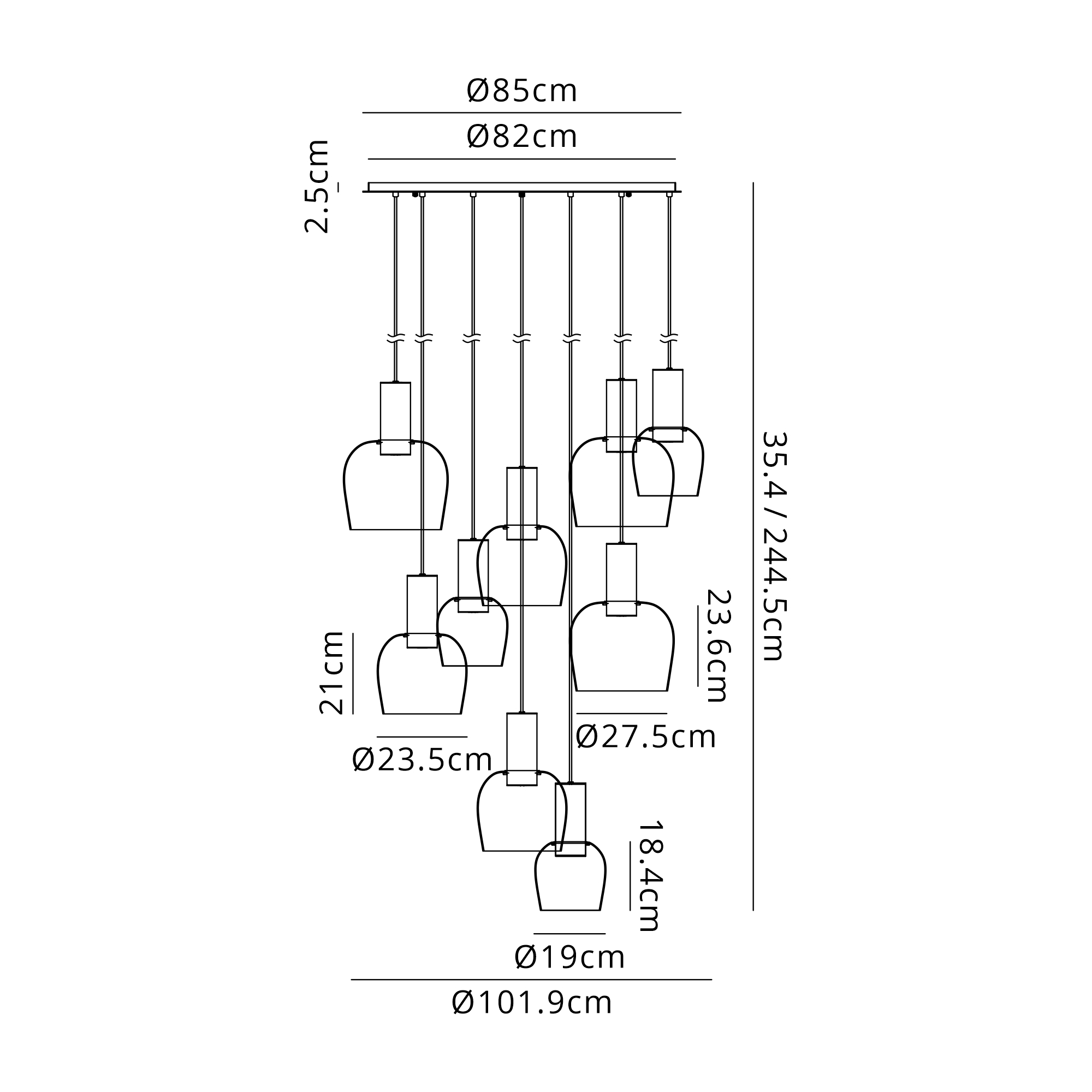 Albanella 102cm Round Pendant, 9 x E27, Satin Black/Amber Fade Wine Glass Item Weight: 16kg