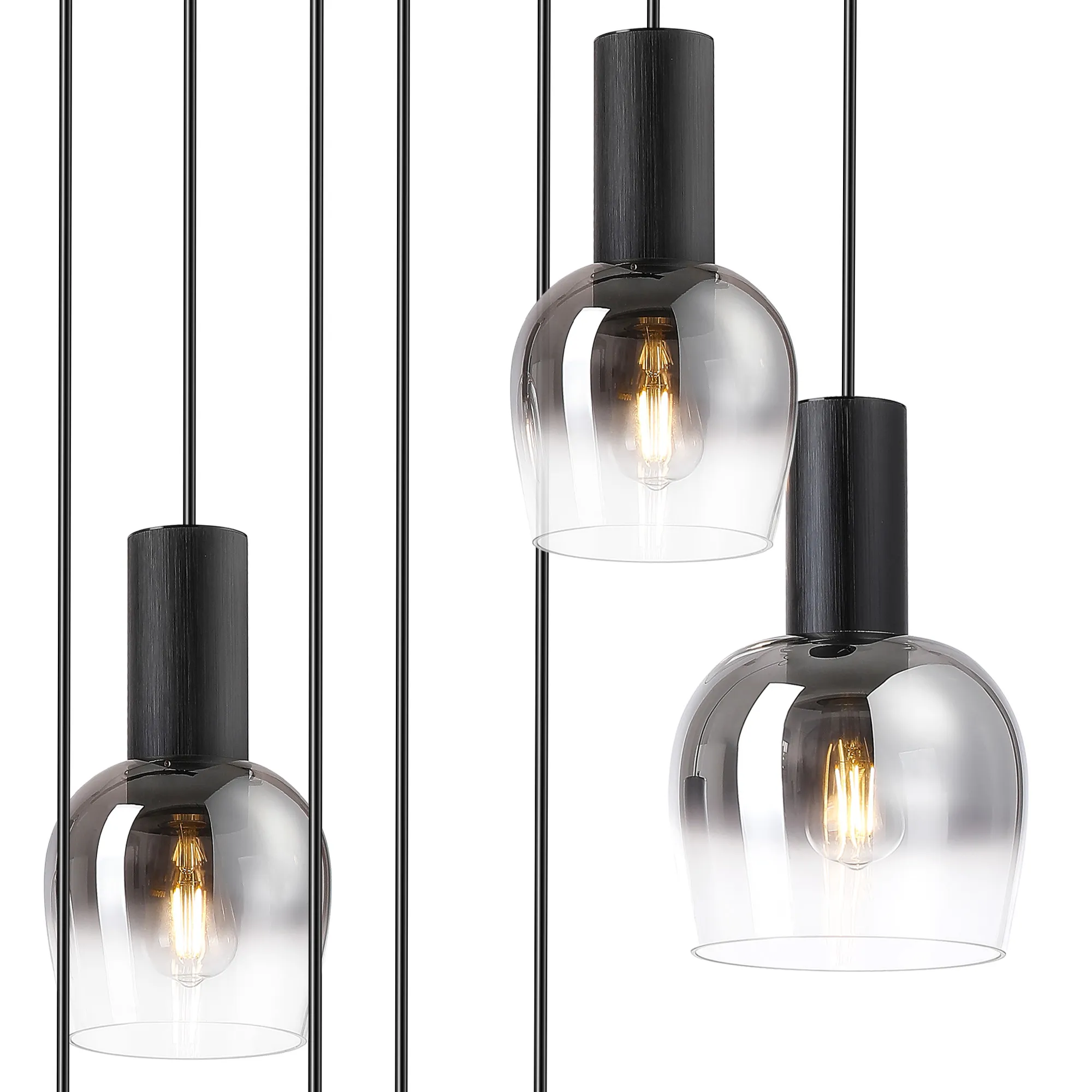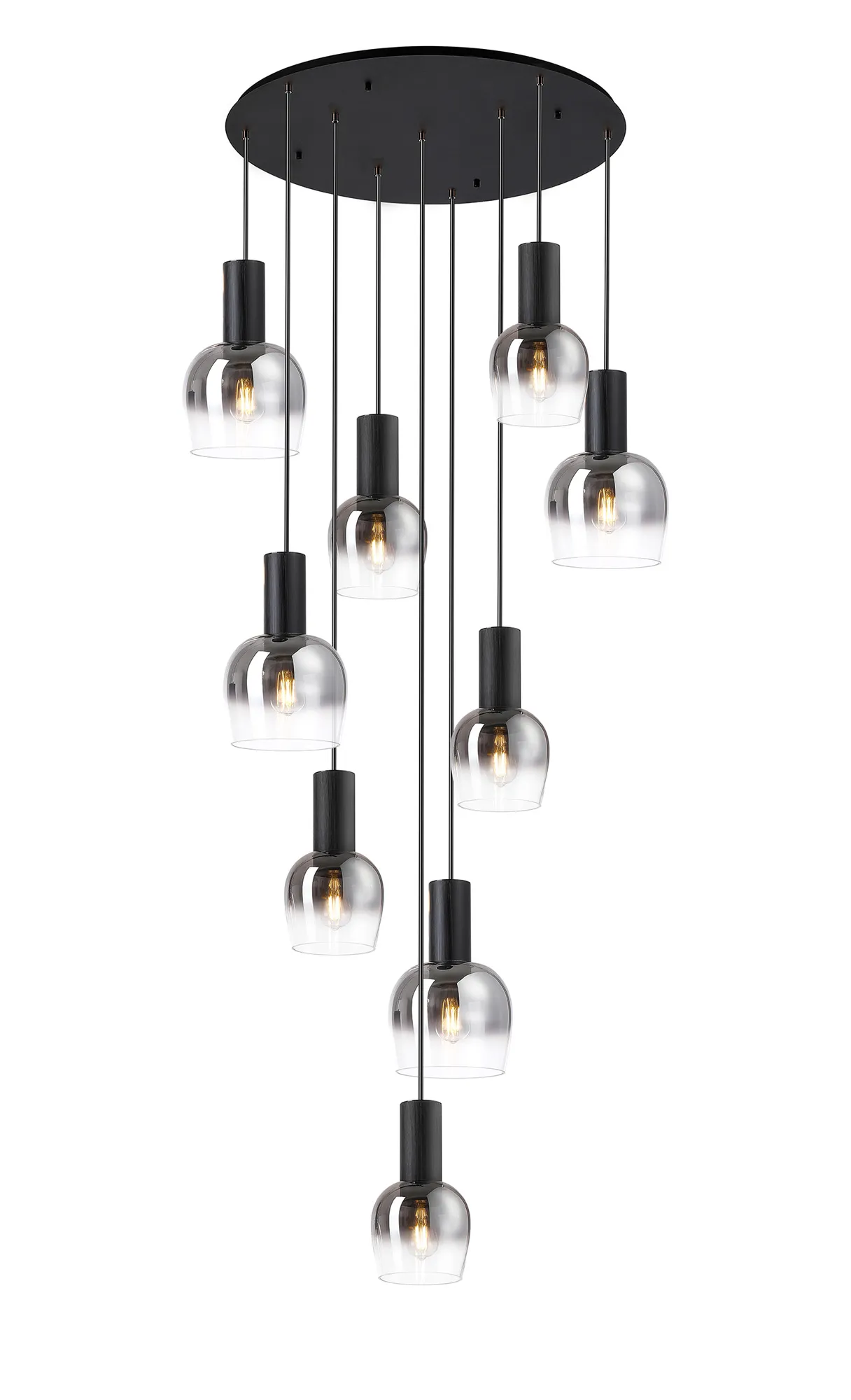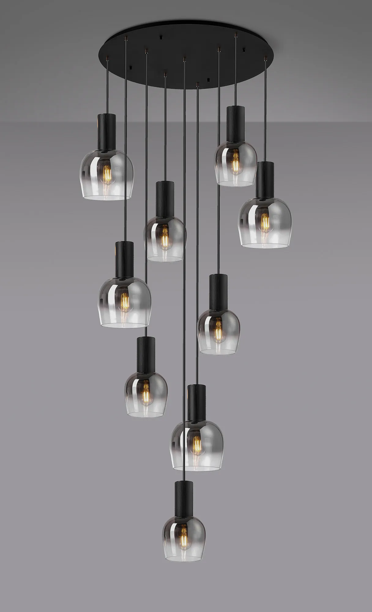 Albanella 102cm Round Pendant, 9 x E27, Satin Black/Smoke Fade Wine Glass Item Weight: 18kg