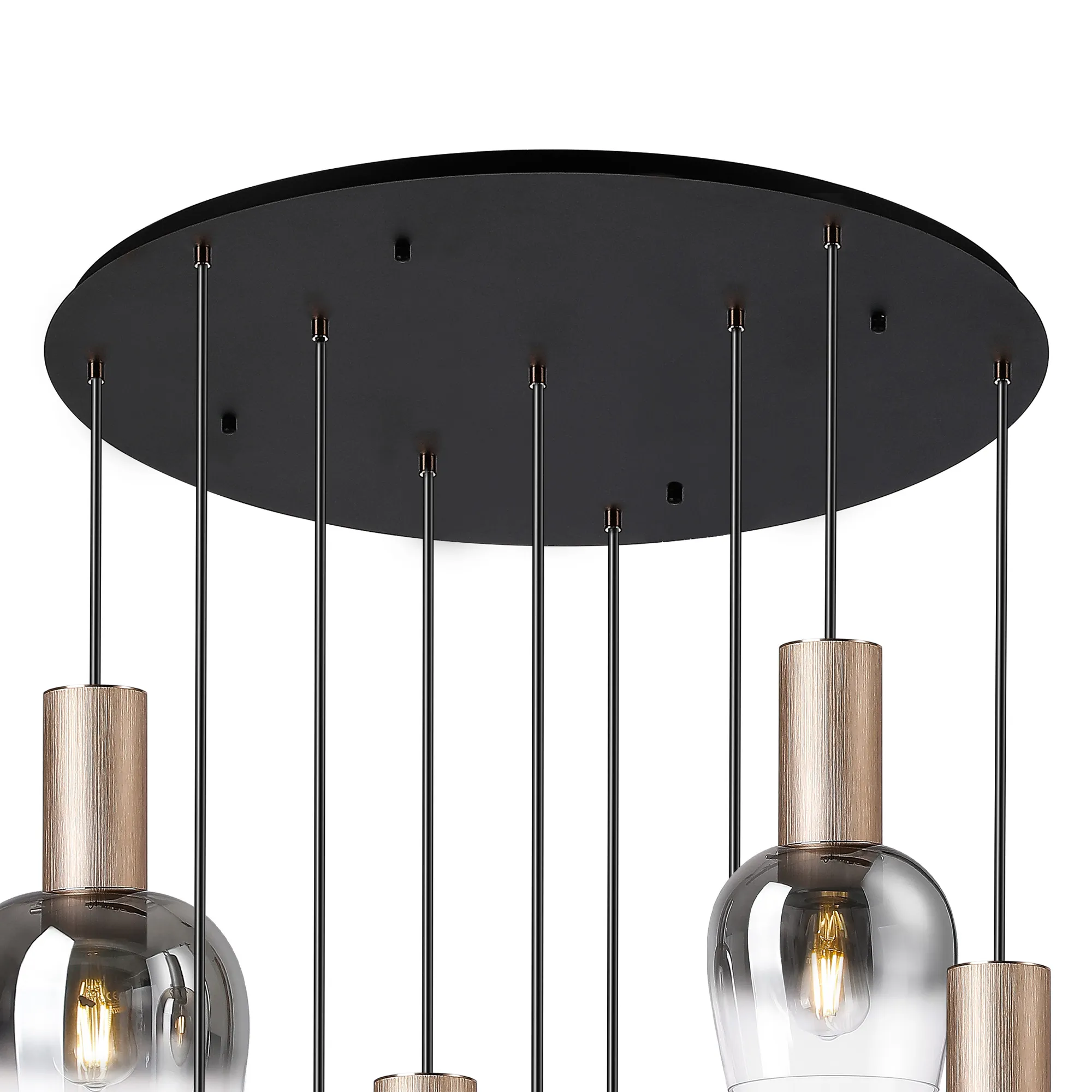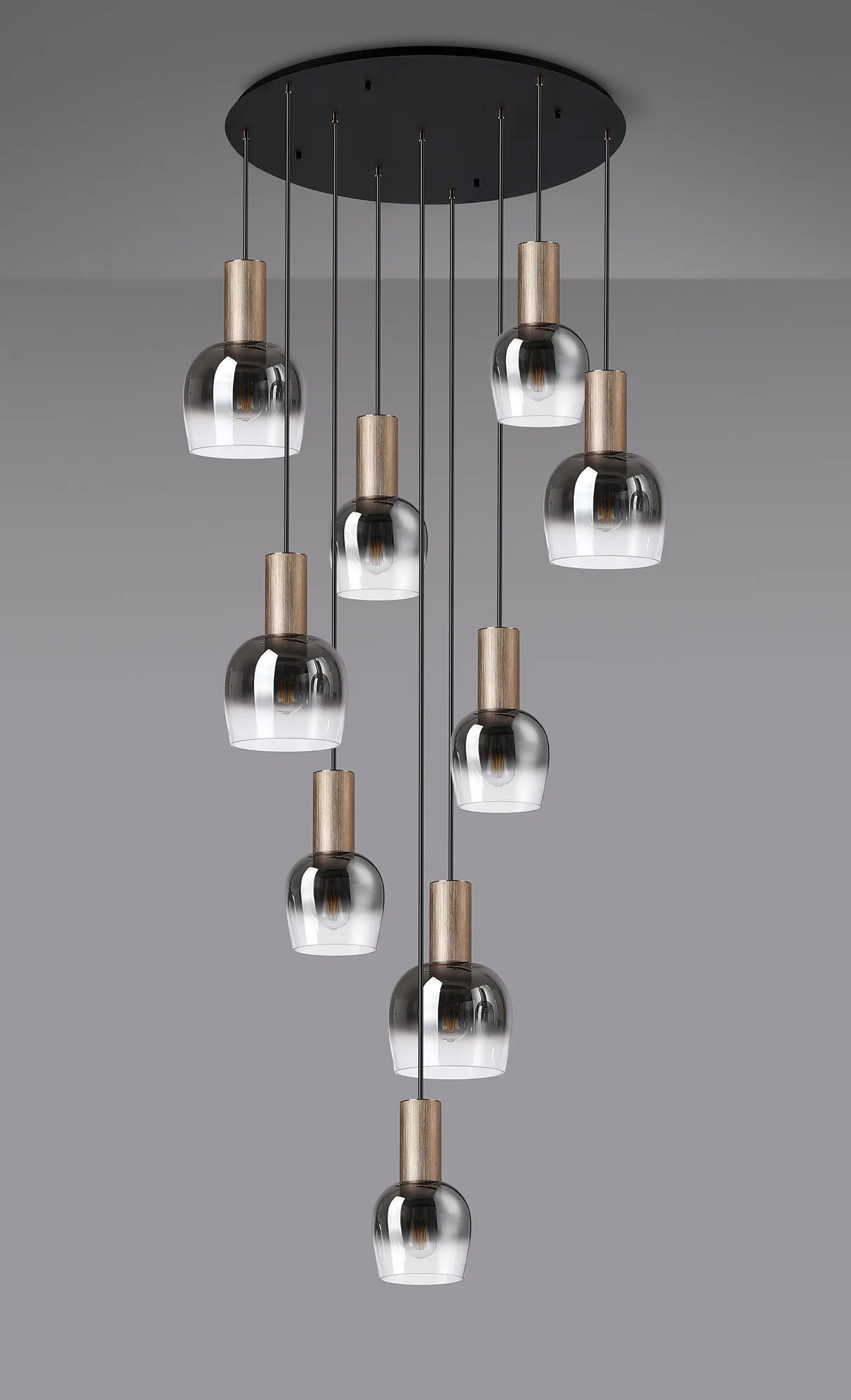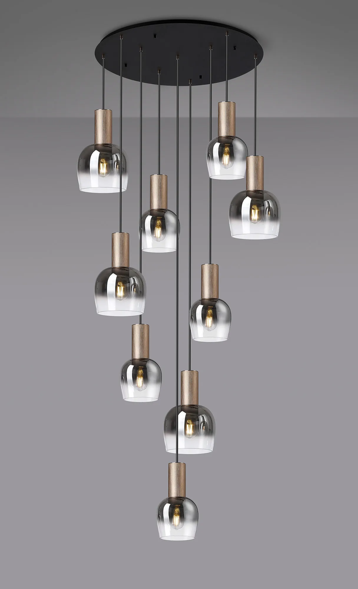 Albanella 102cm Round Pendant, 9 x E27, Titanium Gold/Satin Black/Smoke Fade Wine Glass Item Weight: 18kg