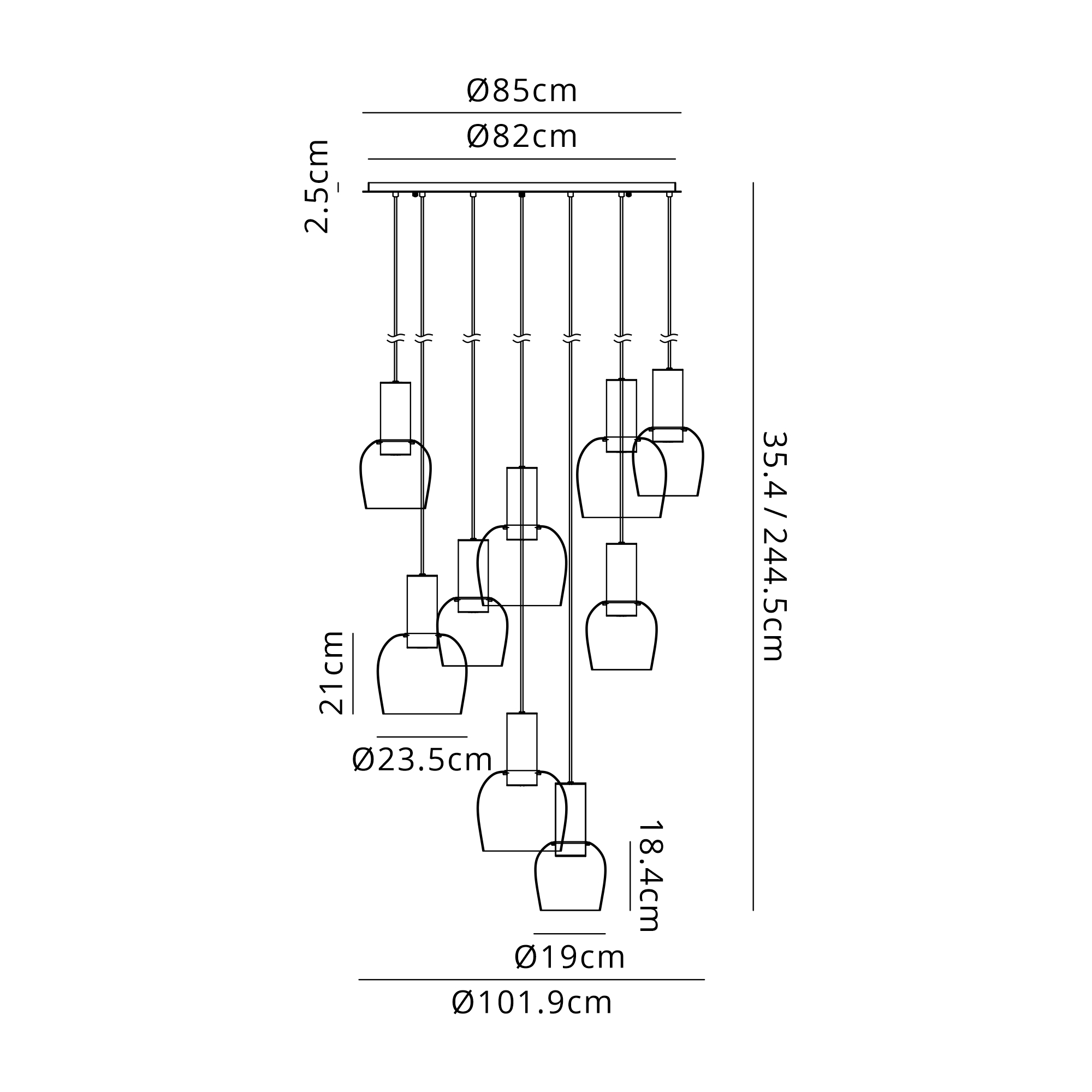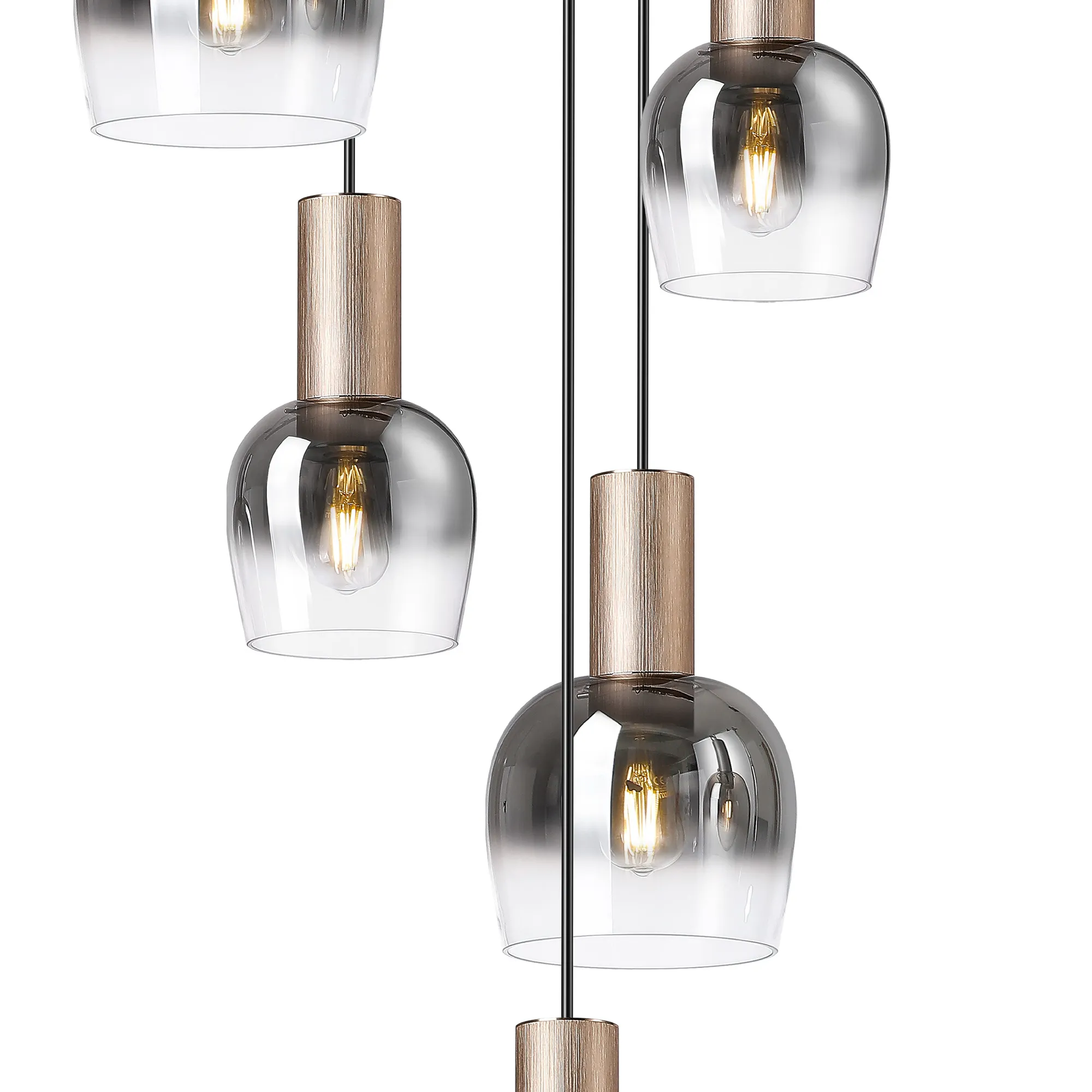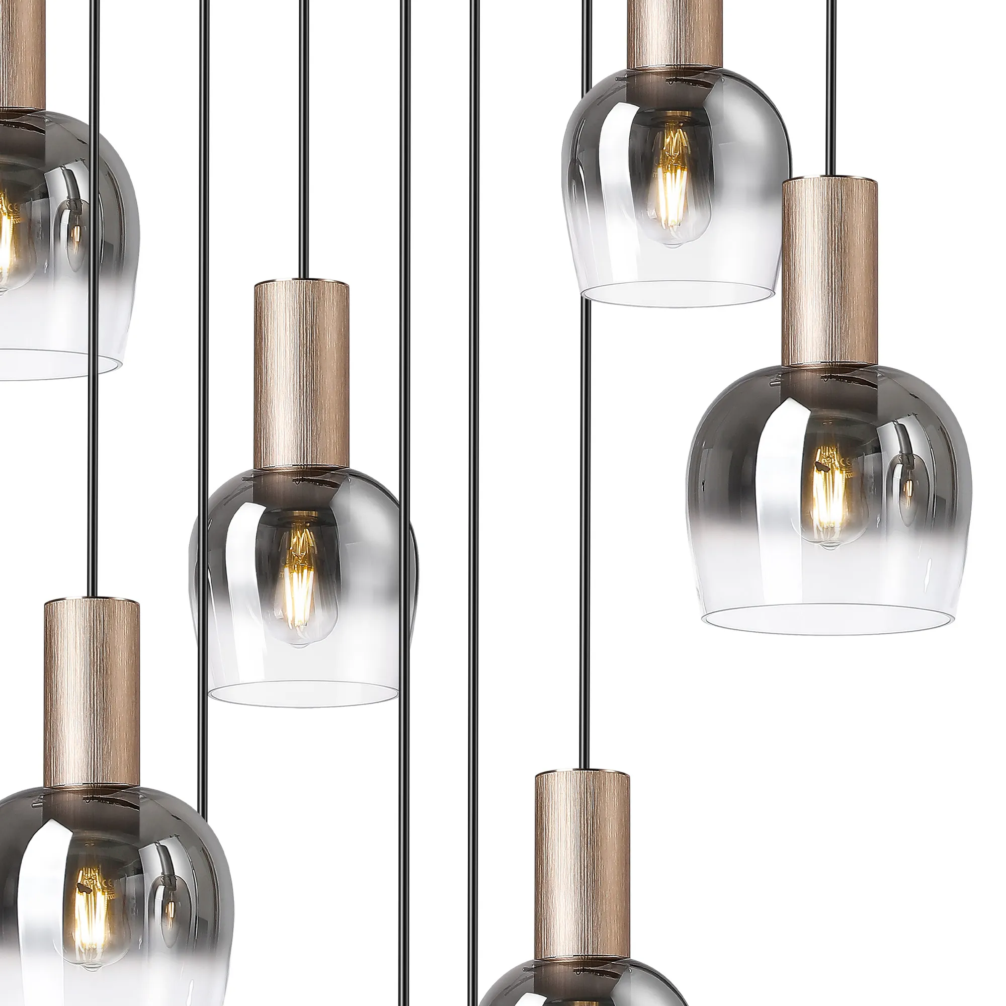 Albanella 102cm Round Pendant, 9 x E27, Titanium Gold/Satin Black/Smoke Fade Wine Glass Item Weight: 18kg