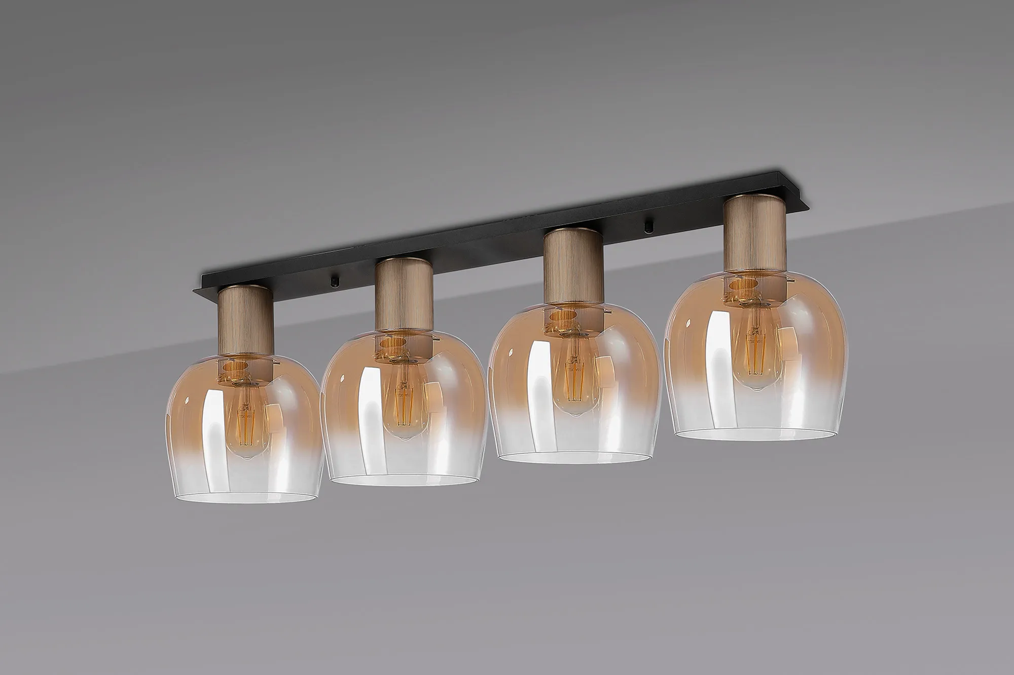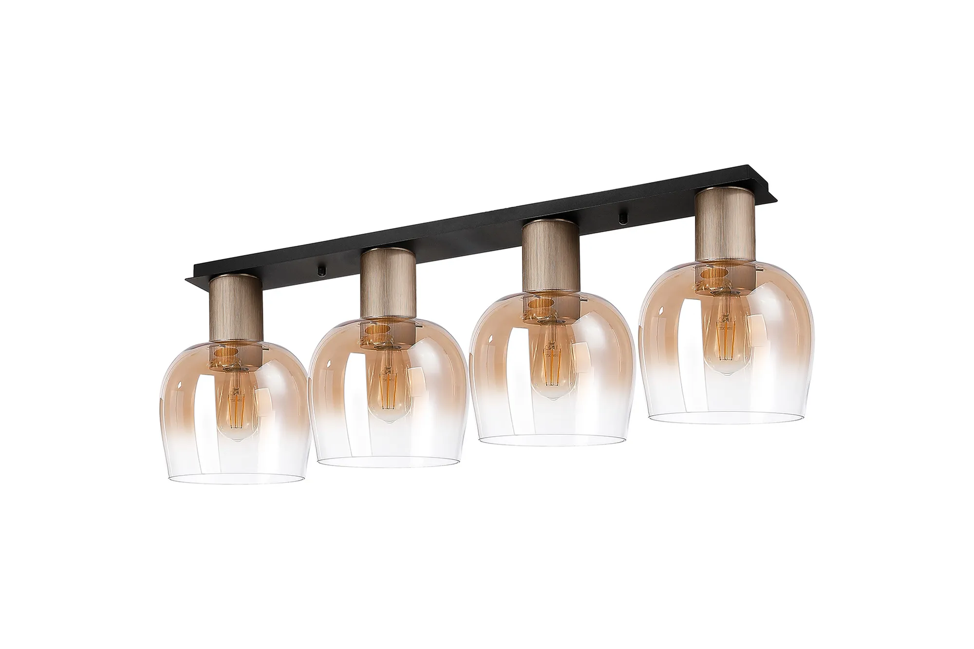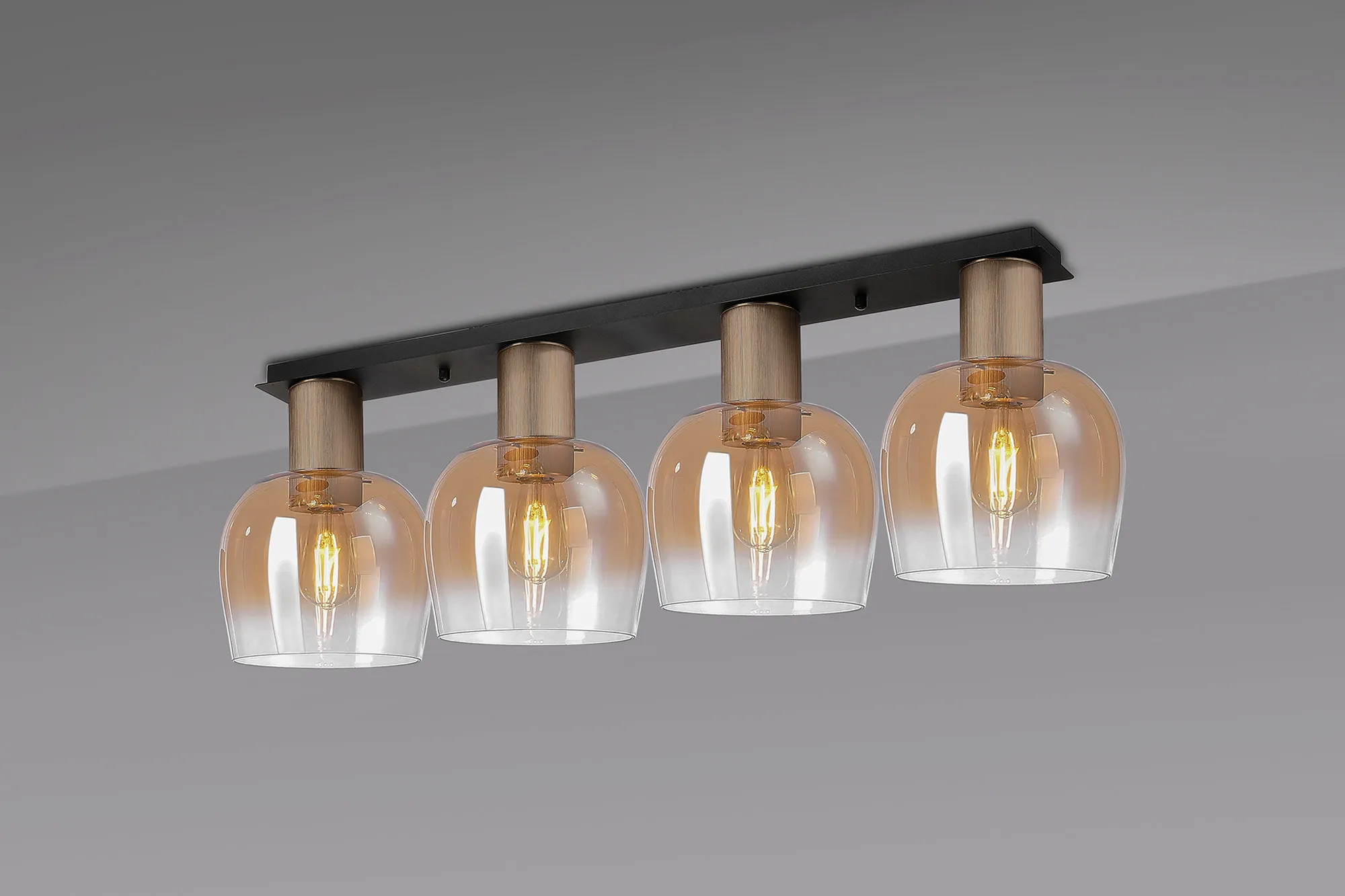 OTHER Albanella 105.5 x 23.5cm Linear Ceiling Light, 4 x E27, Titanium Gold/Satin Black/Amber Fade Wine Glass