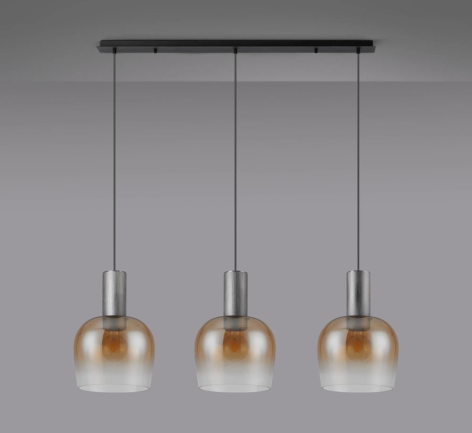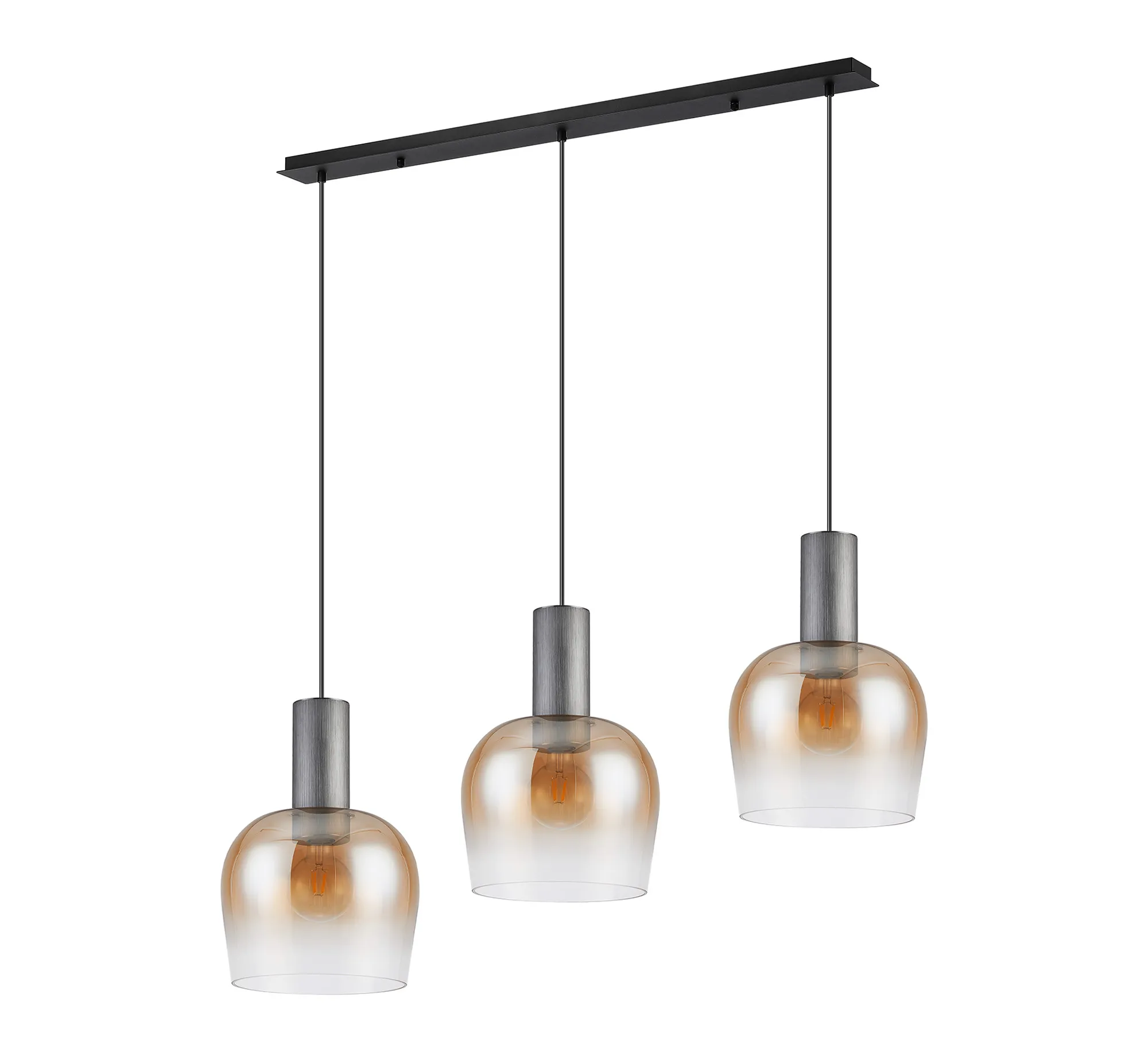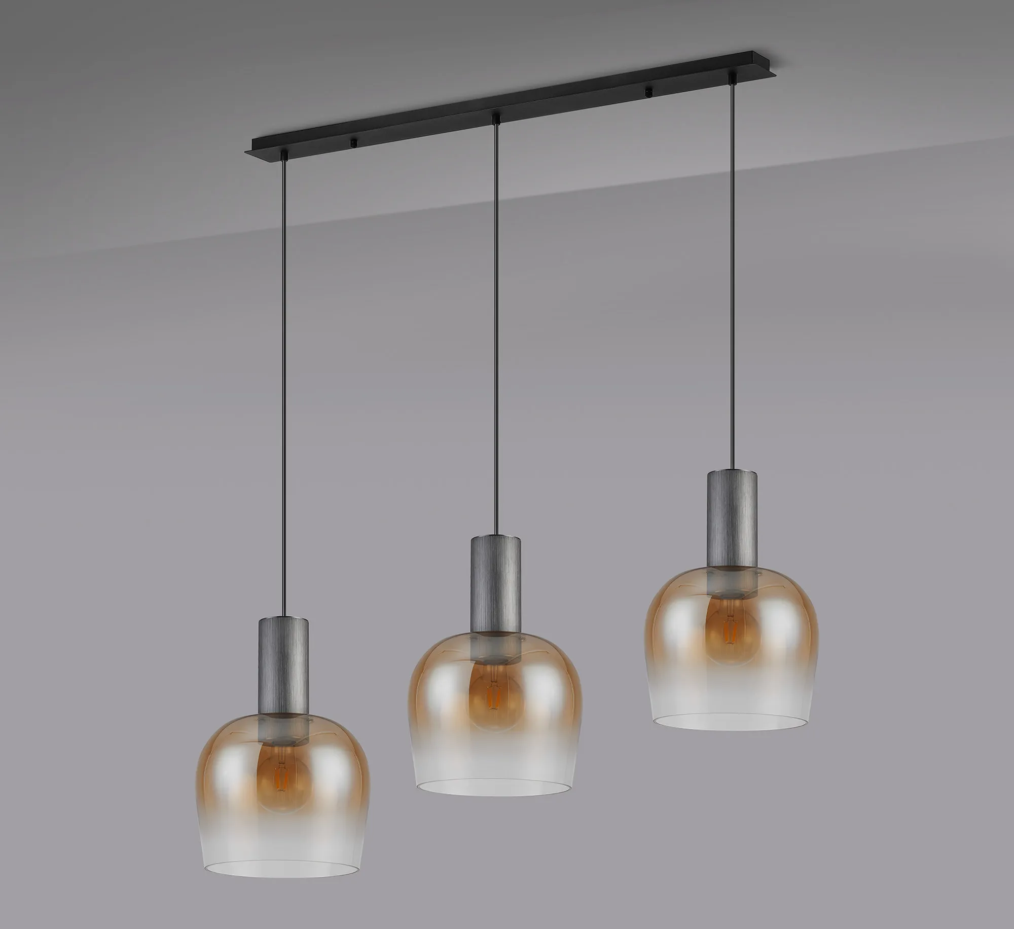 OTHER Albanella 1.1m Linear Pendant, 3 x E27, Gun Metal/Satin Black/Amber Fade Wine Glass