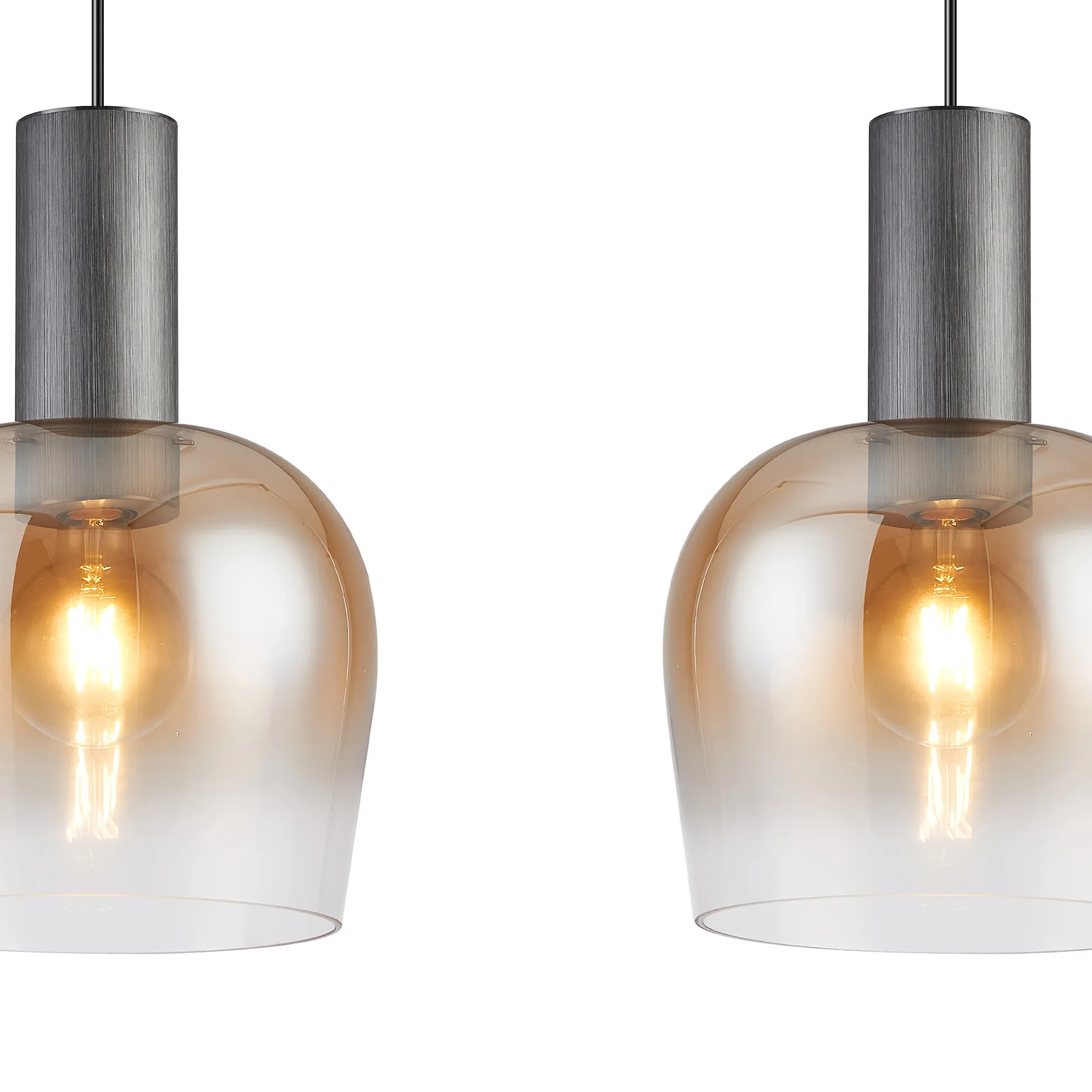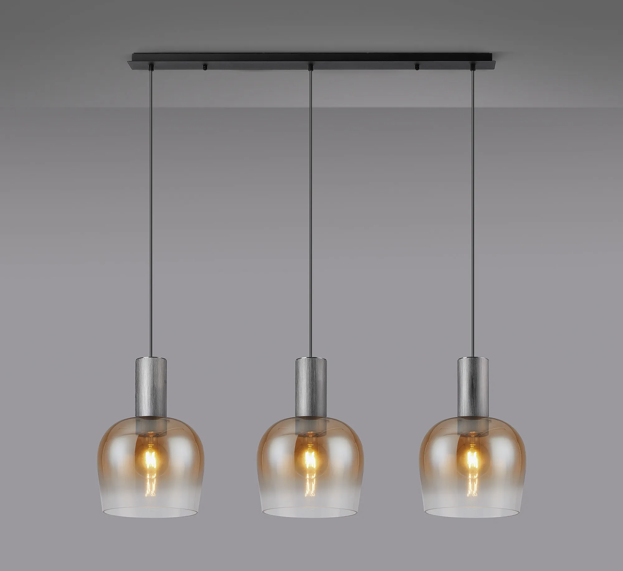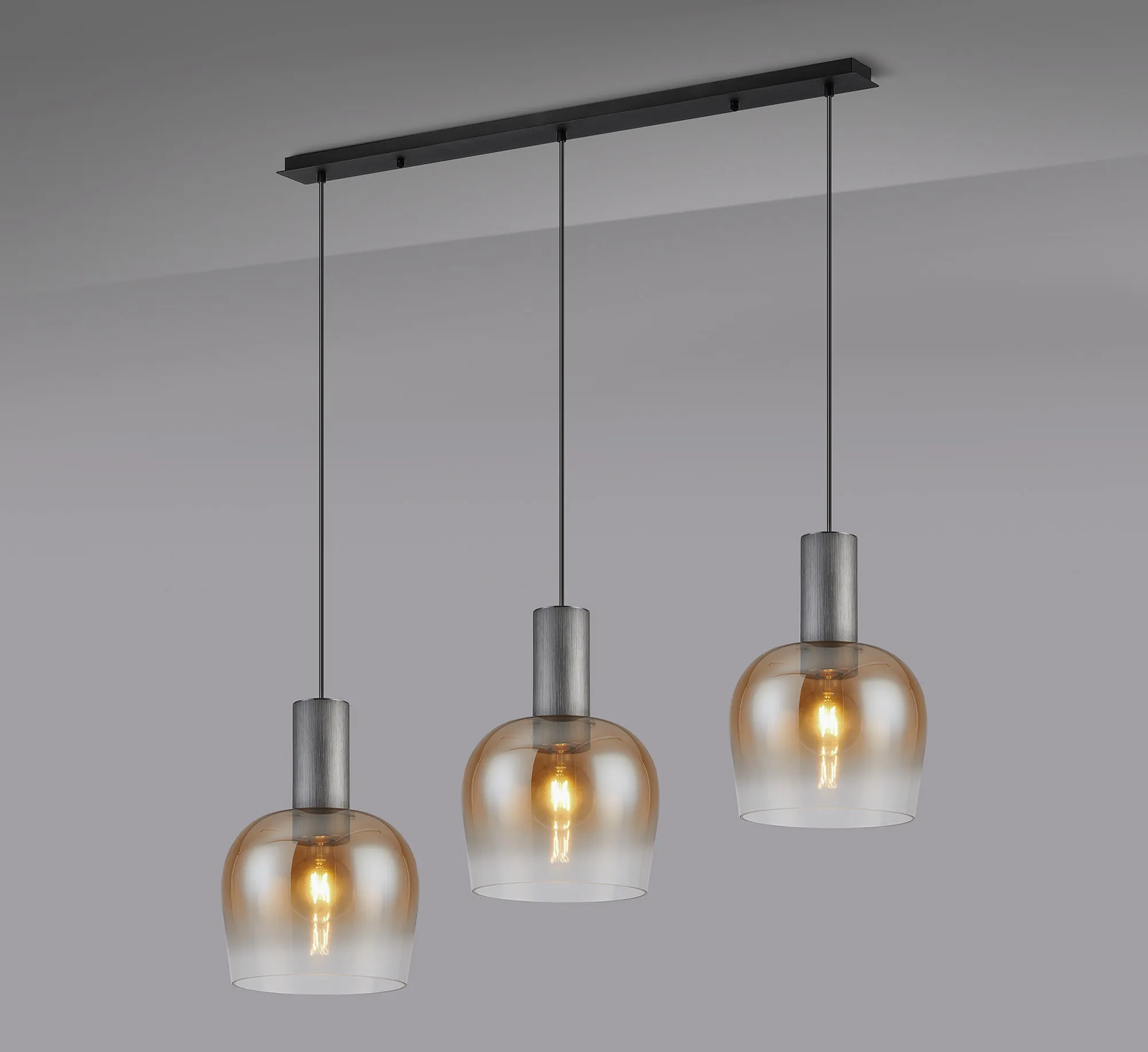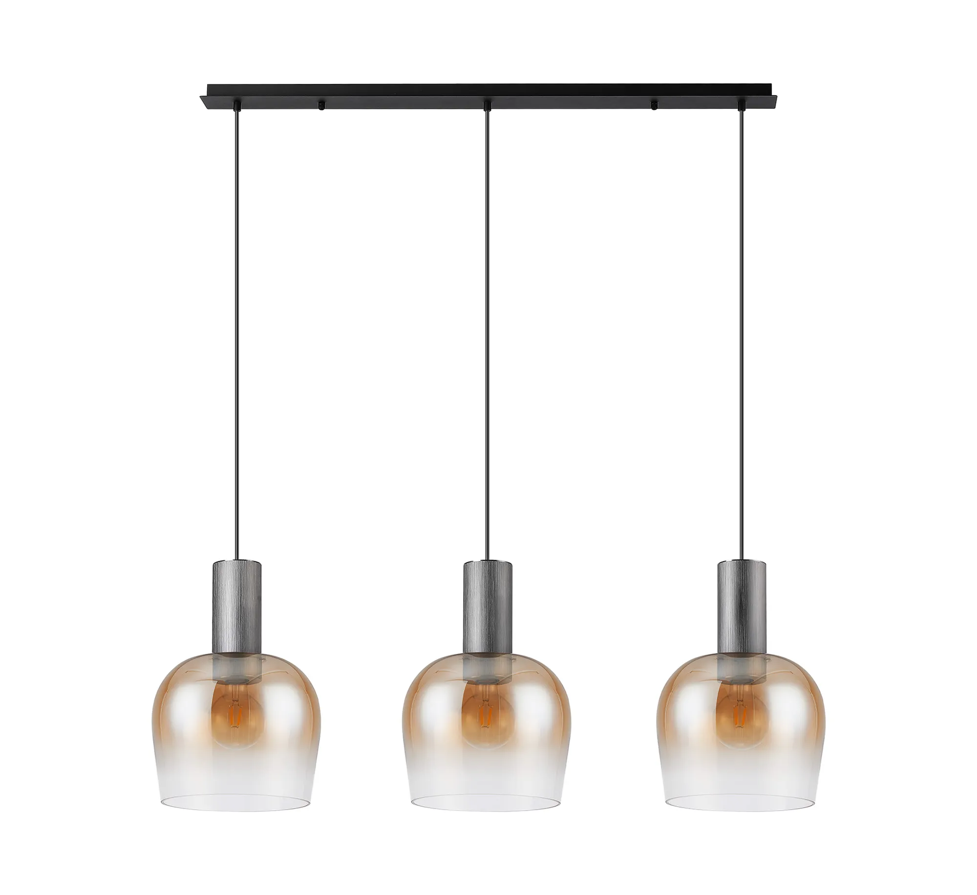 OTHER Albanella 1.1m Linear Pendant, 3 x E27, Gun Metal/Satin Black/Amber Fade Wine Glass