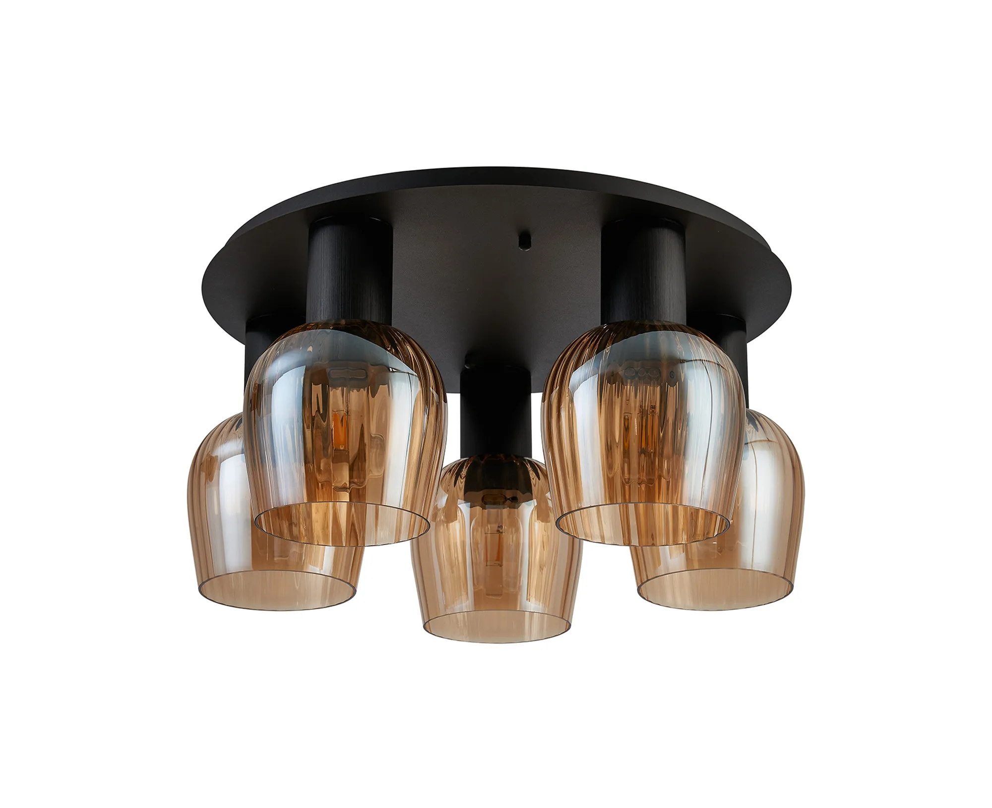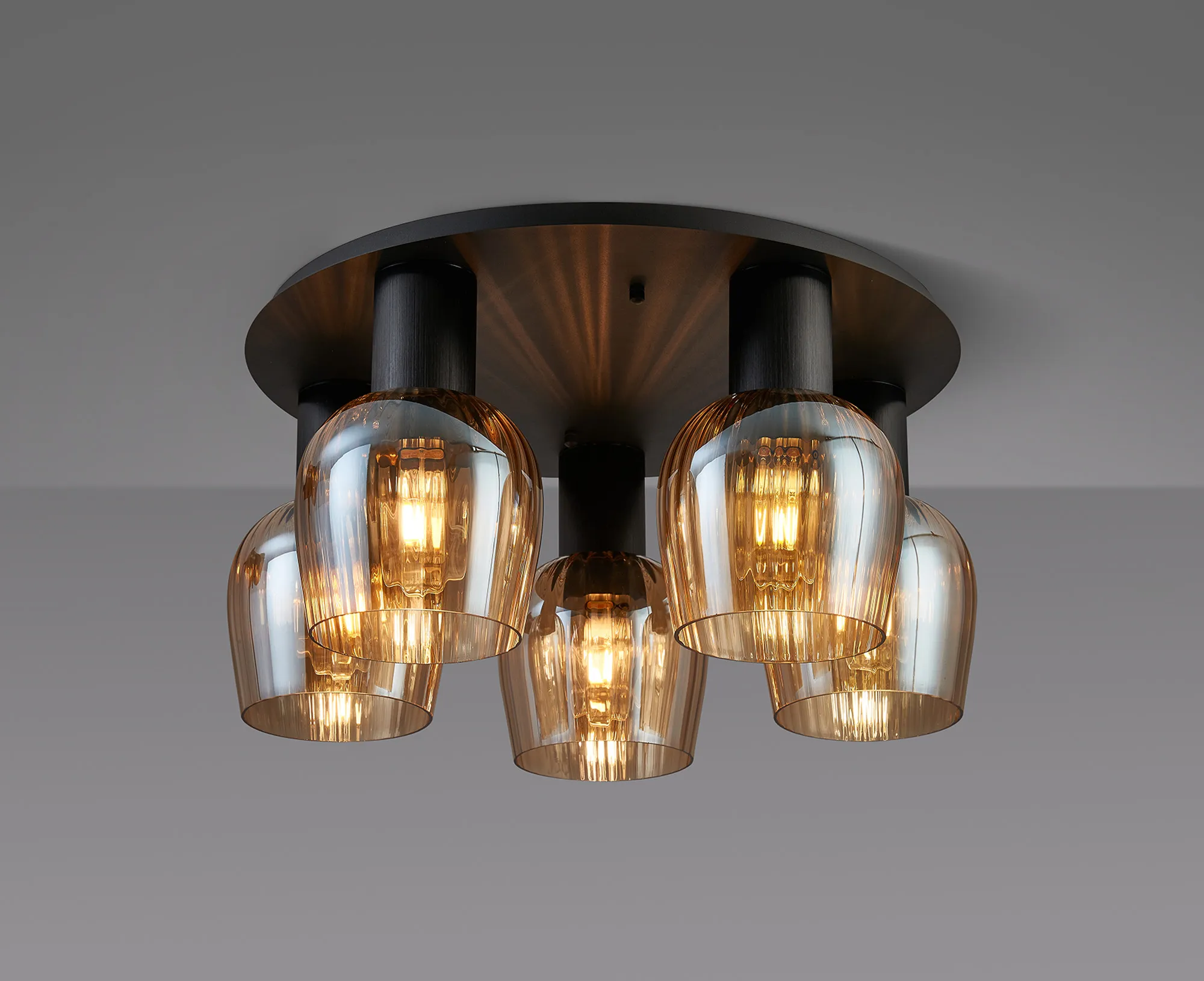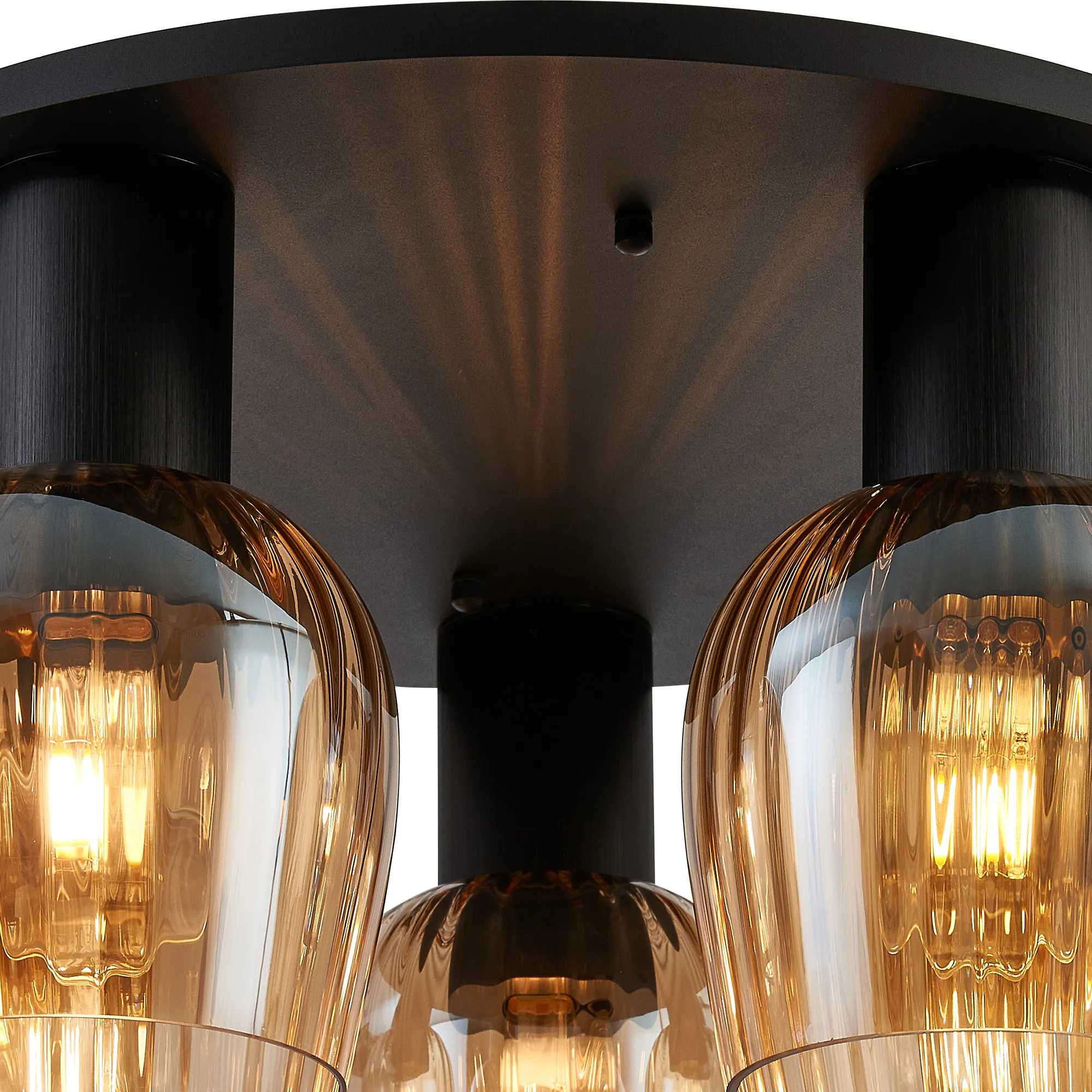 OTHER Albanella 72cm Round Ceiling Light, 5 x E27, Satin Black/Amber Ribbed Wine Glass