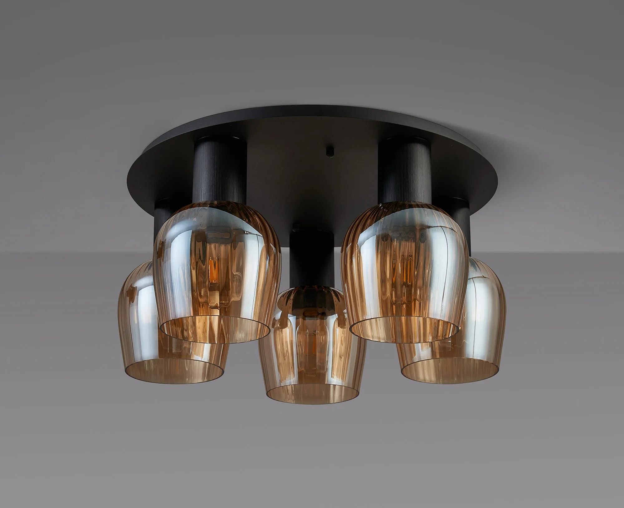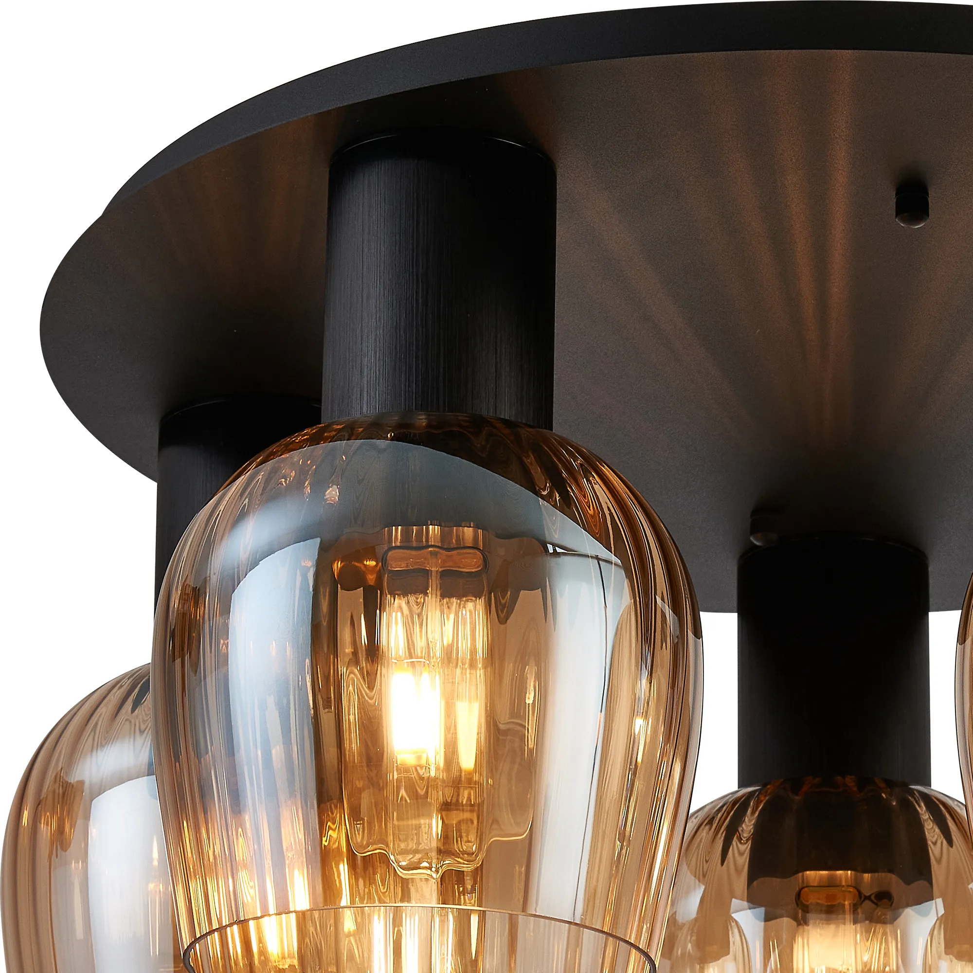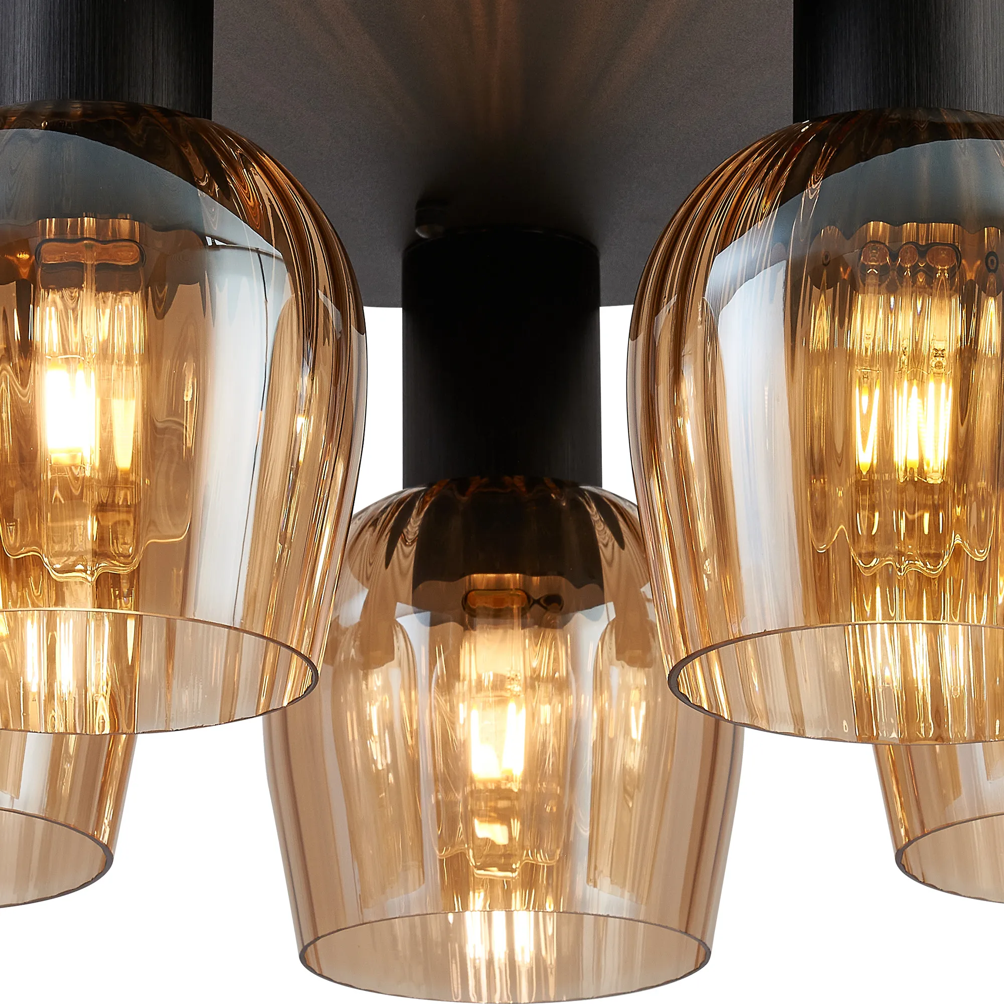 OTHER Albanella 72cm Round Ceiling Light, 5 x E27, Satin Black/Amber Ribbed Wine Glass