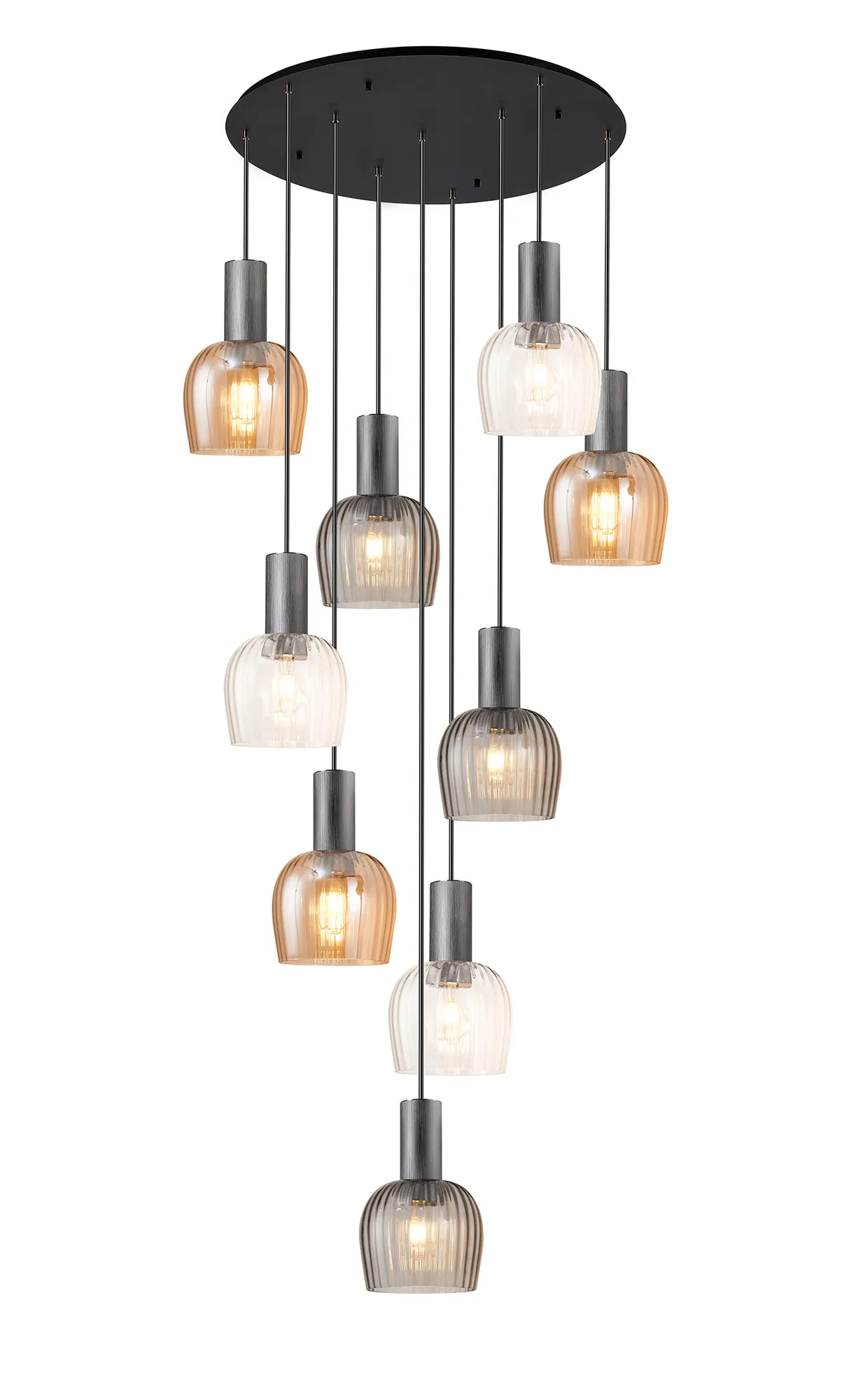 OTHER Albanella 100cm Round Pendant, 9 x E27, Gun Metal/Satin Black/Amber/Clear/Smoke Ribbed Wine Glass