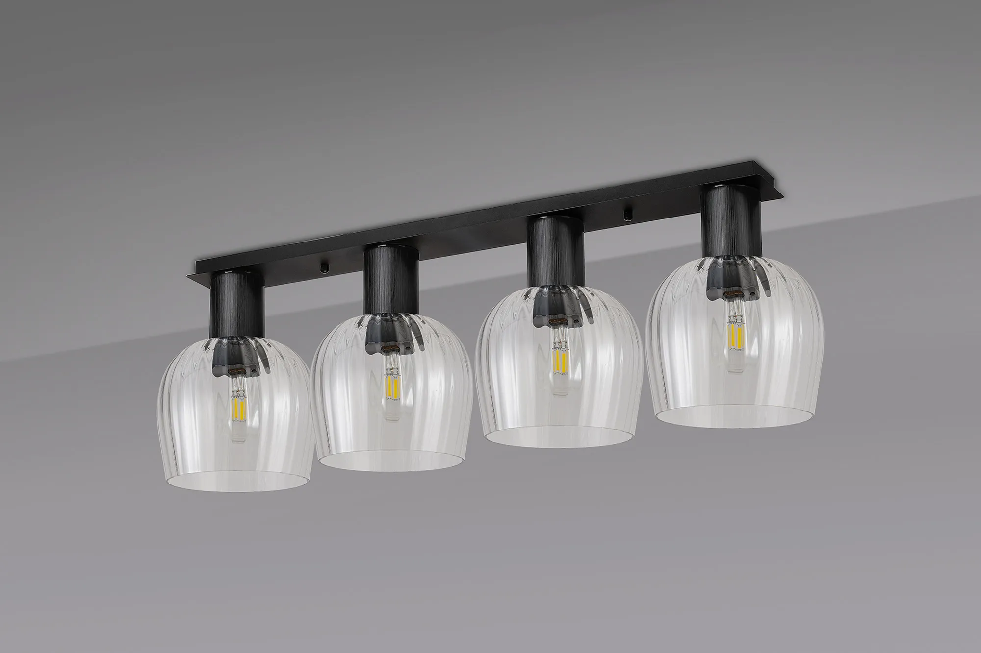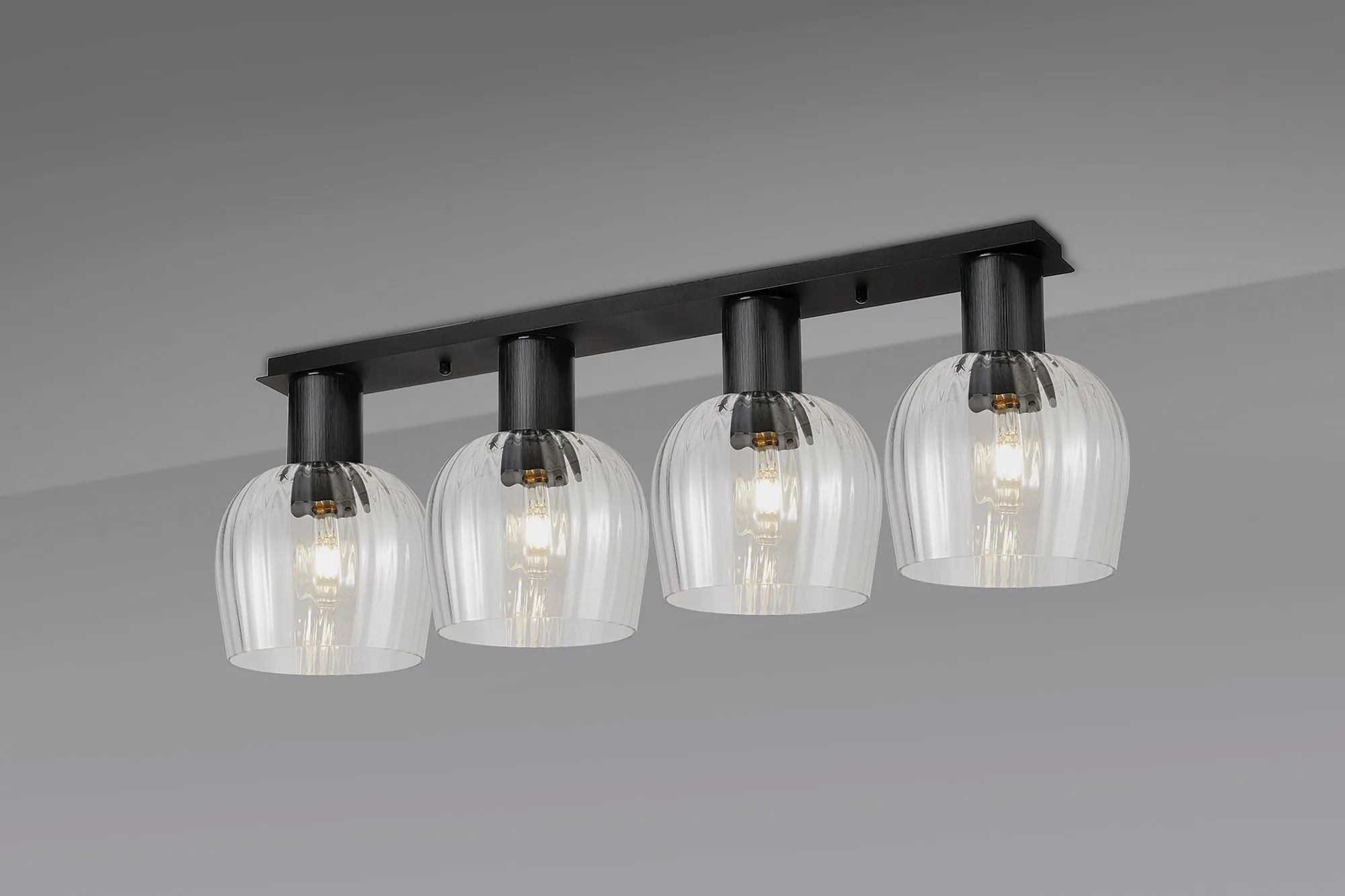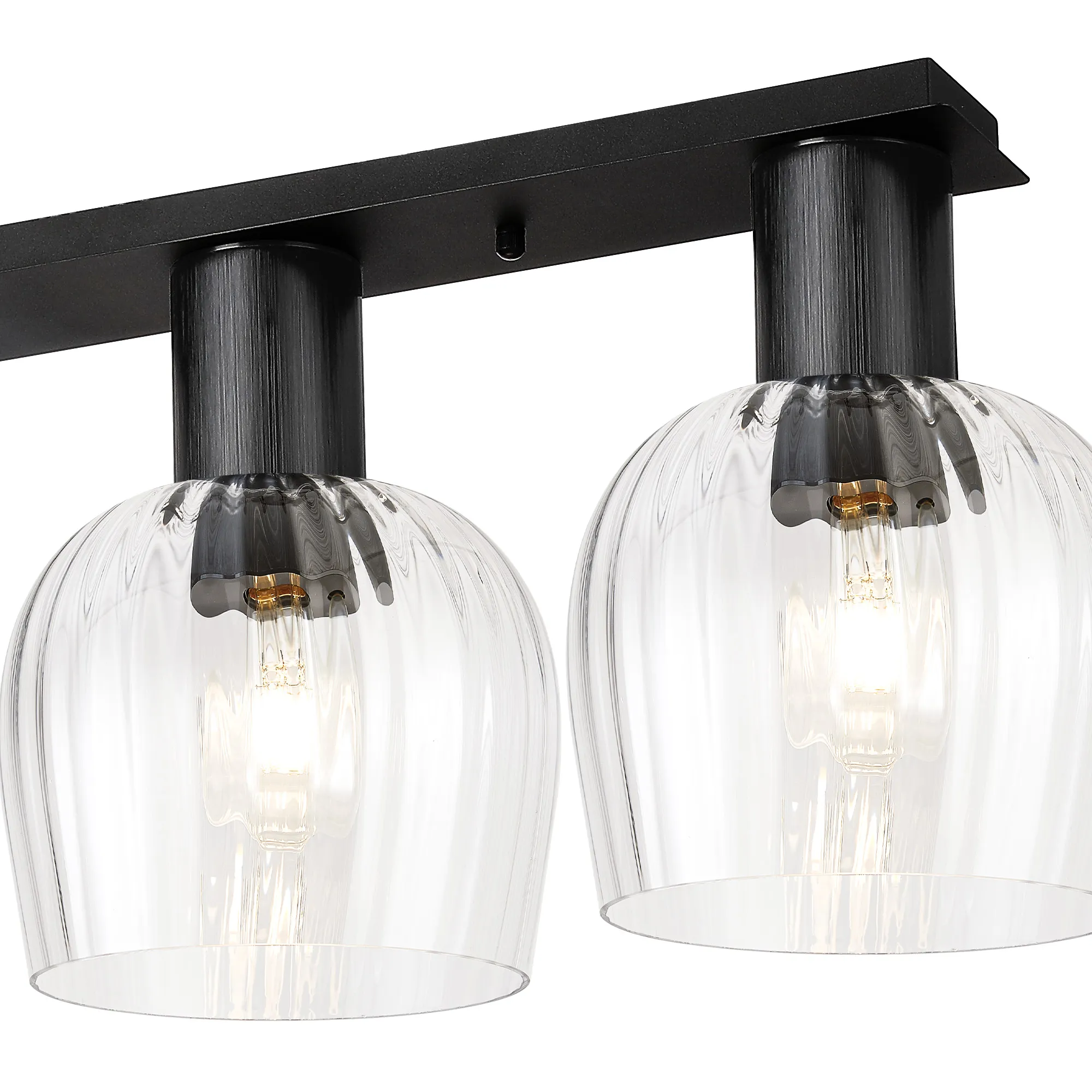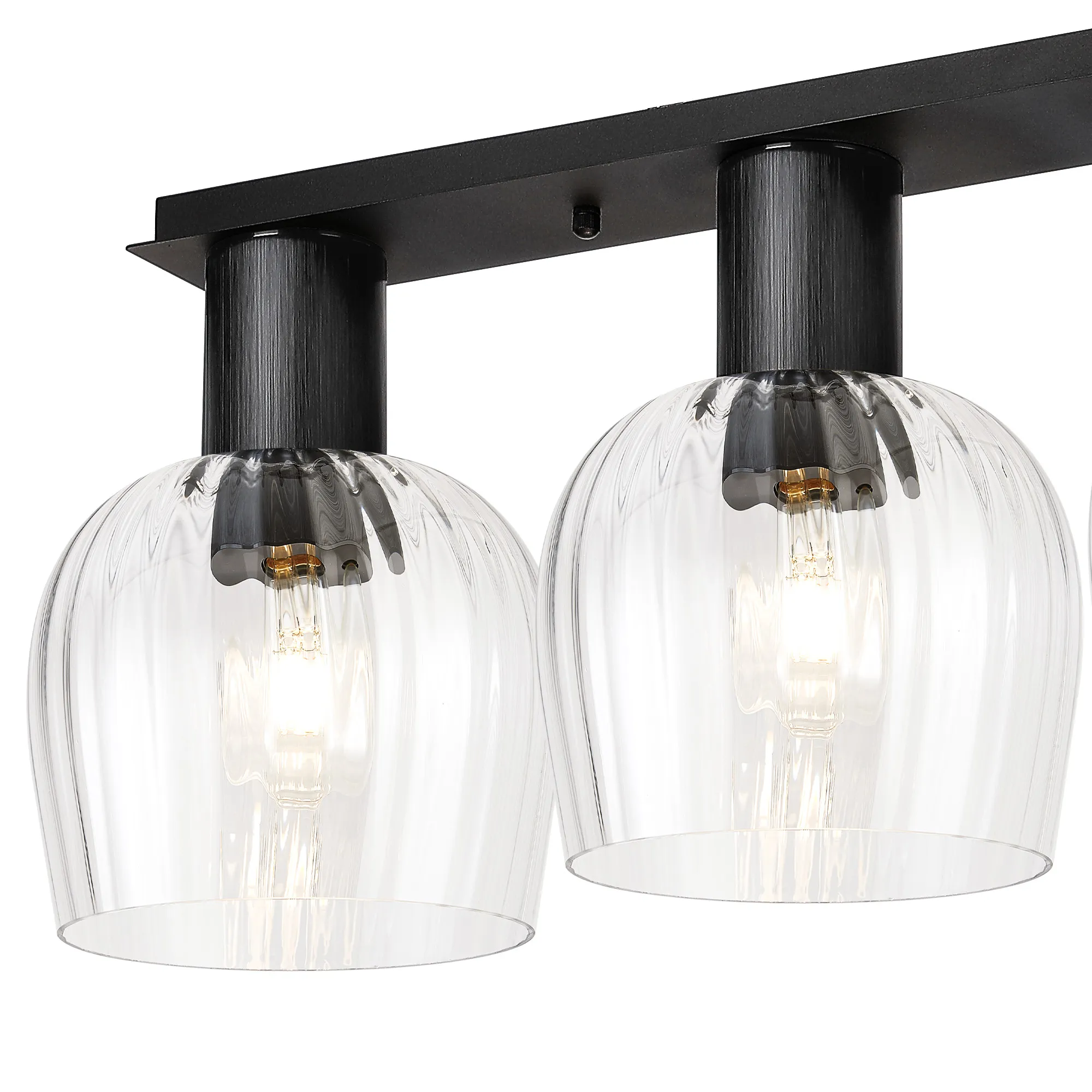 Albanella 105.5 x 23.5cm Linear Ceiling Light, 4 x E27, Satin Black/Clear Seeded Wine Glass