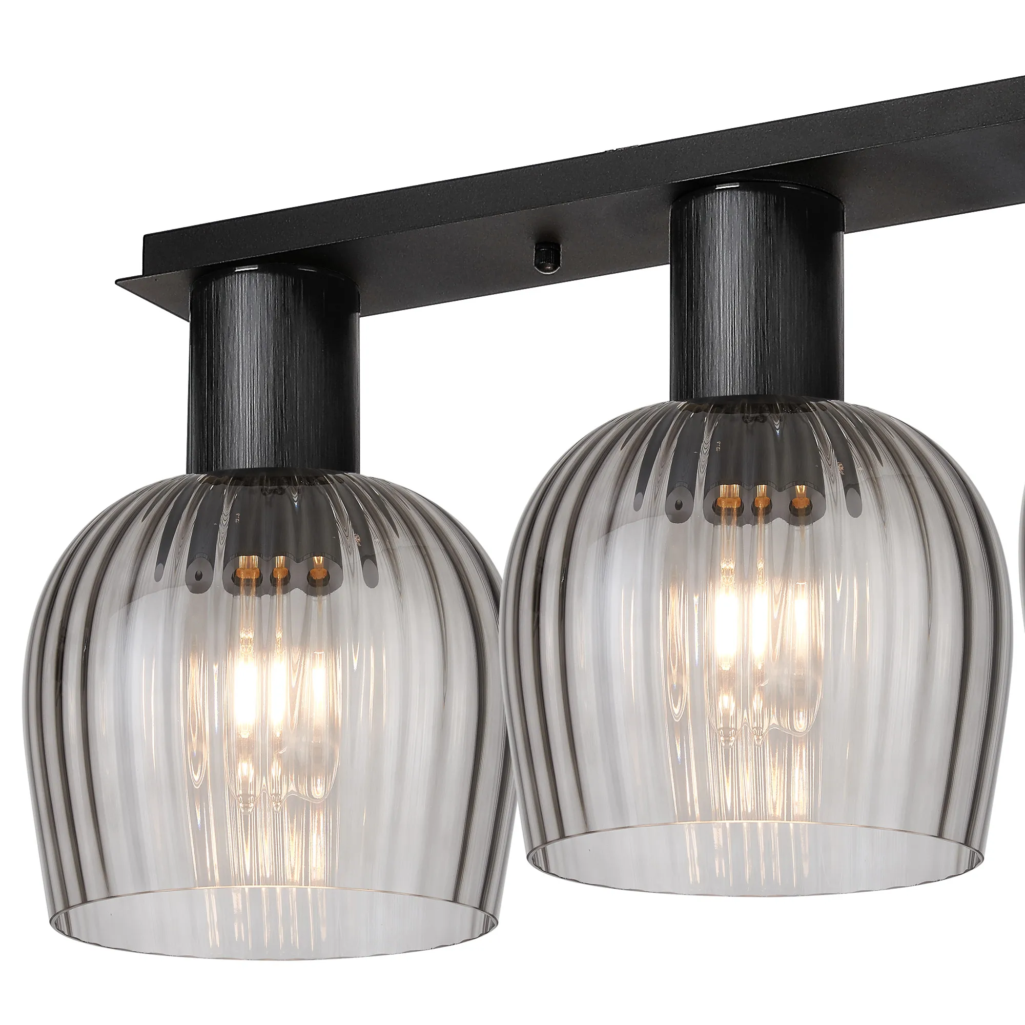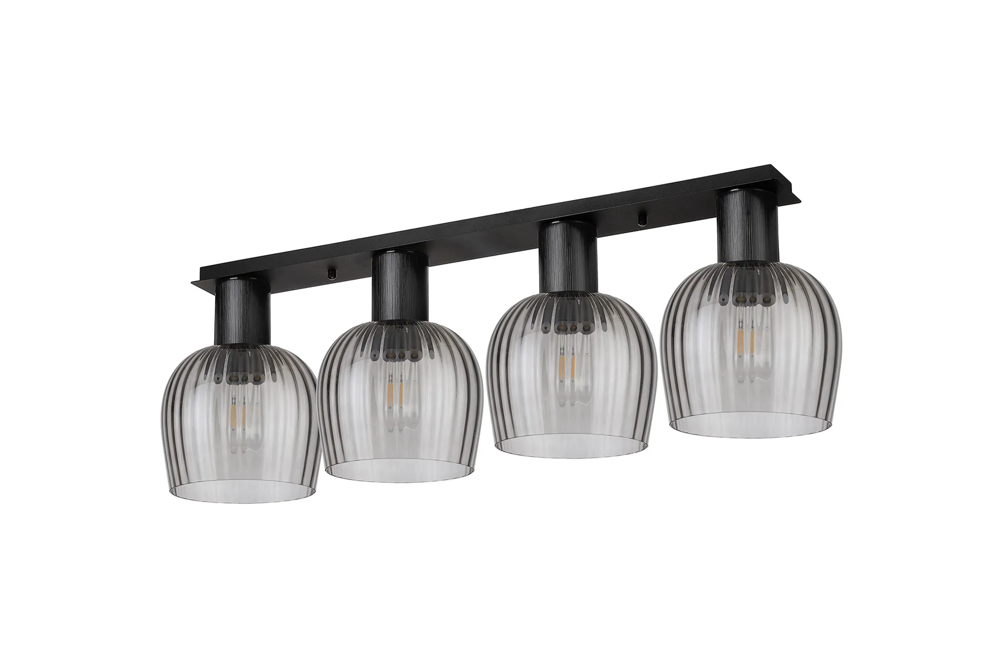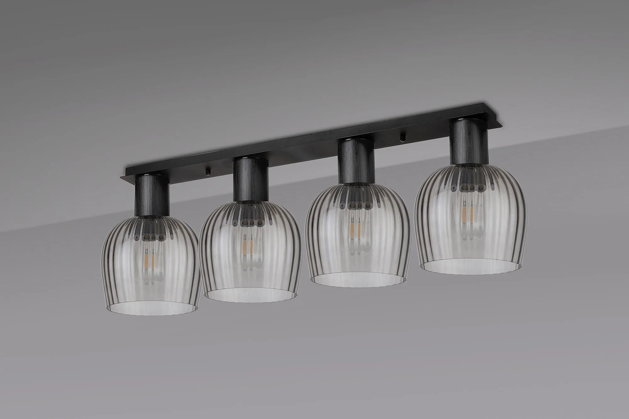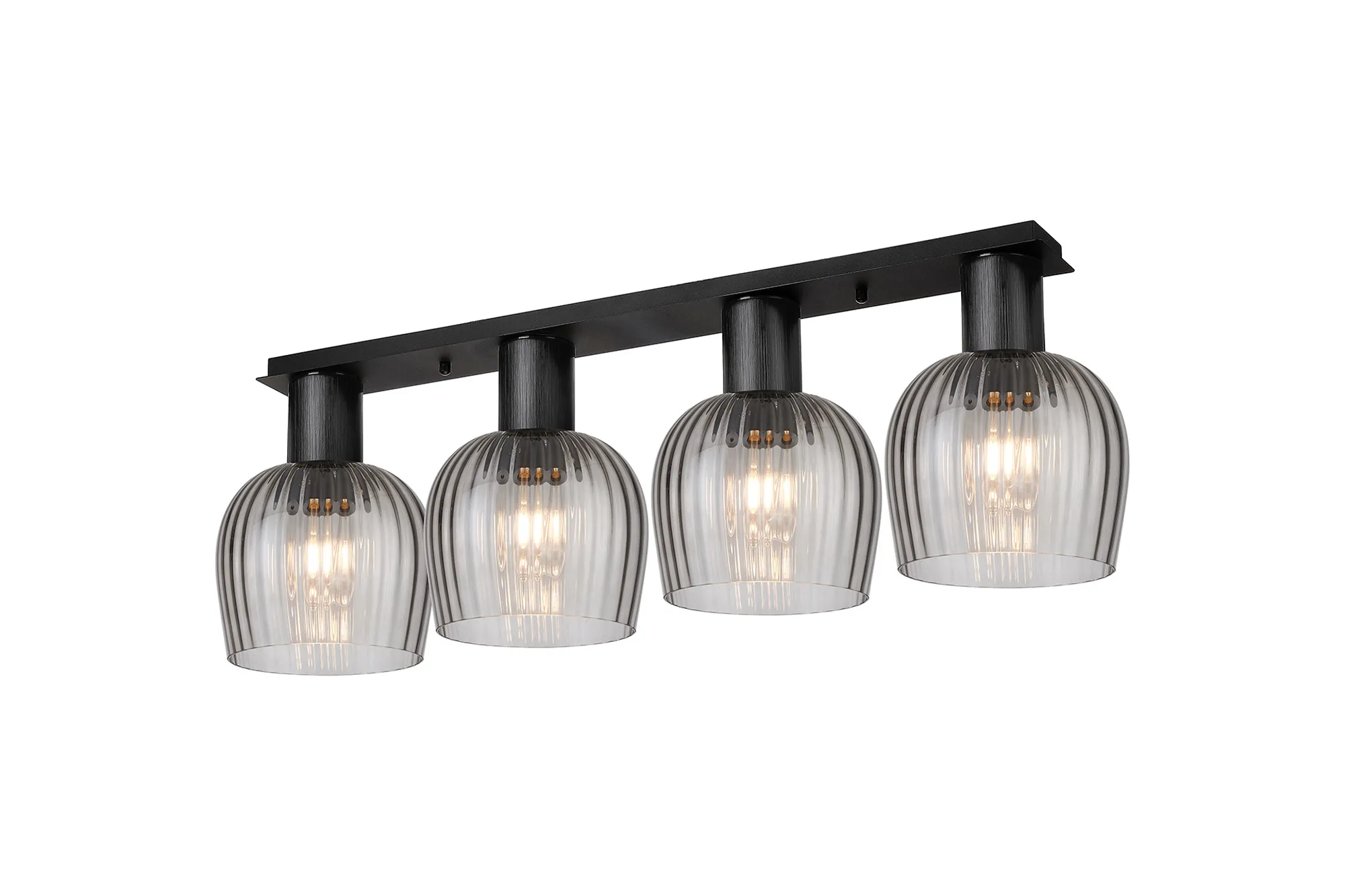 Albanella 23cm Ceiling Light, 1 x E27, Satin Black/Chrome/Smoke Ribbed Wine Glass