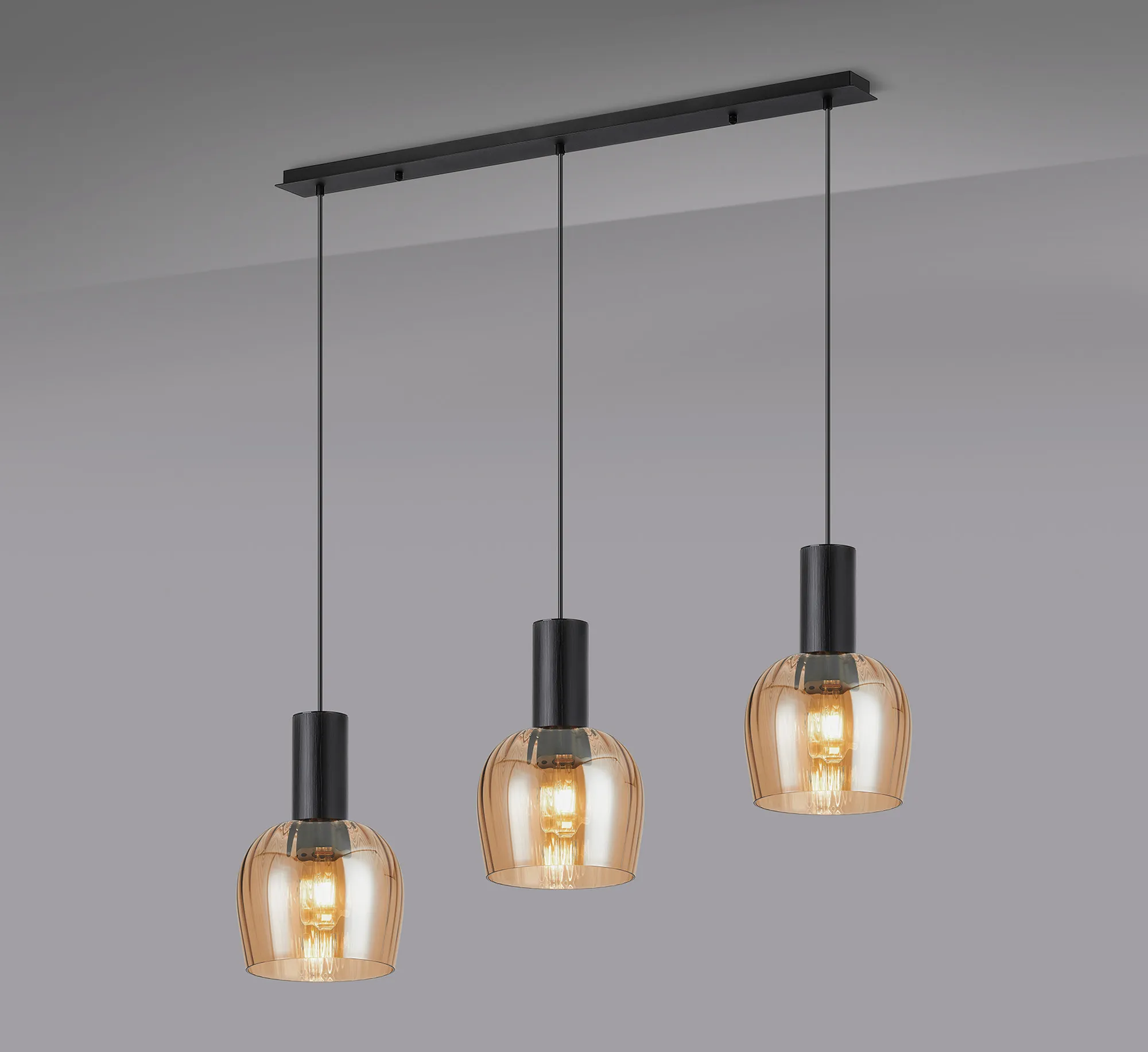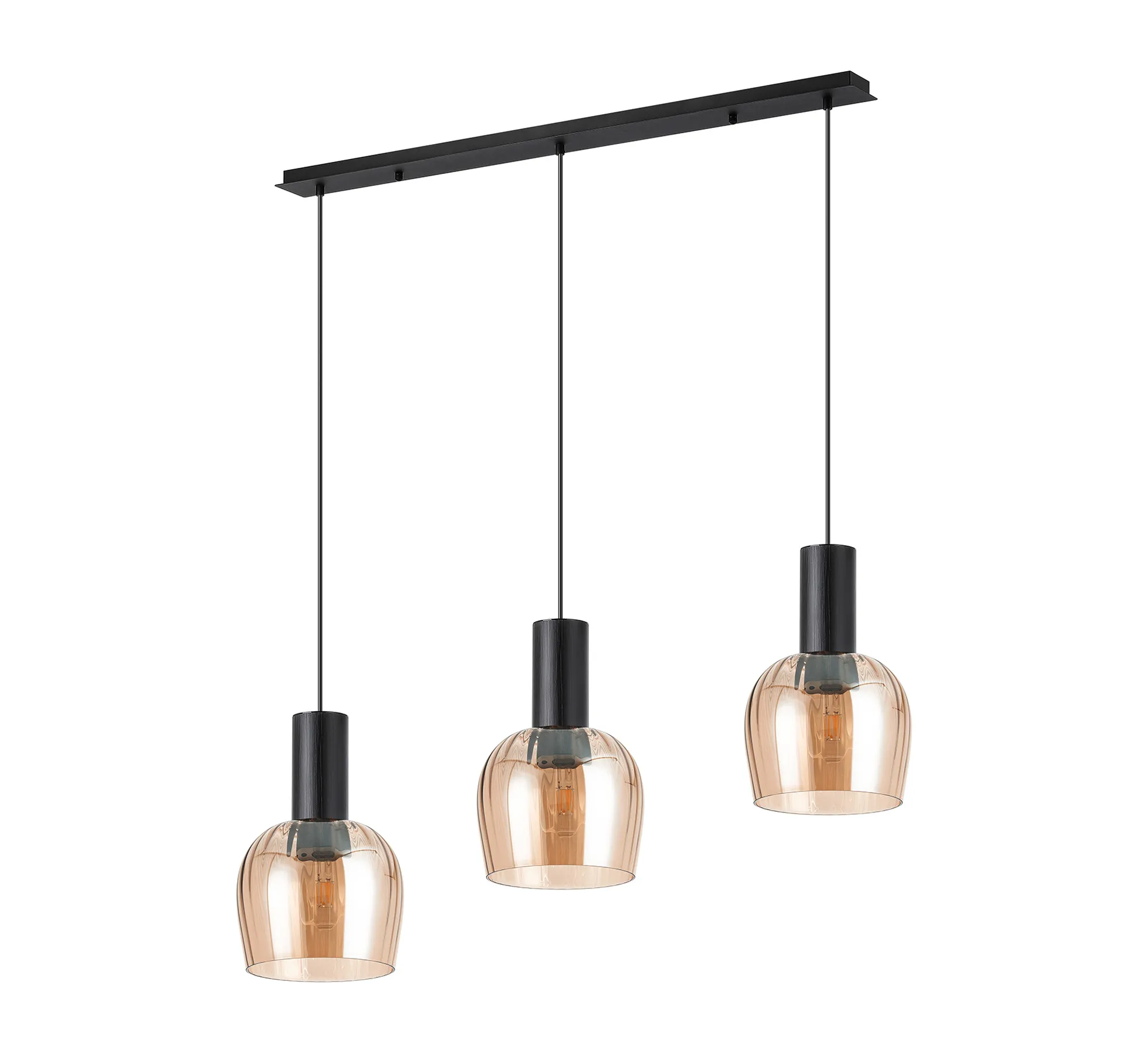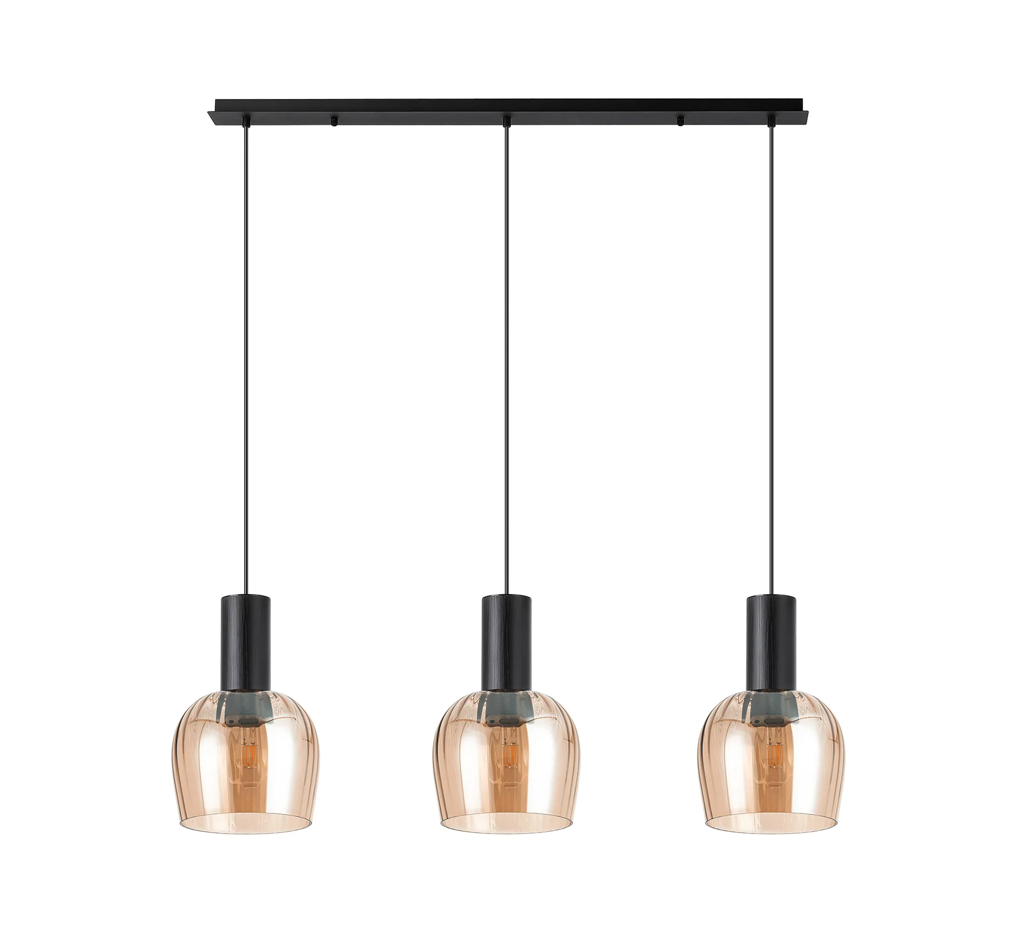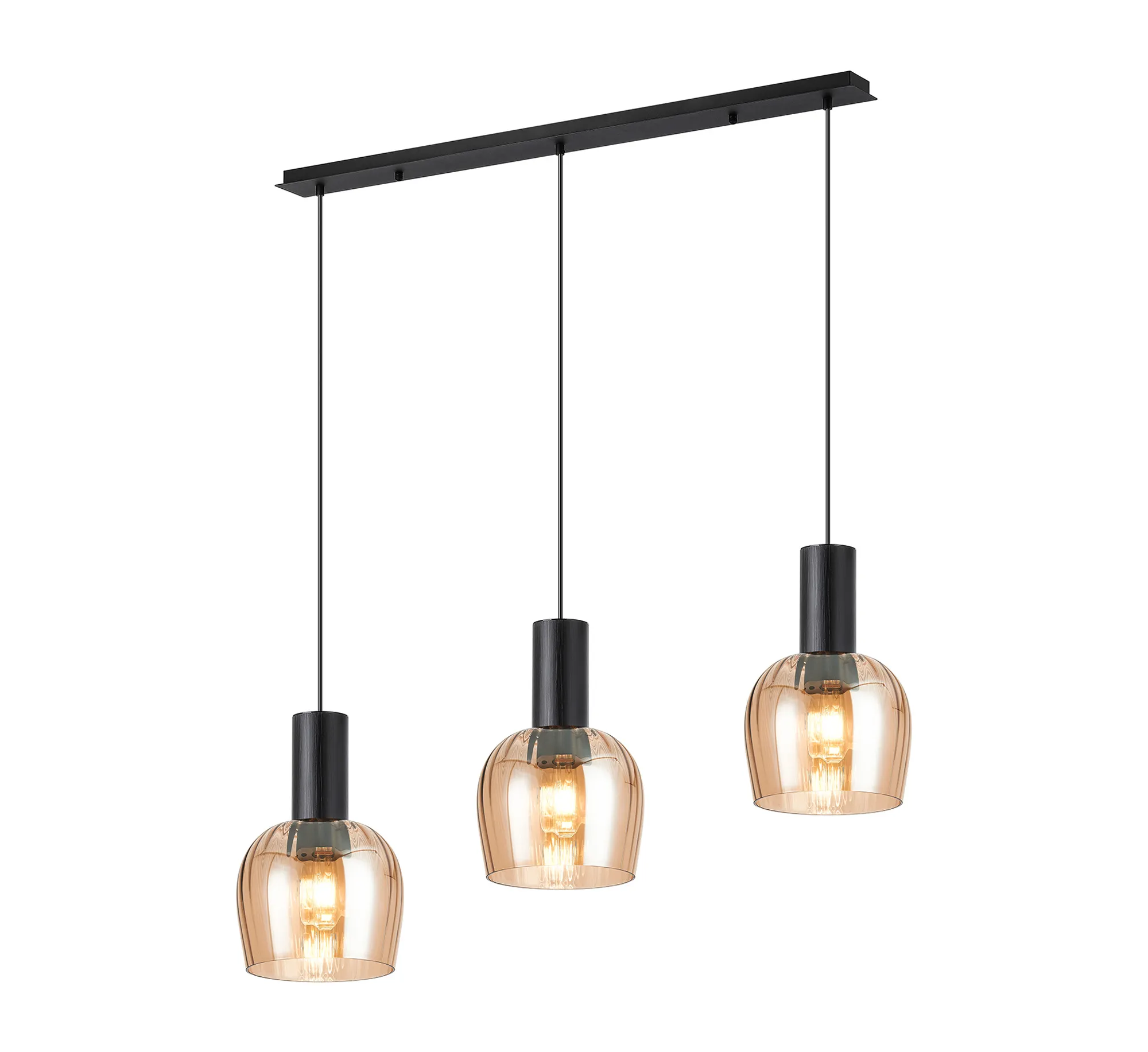 OTHER Albanella 1.1m Linear Pendant, 3 x E27, Satin Black/Amber Ribbed Wine Glass