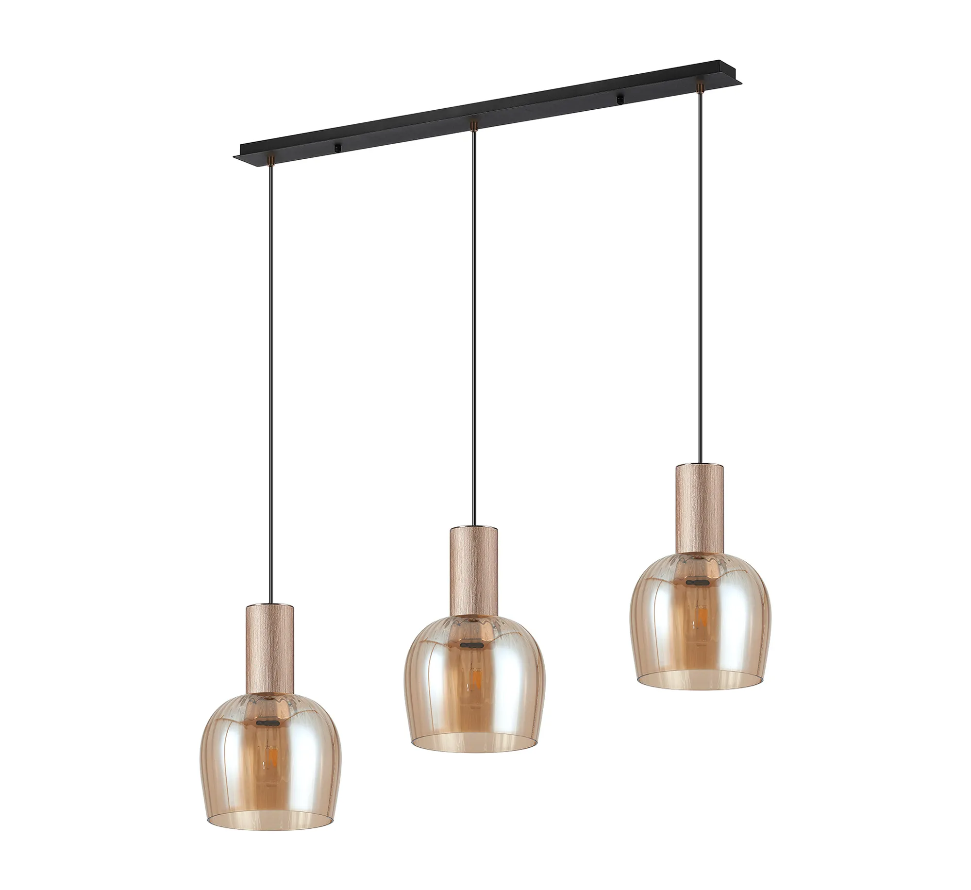 OTHER Albanella 1.1m Linear Pendant, 3 x E27, Titanium Gold/Satin Black/Amber Ribbed Wine Glass