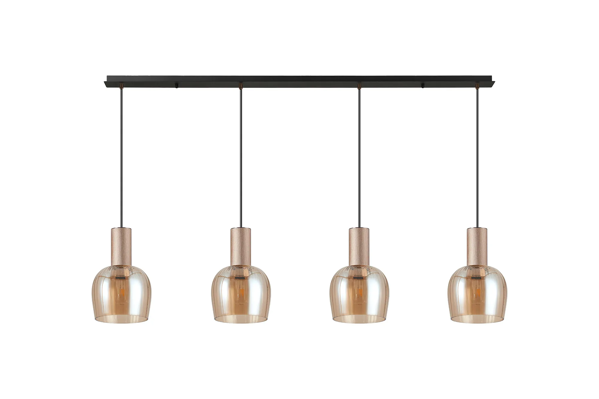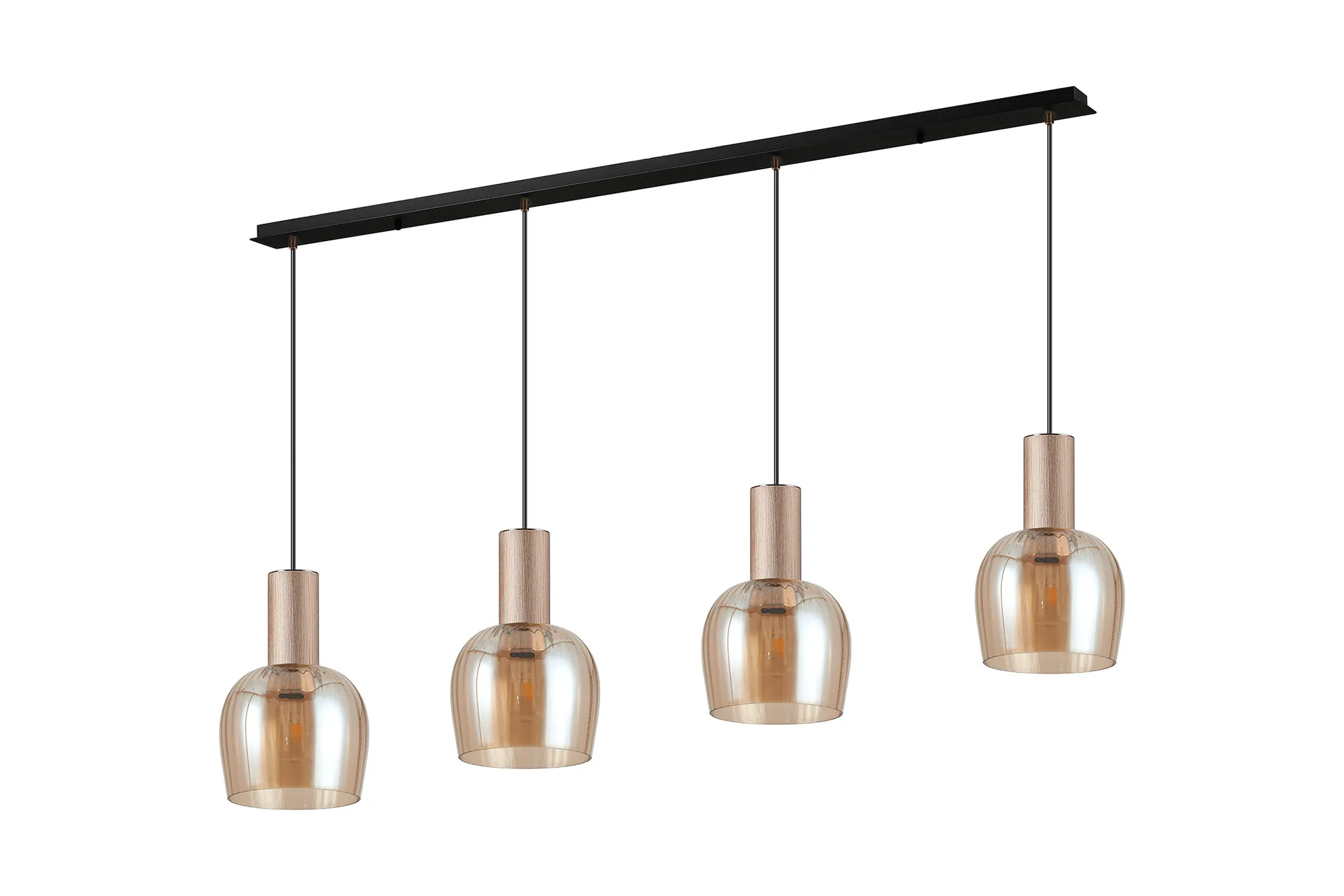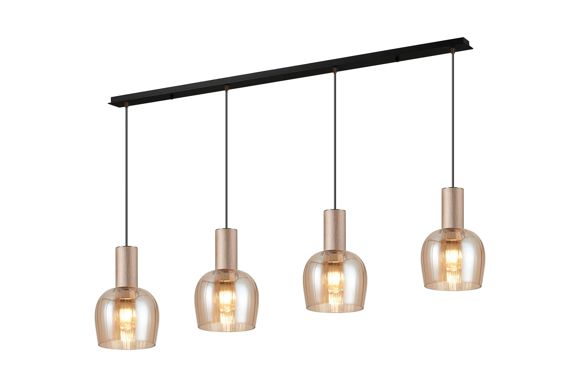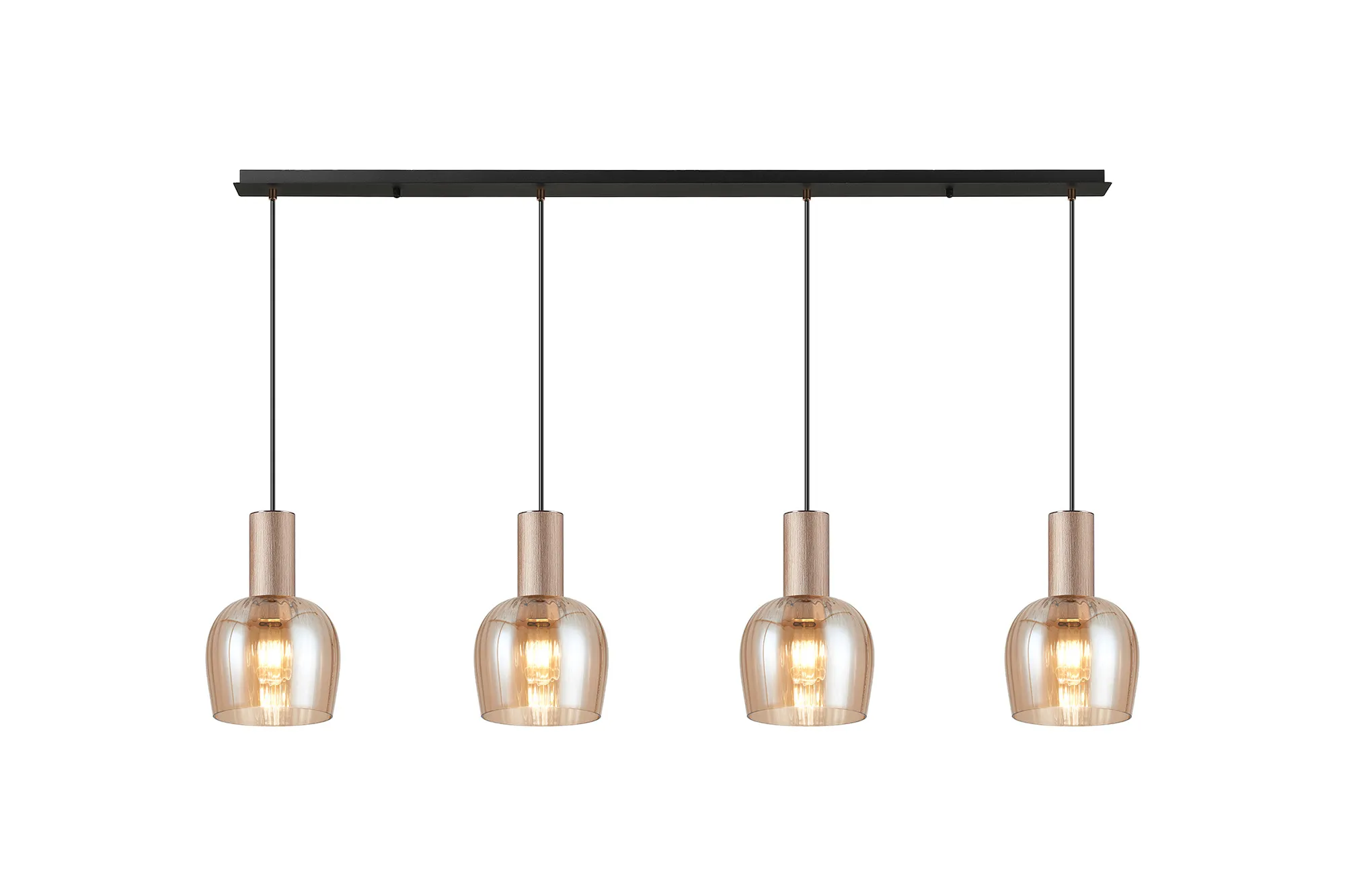 OTHER Albanella 1.5m Linear Pendant, 4 x E27, Titanium Gold/Satin Black/Amber Ribbed Wine Glass