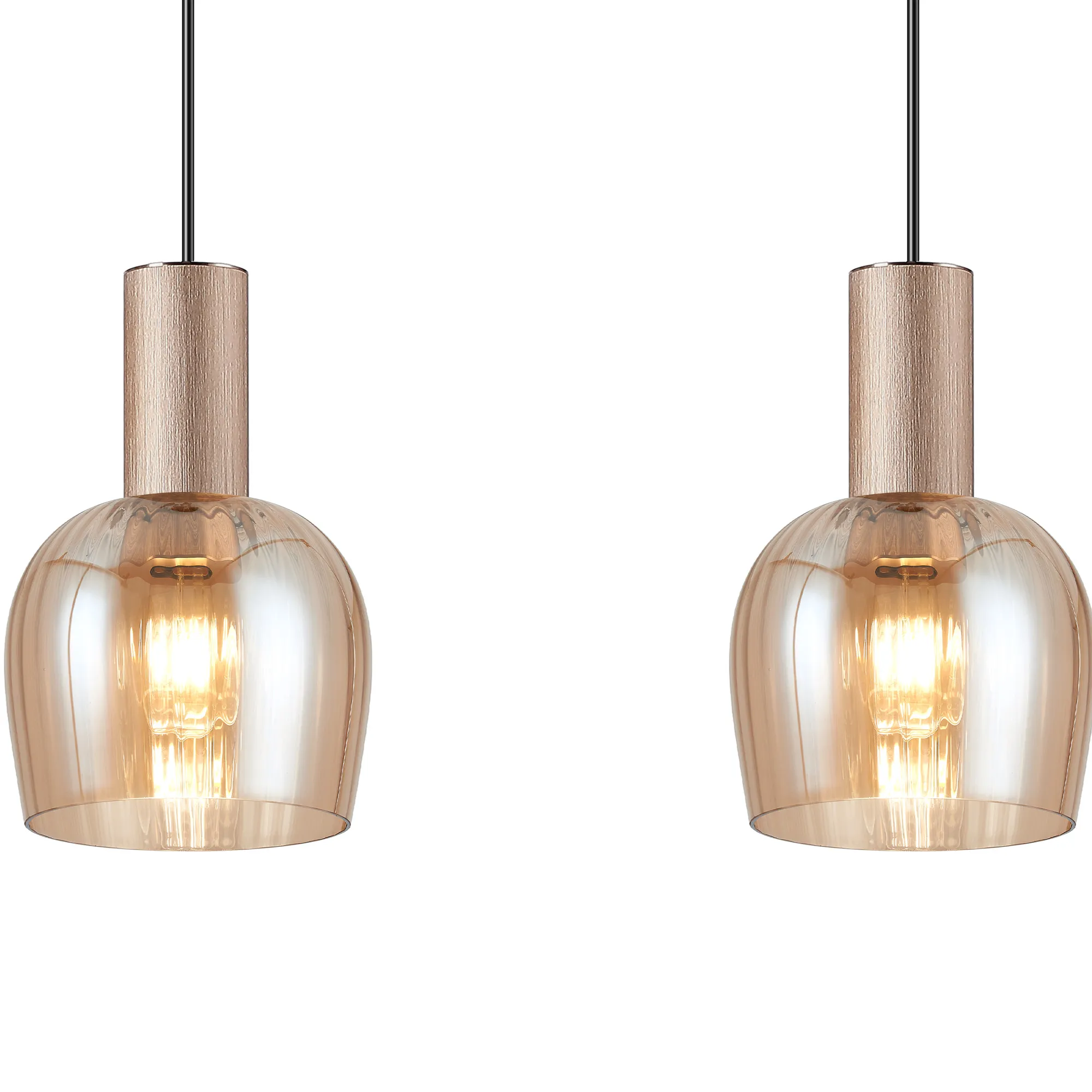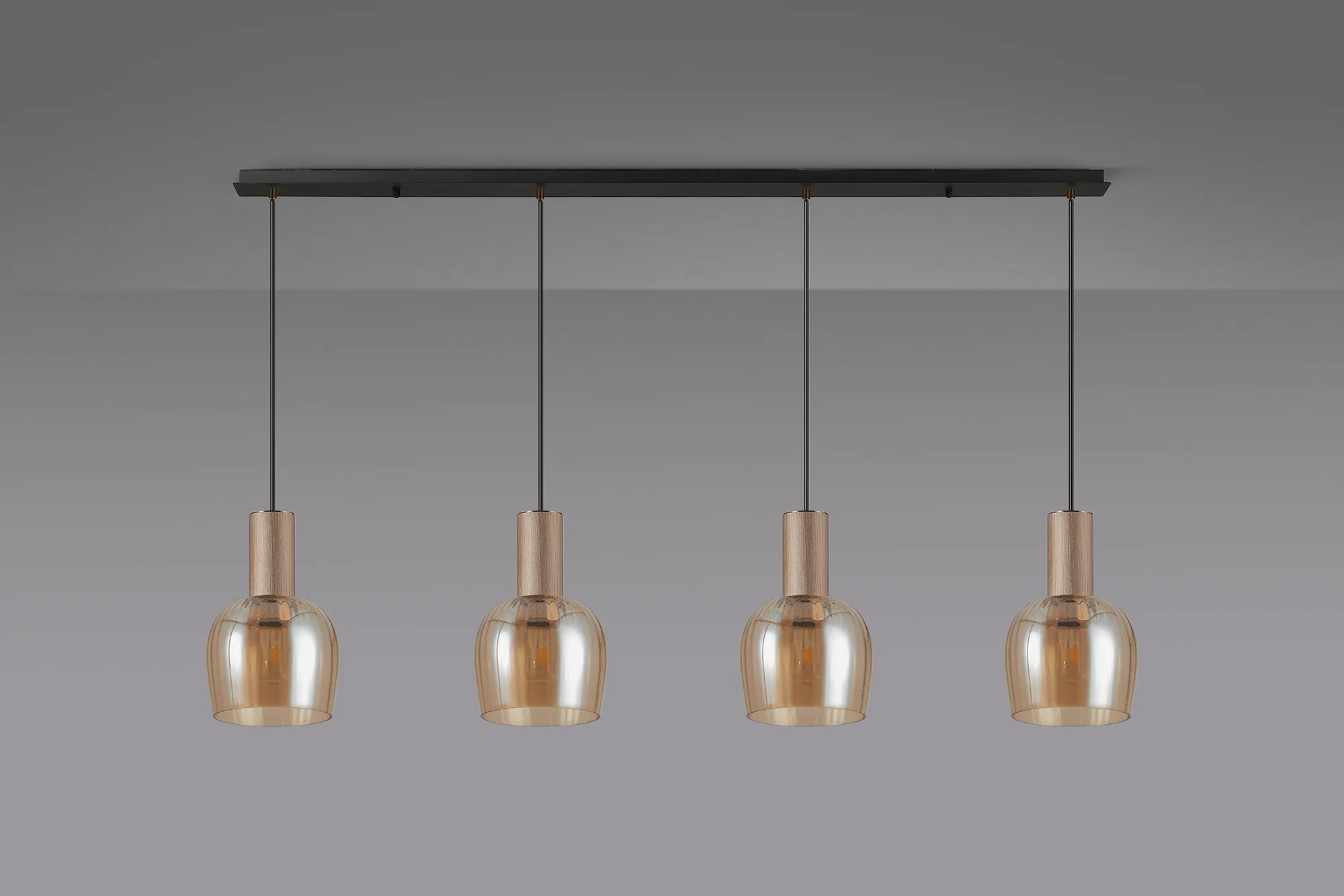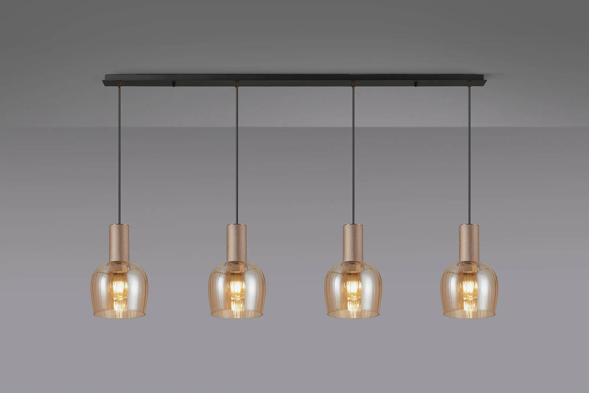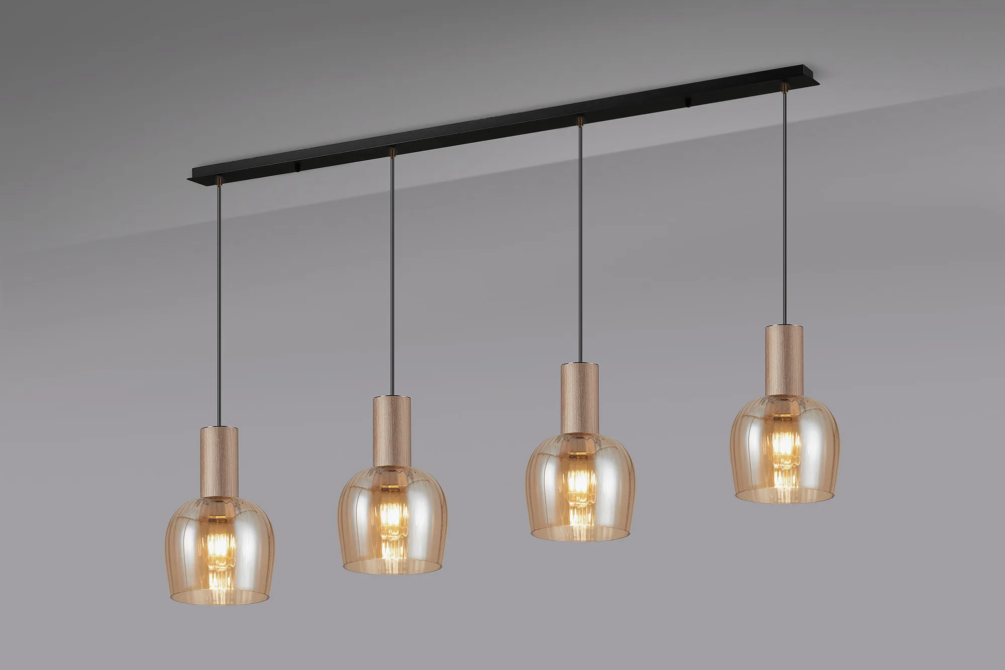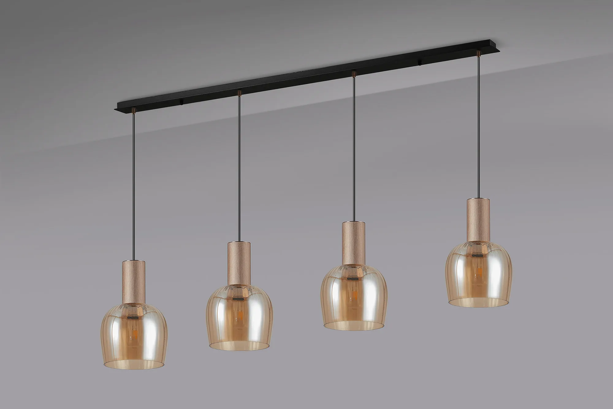 OTHER Albanella 1.5m Linear Pendant, 4 x E27, Titanium Gold/Satin Black/Amber Ribbed Wine Glass