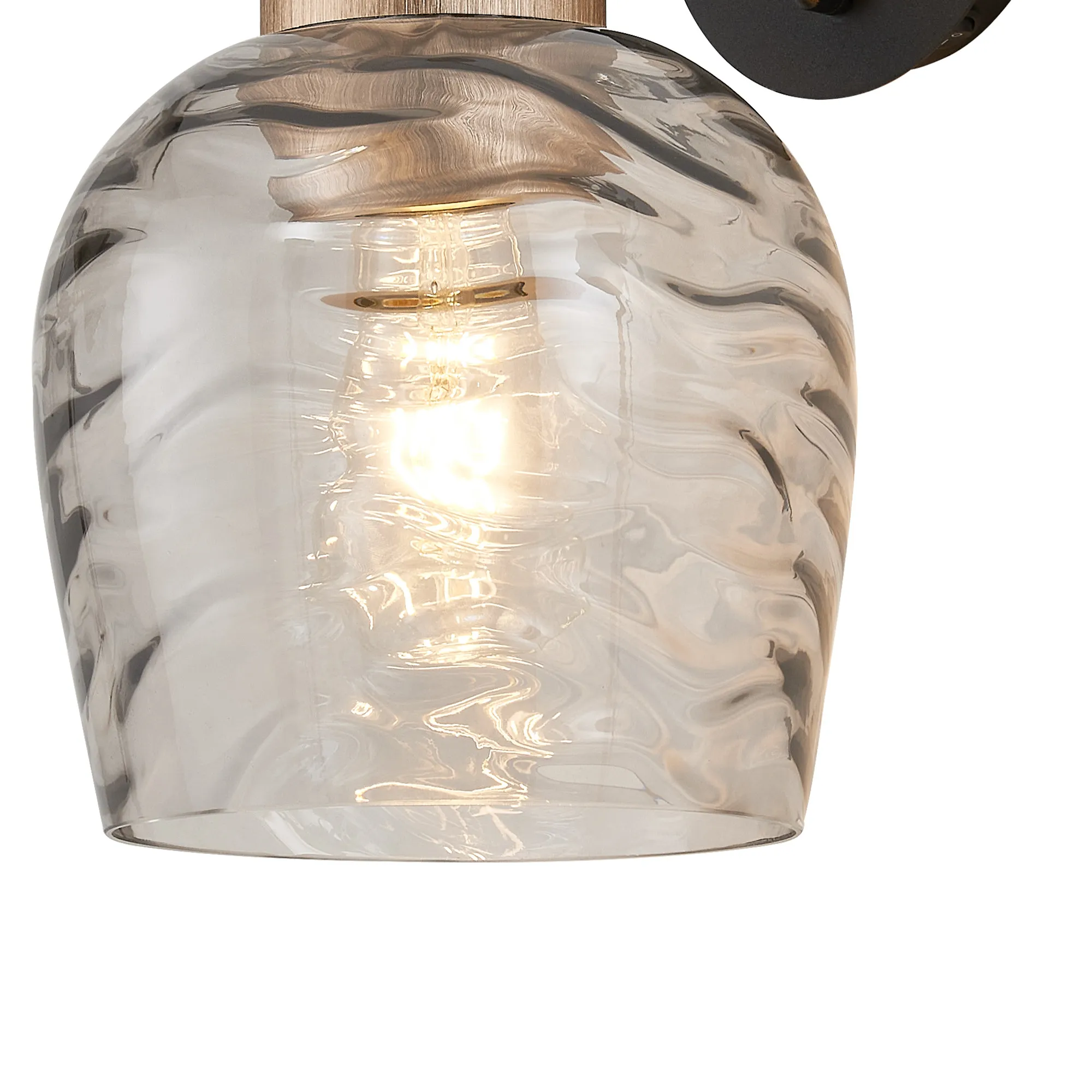 Albanella 105.5 x 23.5cm Linear Ceiling Light, 4 x E27, Titanium Gold/Satin Black/Smoke Ribbed Wine Glass