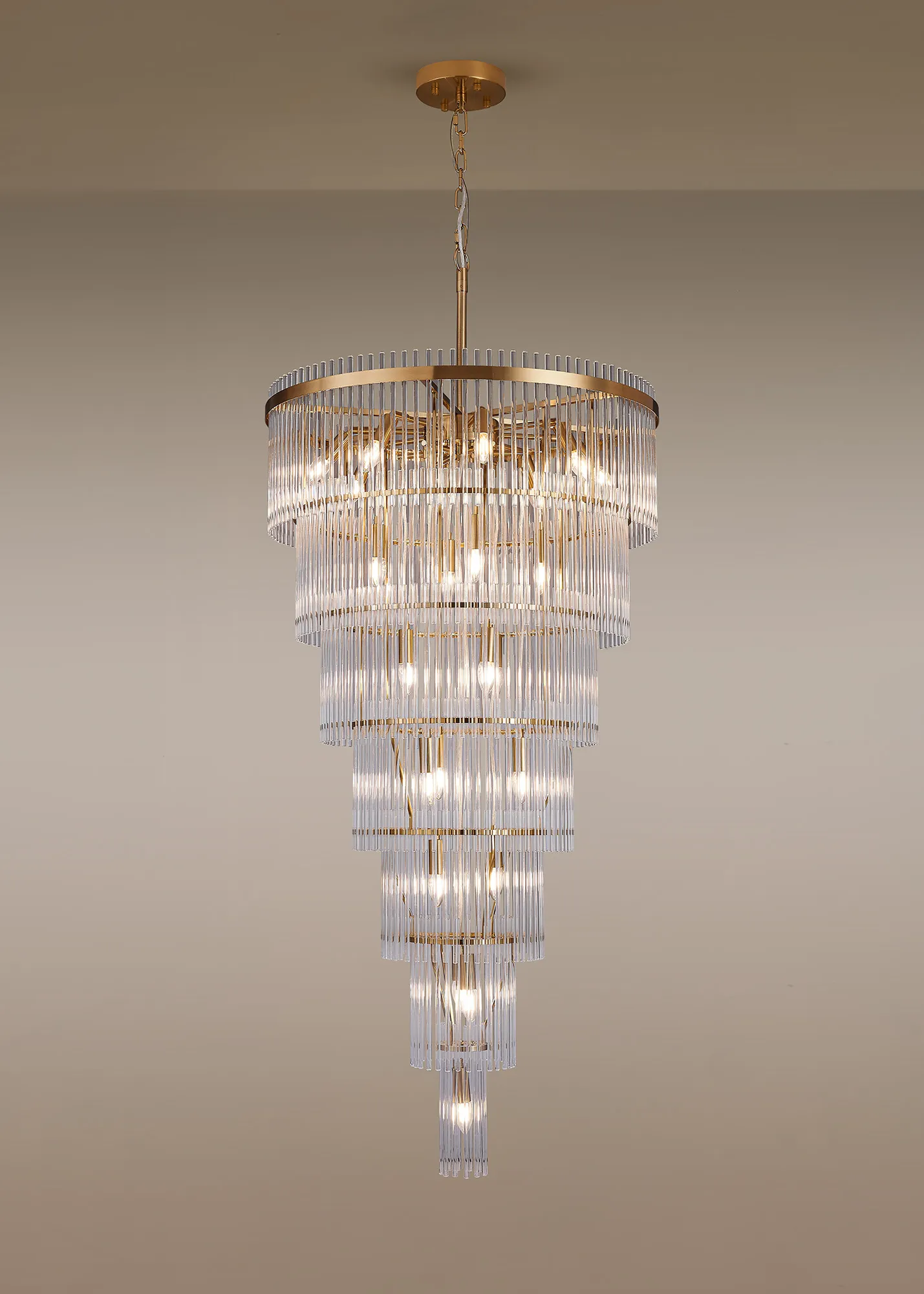 The Valstagna collection offers a versatile selection of fixtures designed to suit a wide range of interiors. With configurations ranging from four-light to an impressive twenty-two-light design, this range caters to both compact rooms and expansive spaces. Each piece is available in a distinctive brown oxide or brass finish, bringing a refined touch of character and elegance. To complete the look, a matching wall light is also included in the collection-perfect for creating a seamless lighting scheme throughout your home or commercial space. Customise the ambiance to suit your style with a choice of tiered clear, frosted, or smoked glass. Whether you're aiming for a contemporary, classic, or transitional aesthetic, the Valstagna range delivers both style and substance.