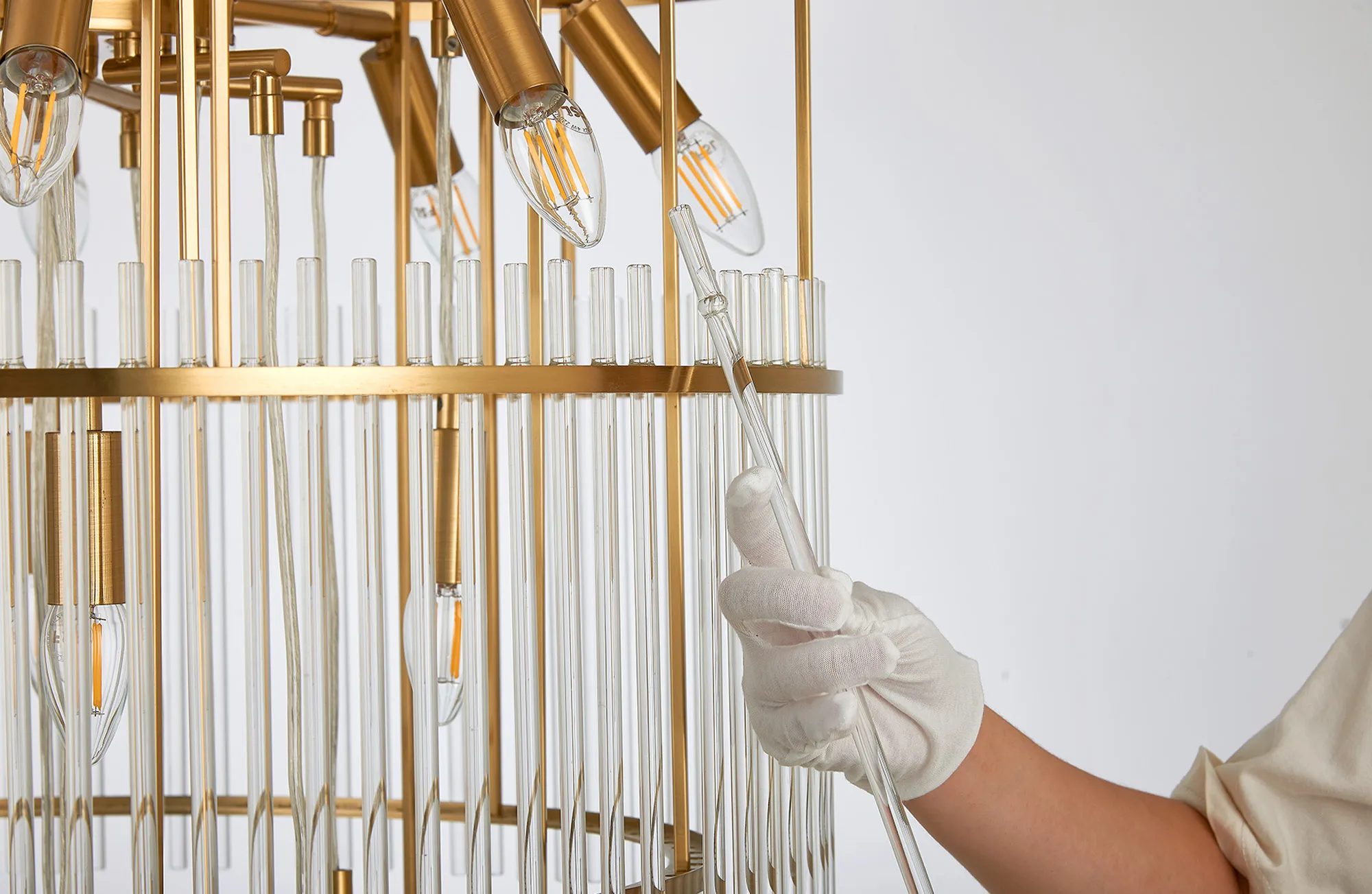 Valstagna 77cm Pendant/Semi Ceiling 15 Light E14, Brass/Clear Glass Rods