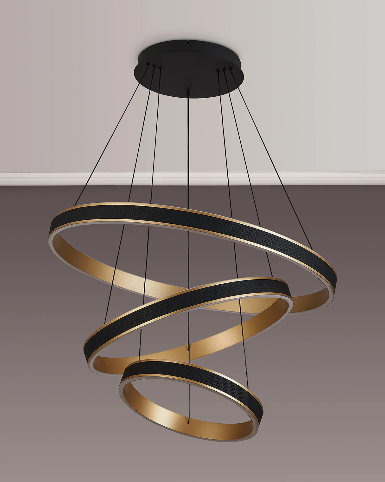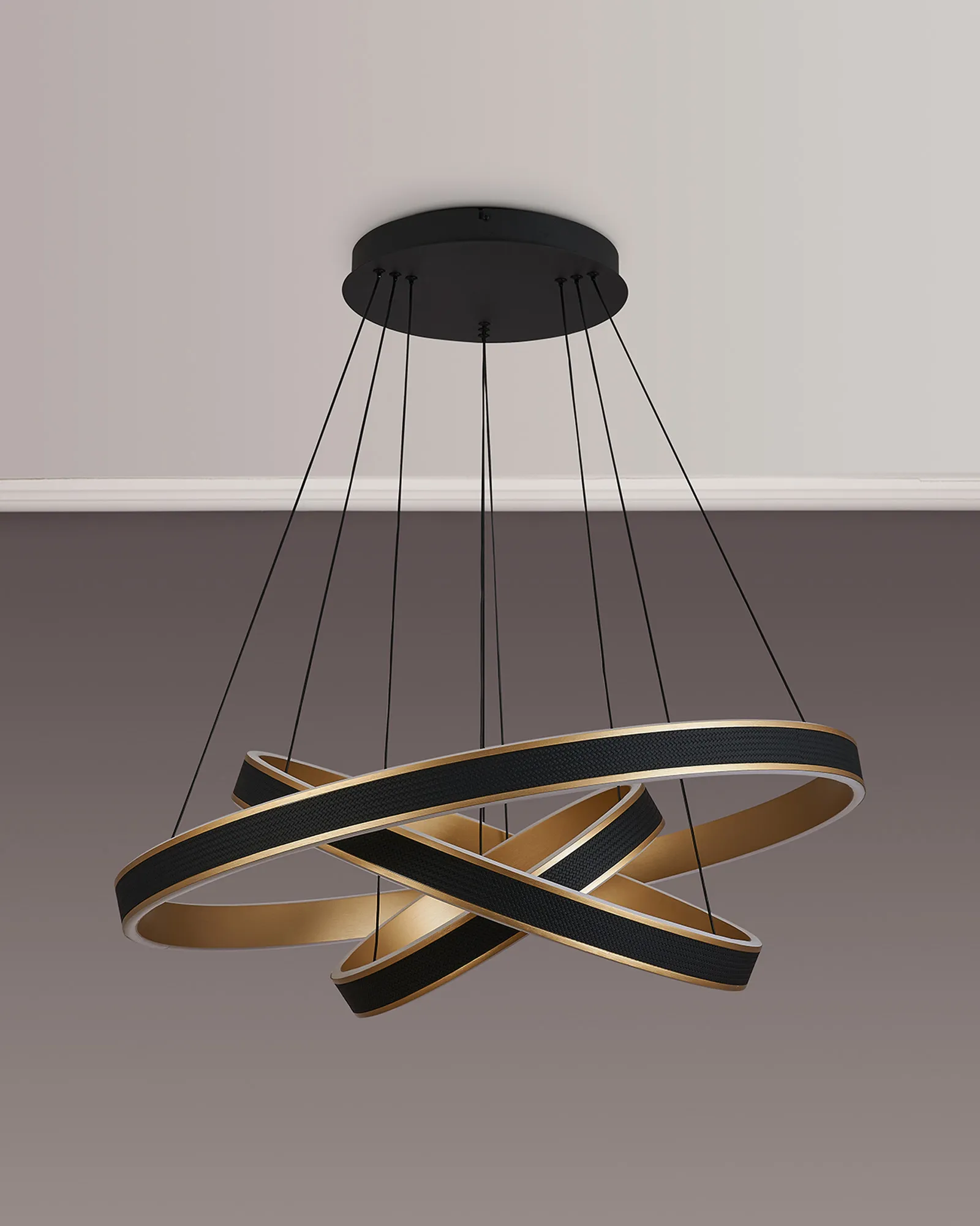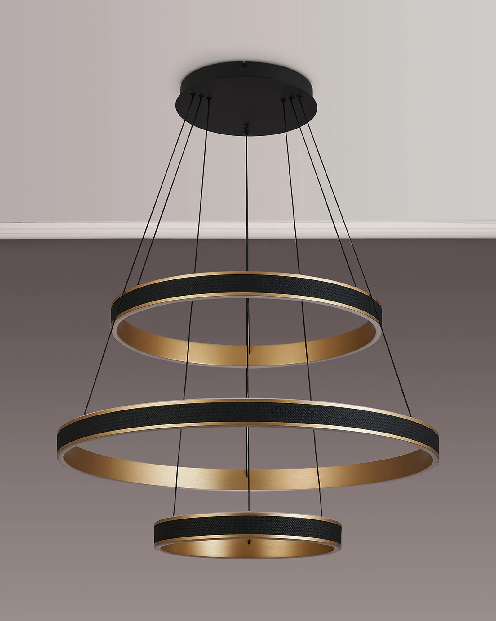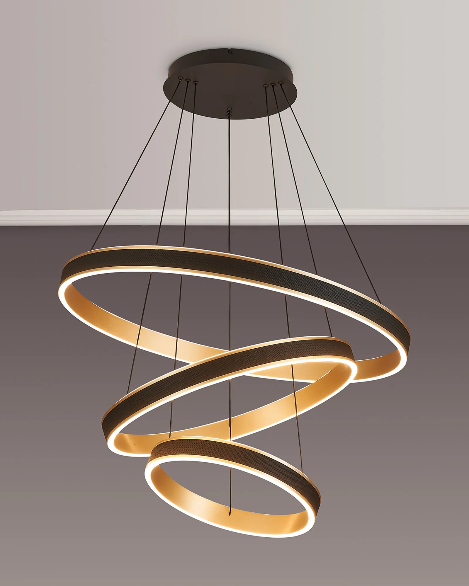 The Vidor pendant light is a strikingly modern lighting solution that masterfully balances style and functionality. Featuring a sleek round design, it is available in a range of sizes-from 40cm to 1 metre, as well as a dramatic 3-tier option-making it suitable for both intimate home settings and sophisticated commercial spaces. A standout feature of Vidor is its tuneable colour temperature, allowing you to adjust the light from a warm 3000K to a crisp 6000K. This flexibility lets you tailor the ambiance to suit any mood or occasion, from relaxed evenings to focused work environments. The design is further elevated by a faux leather exterior, adding a unique tactile element while the choice of brushed gold or Antique Silver finishes lifts the design with a touch of luxury. A matching wall light is also available, enabling a cohesive and contemporary lighting scheme throughout your space. With its refined aesthetic and modern versatility, the Vidor range is as much a design statement