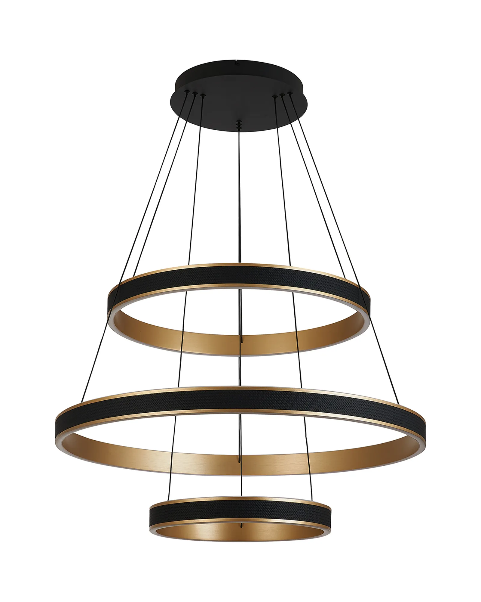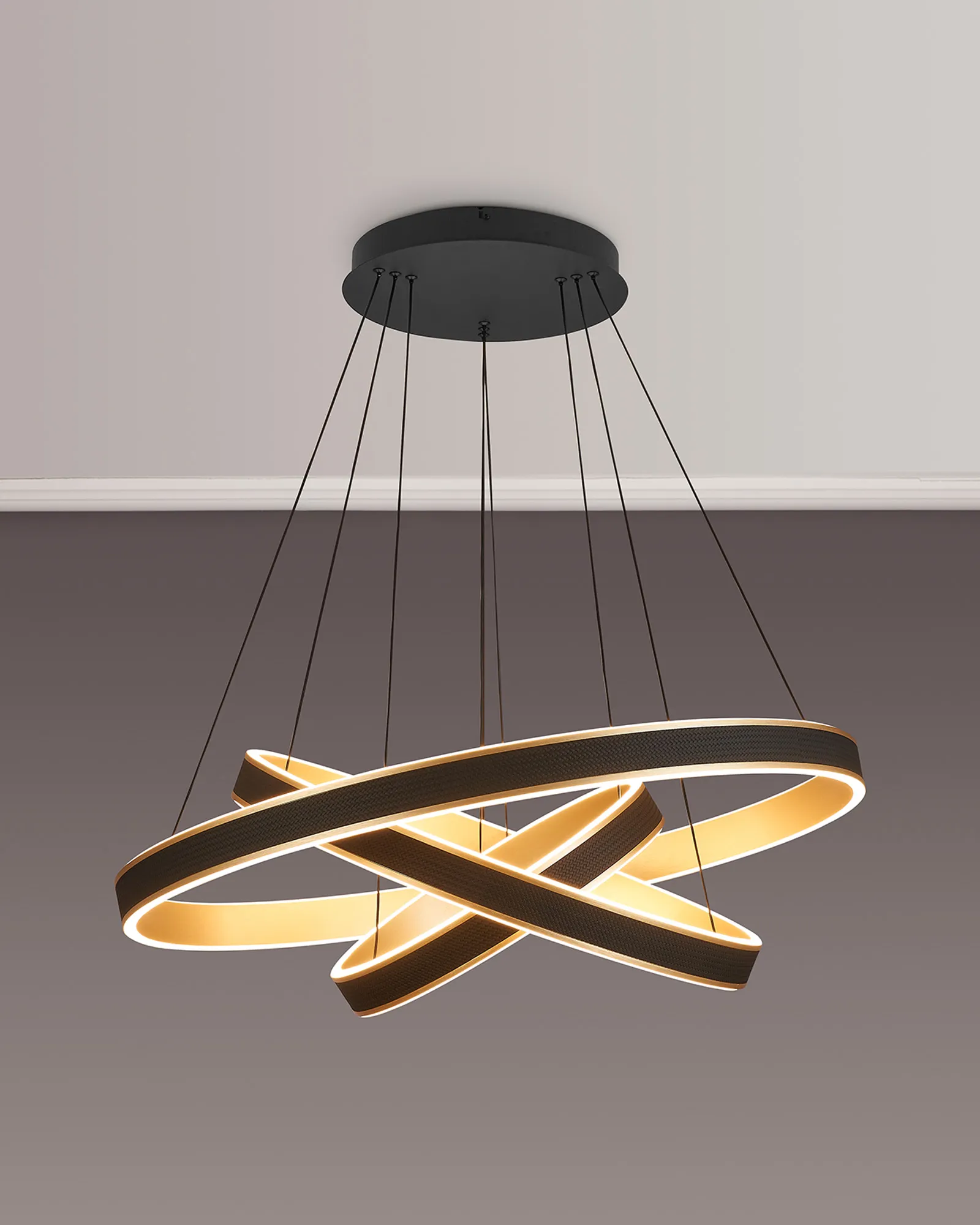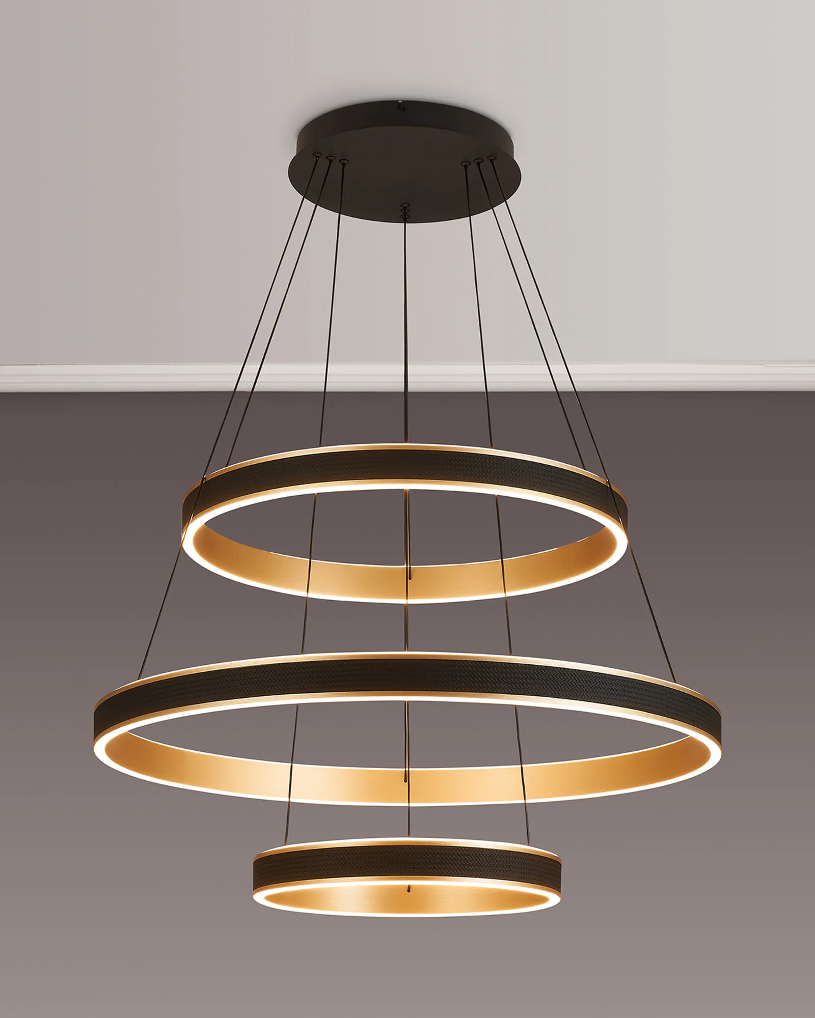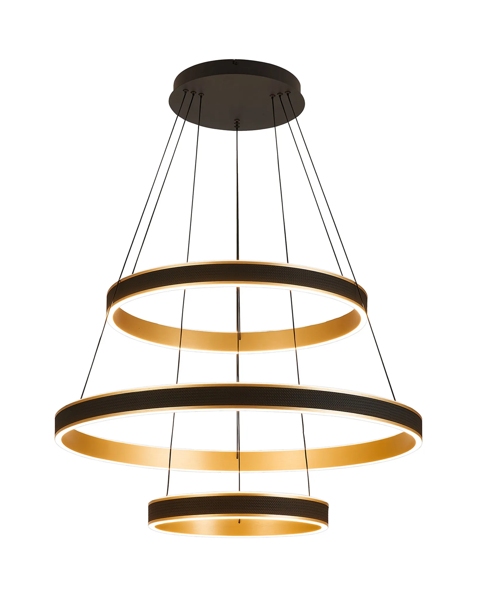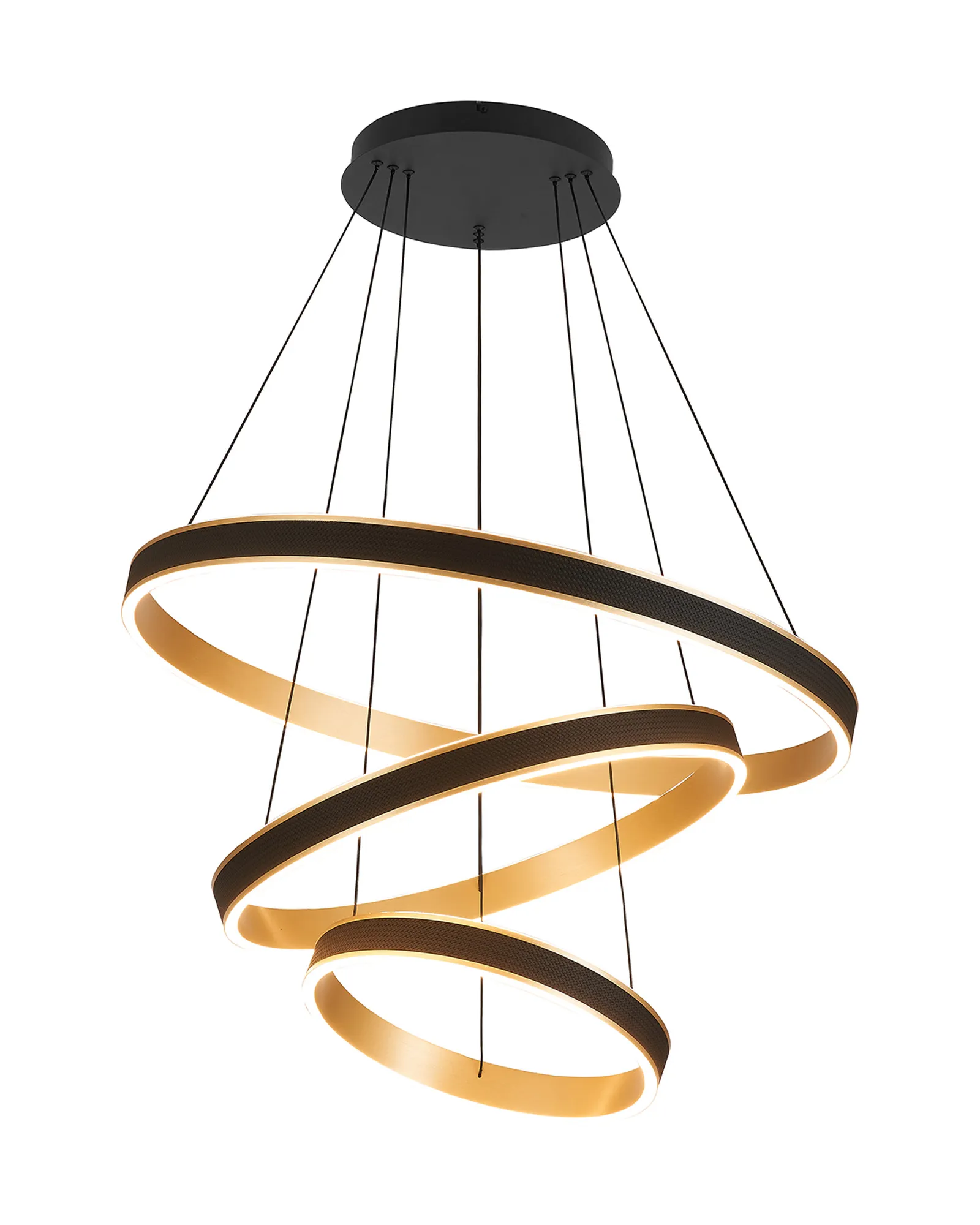The Vidor pendant light is a strikingly modern lighting solution that masterfully balances style and functionality. Featuring a sleek round design, it is available in a range of sizes-from 40cm to 1 metre, as well as a dramatic 3-tier option-making it suitable for both intimate home settings and sophisticated commercial spaces. A standout feature of Vidor is its tuneable colour temperature, allowing you to adjust the light from a warm 3000K to a crisp 6000K. This flexibility lets you tailor the ambiance to suit any mood or occasion, from relaxed evenings to focused work environments. The design is further elevated by a faux leather exterior, adding a unique tactile element while the choice of brushed gold or Antique Silver finishes lifts the design with a touch of luxury. A matching wall light is also available, enabling a cohesive and contemporary lighting scheme throughout your space. With its refined aesthetic and modern versatility, the Vidor range is as much a design statement