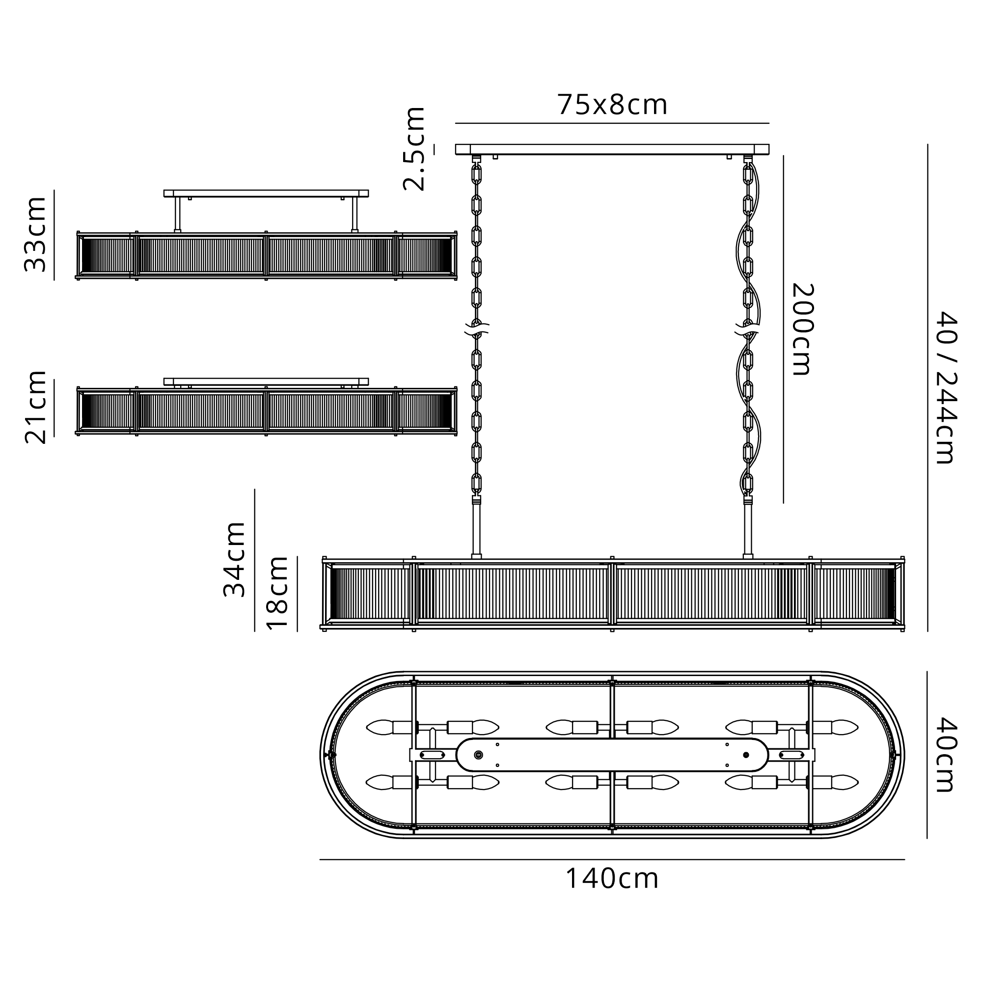 Baronissi 80cm Round Flush/Semi Ceiling/Pendant Convertible, 10 x E14, Black/Clear Glass