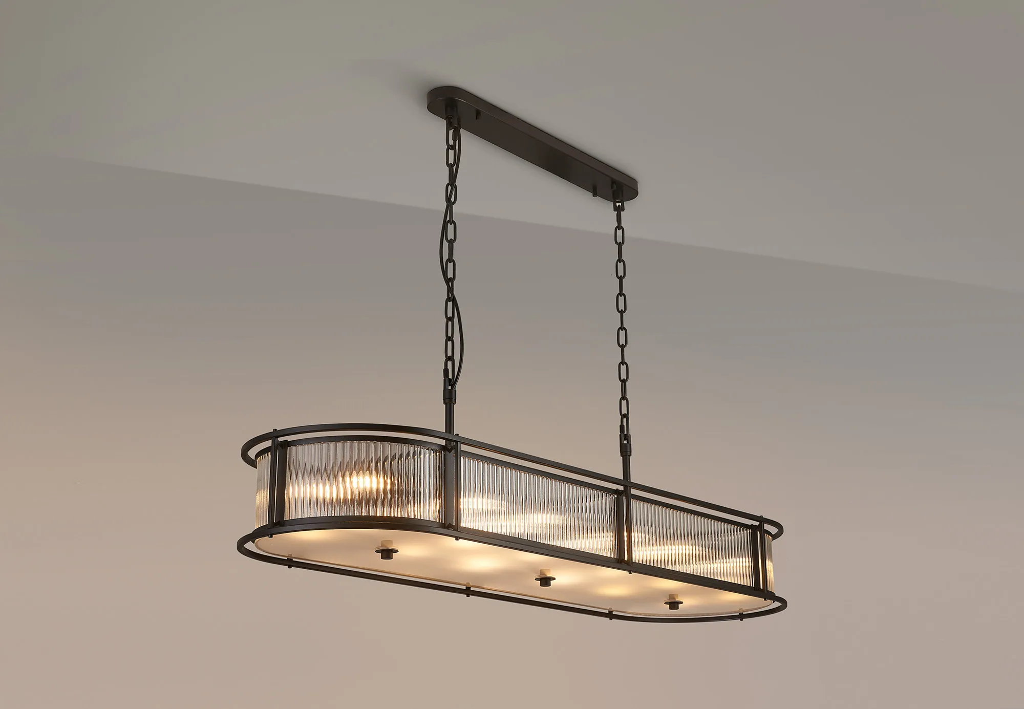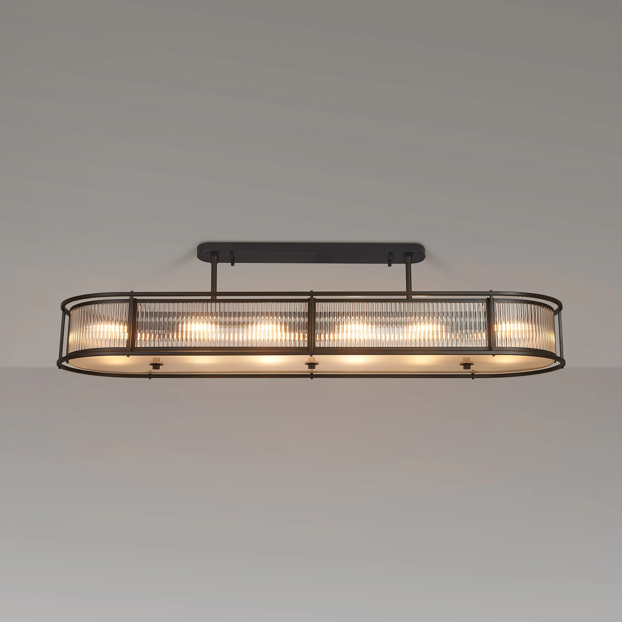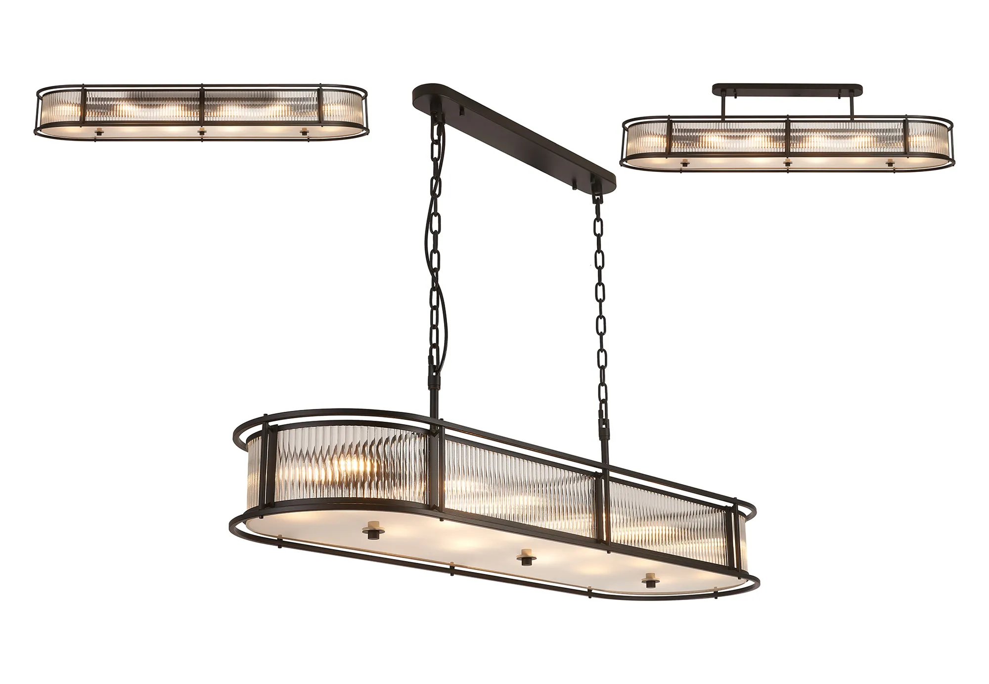 Baronissi presents a captivating collection of lantern-style lighting, featuring elegant round and generously sized oval pendants-each effortlessly convertible to semi-flush or flush mount. Available in four exquisite finishes, you can easily find the perfect hue to complement your décor. The ribbed glass panels add a distinctive texture and subtle visual intrigue, enhancing the character of every fixture. Whether you're seeking a modern vibe or a timeless classic look, the Baronissi collection offers versatile, stylish lighting options designed to elevate any interior. Complete the look with complementing wall, table or floor lamp.