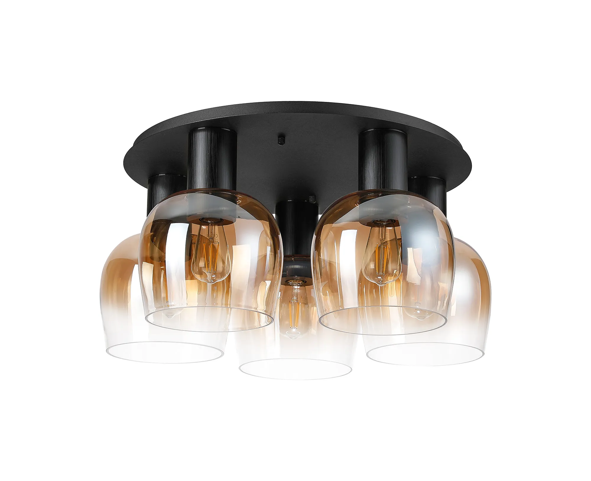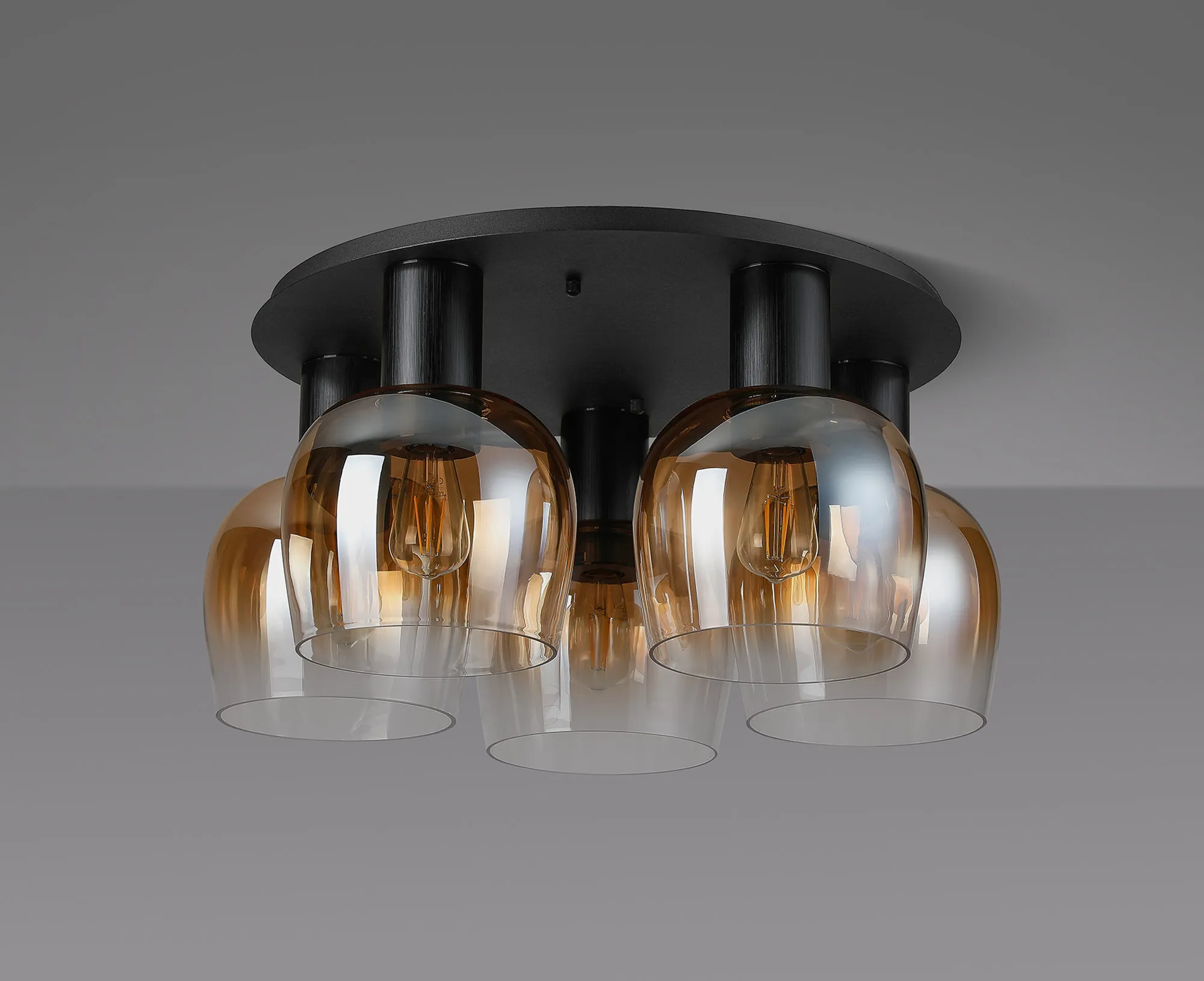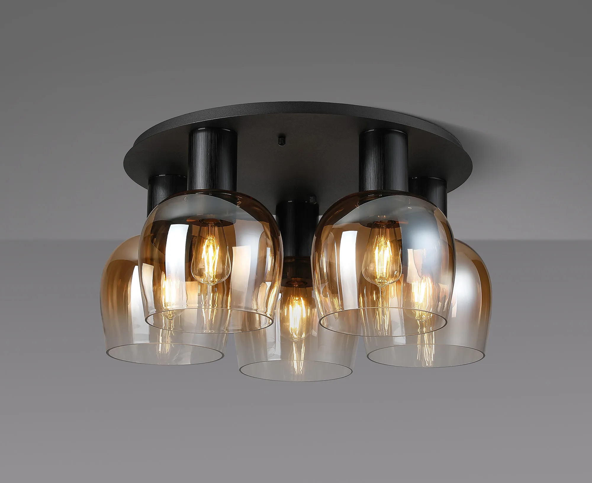 OTHER Albanella 75cm Round Ceiling Light, 5 x E27, Satin Black/Gun Metal/Amber Fade Wine Glass