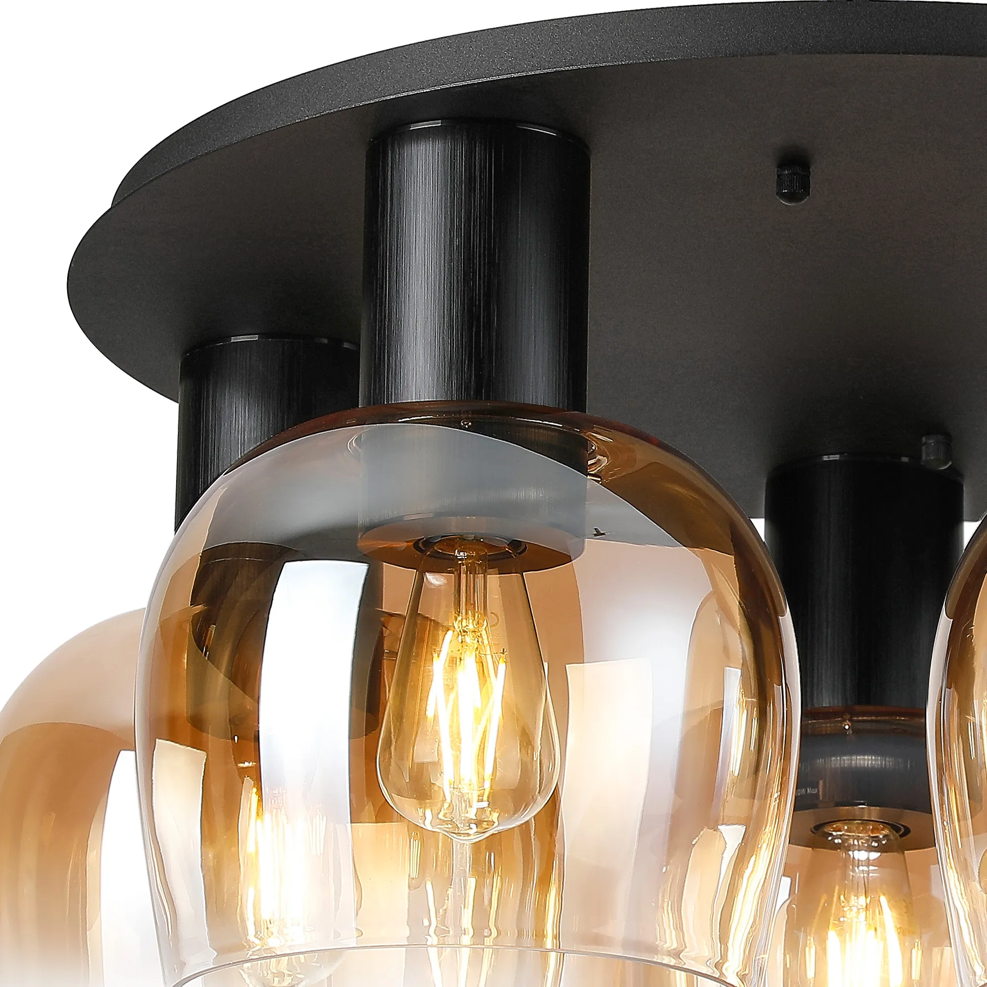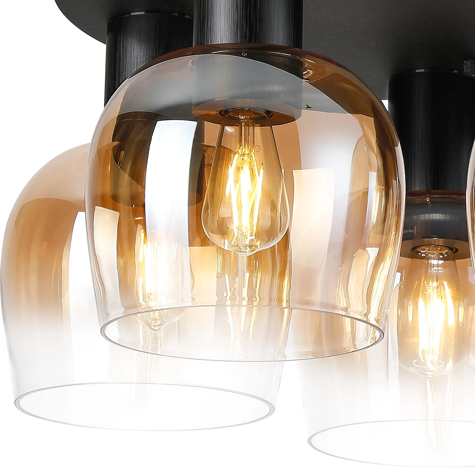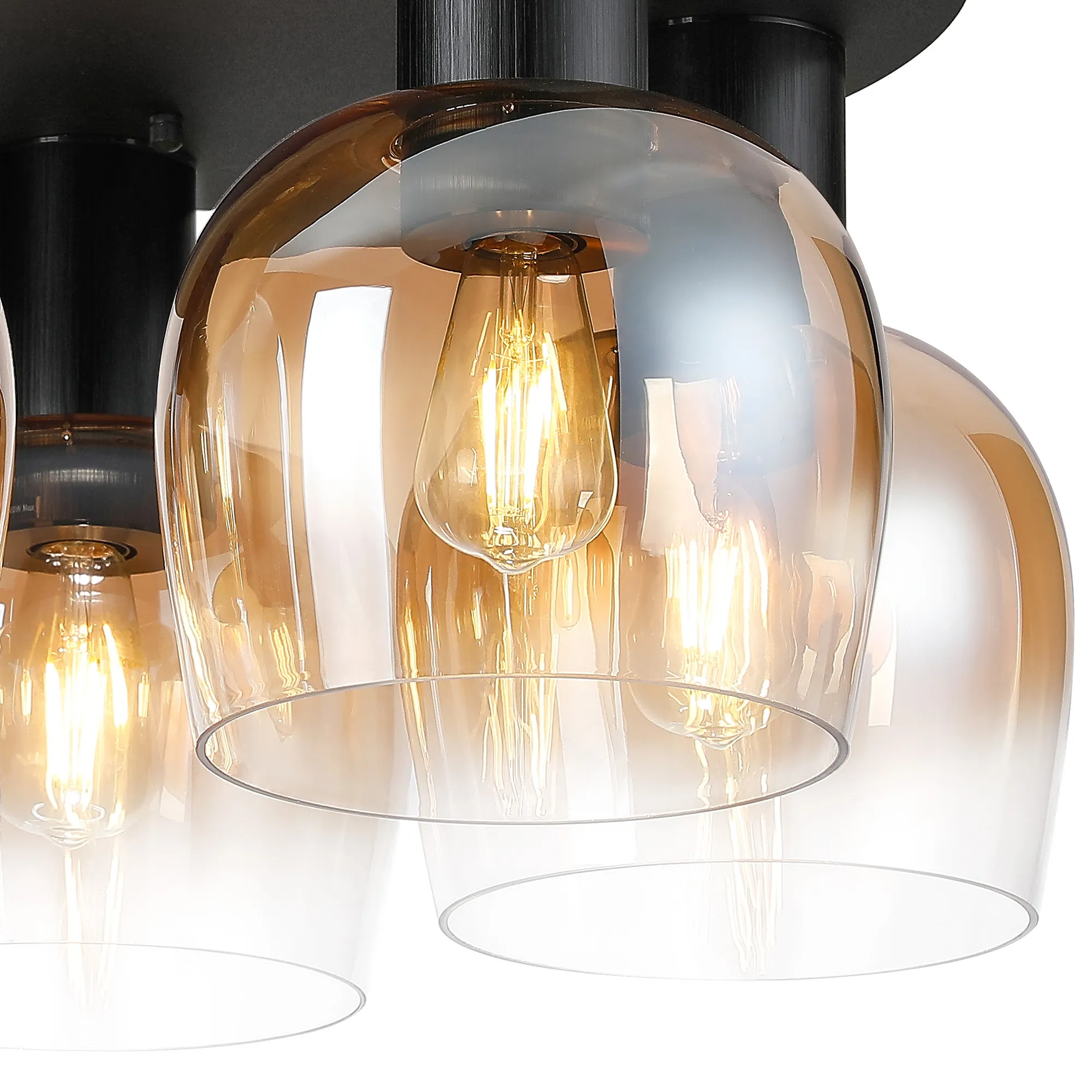 OTHER Albanella 75cm Round Ceiling Light, 5 x E27, Satin Black/Gun Metal/Amber Fade Wine Glass