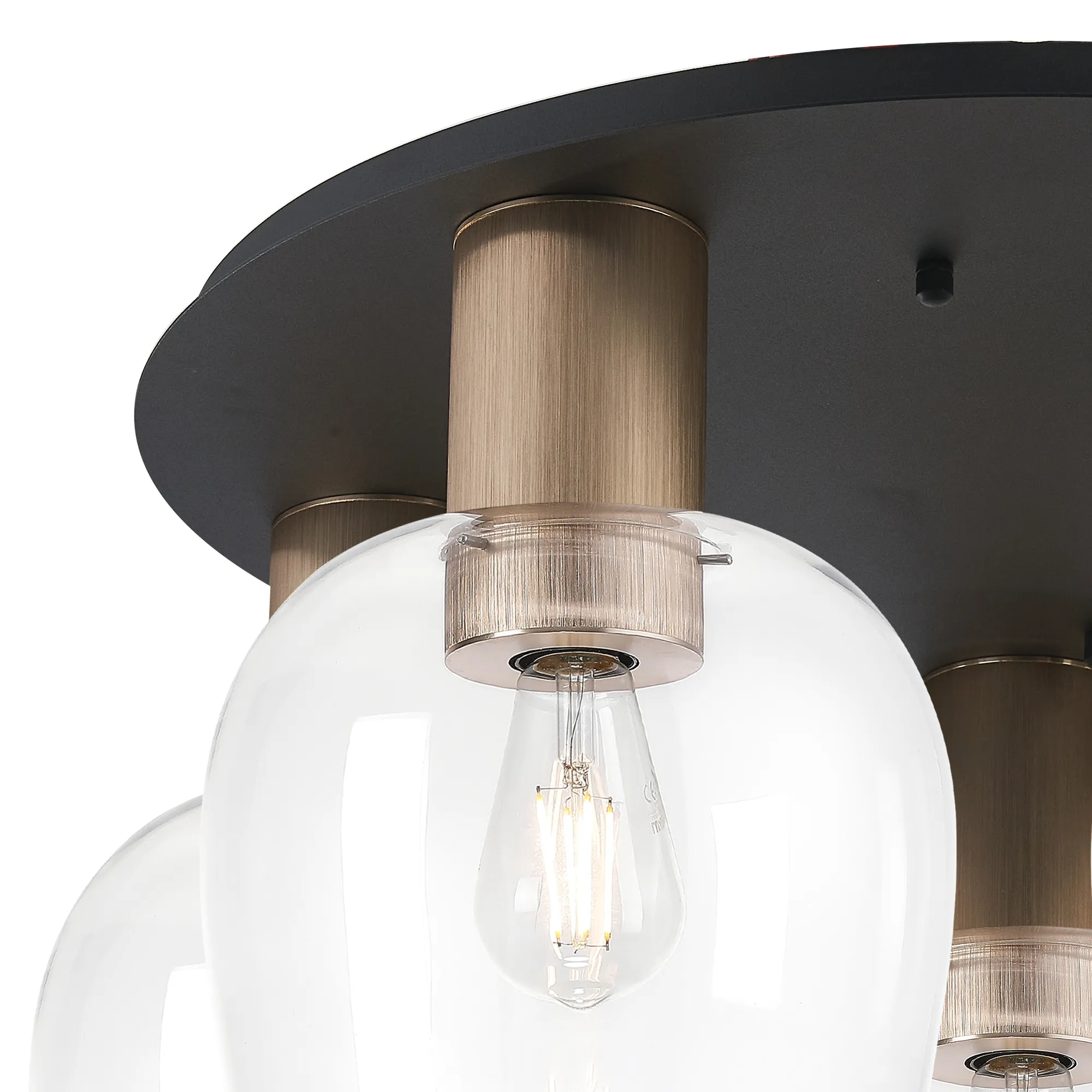OTHER Albanella 75cm Round Ceiling Light, 5 x E27, Satin Black/Gun Metal/Amber Fade Wine Glass