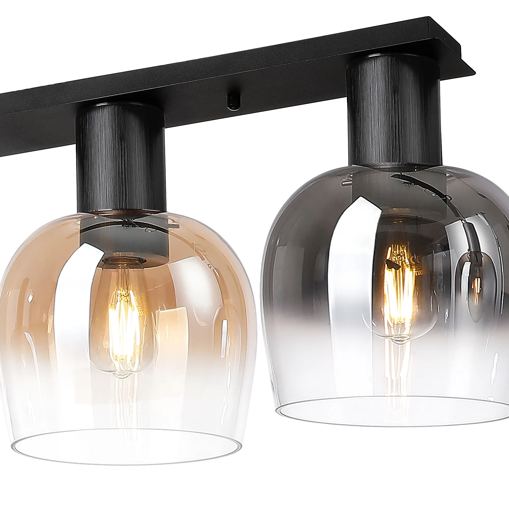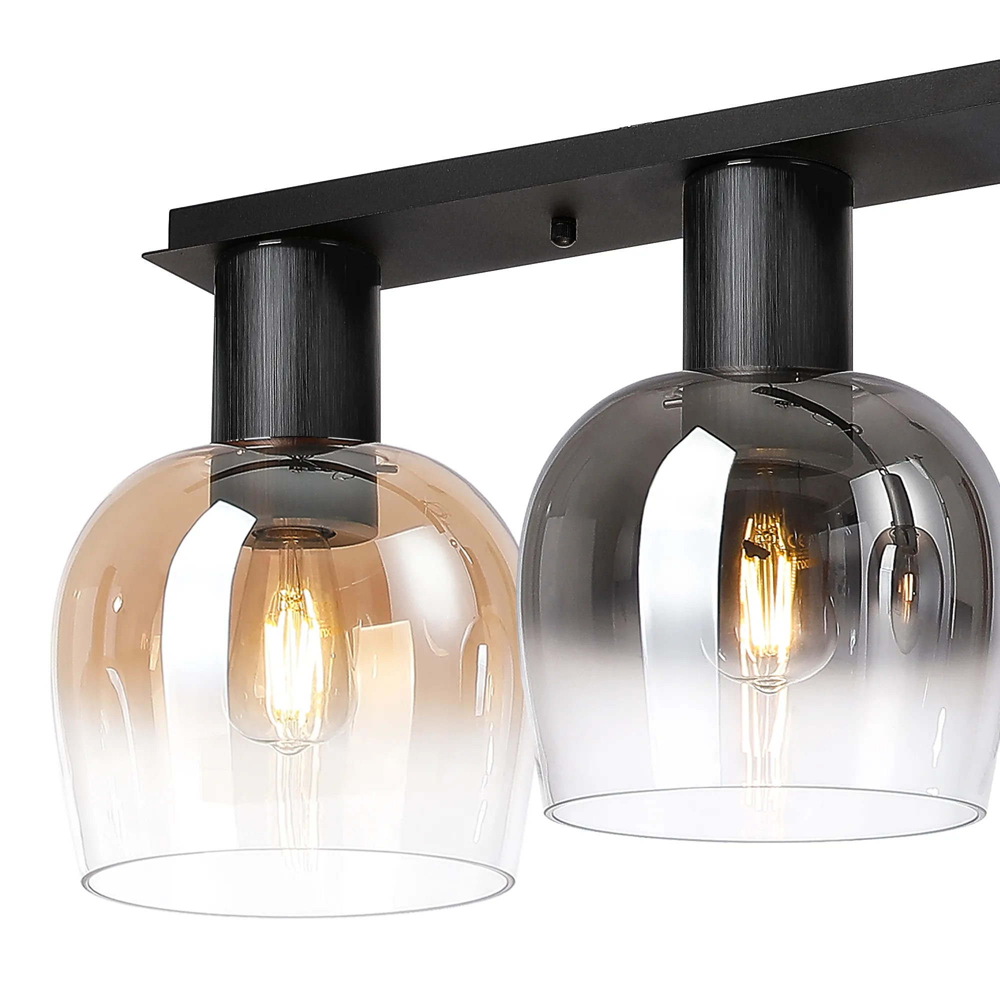 OTHER Albanella 105cm Linear Ceiling Light, 4 x E27, Satin Black/Amber Fade/Smoke Fade Wine Glass