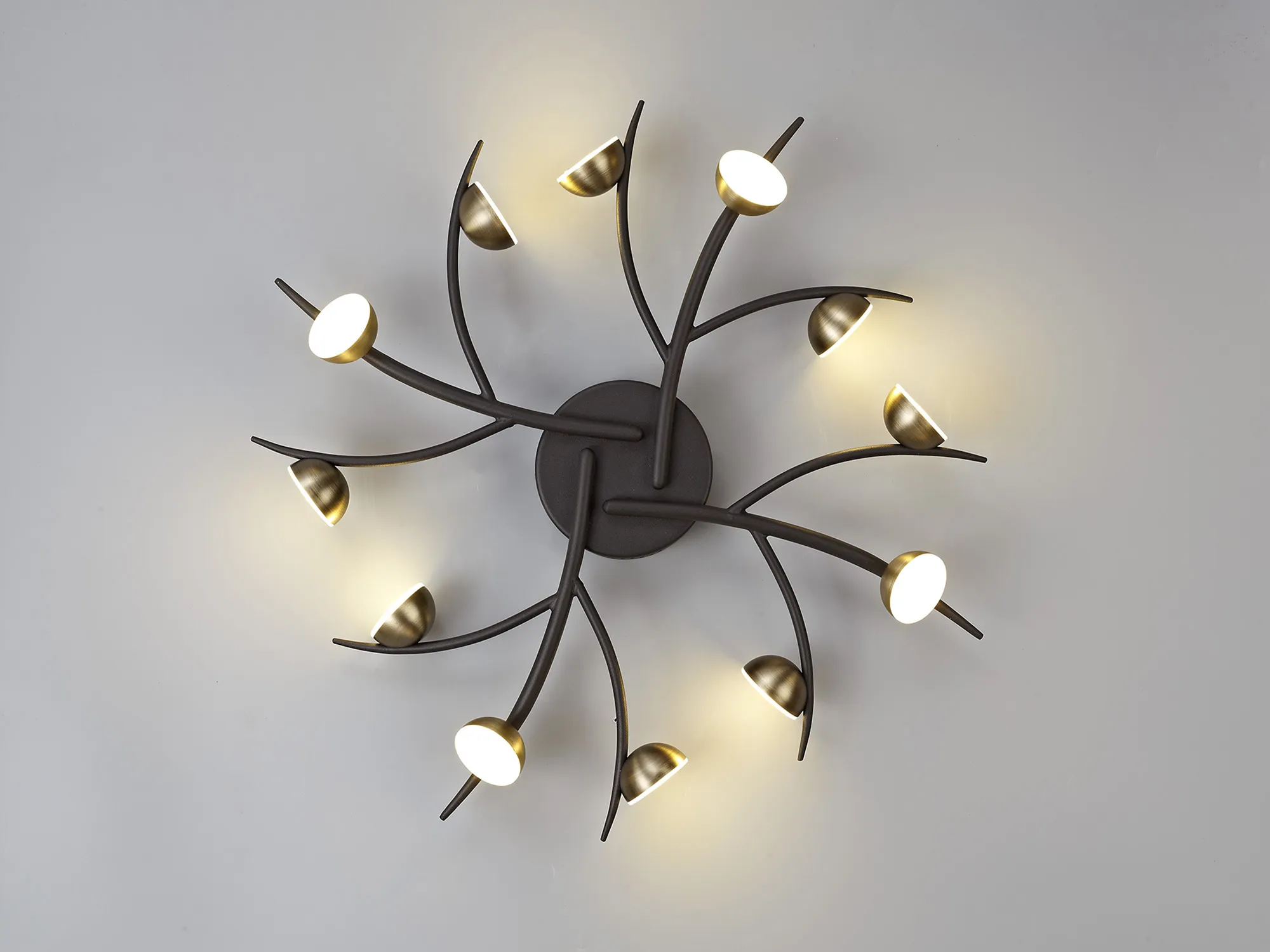 The harmoniously placed, round LED heads are distributed along the sleek fluidic lines to create an art nouveau concept bringing the essence of nature into your home. High quality LED technology partnered with the form of the fixtures and black/antique brass finish provides an idyllic balance. From flush ceiling lights, to a linear pendant and wall lights, Marittima offers a comprehensive range of lighting to suit your room setting.
