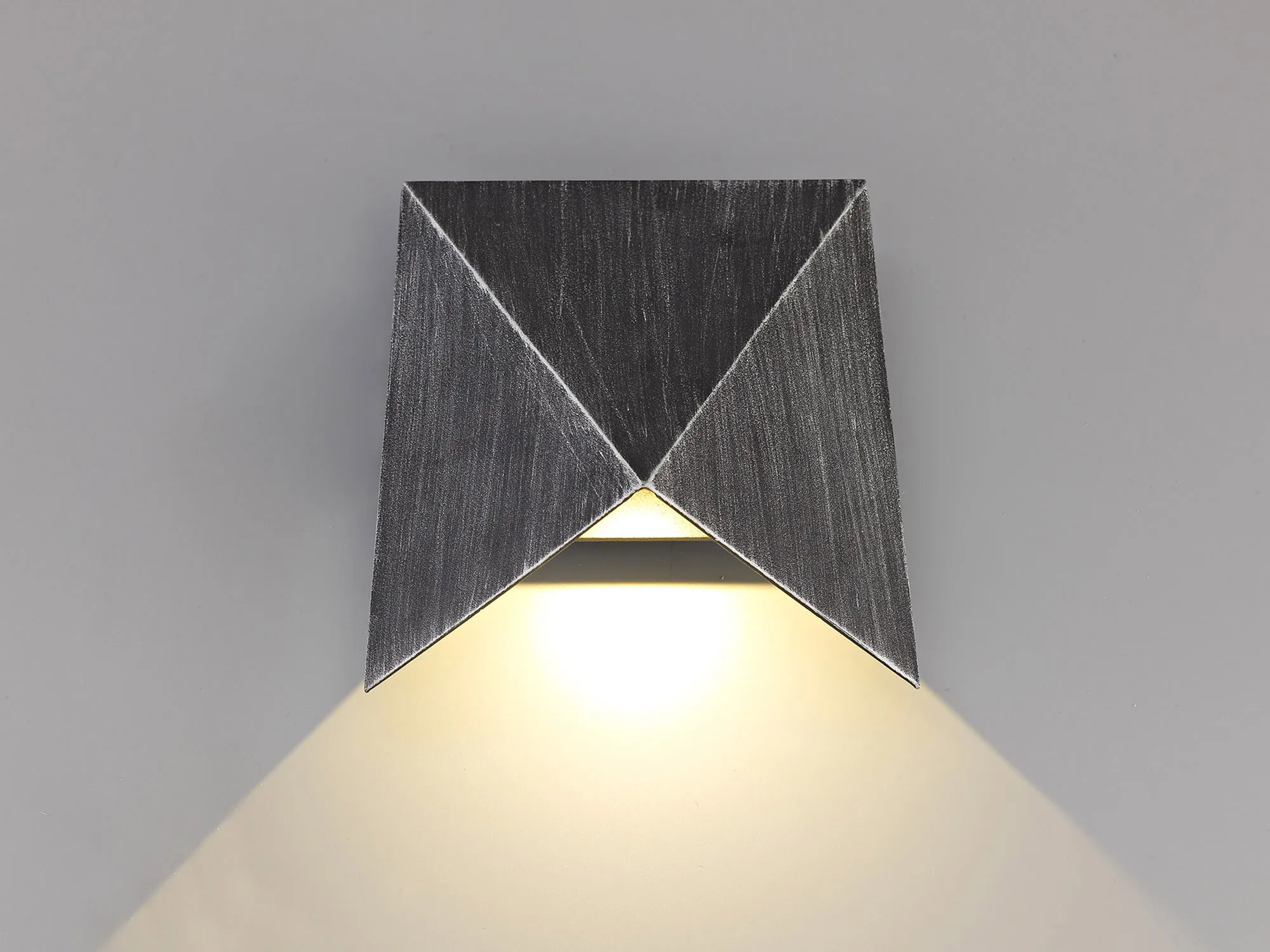 The clean lines of Filattiera's triangular shapes envelope the integral LEDs driving the 3000K light into a 45 degree projection. This outdoor wall light, available in two colours, creates an aged worn impression by using a raw application of coating which produces a brushed chalk like effect offering a rustic urban quality to your outdoor area.