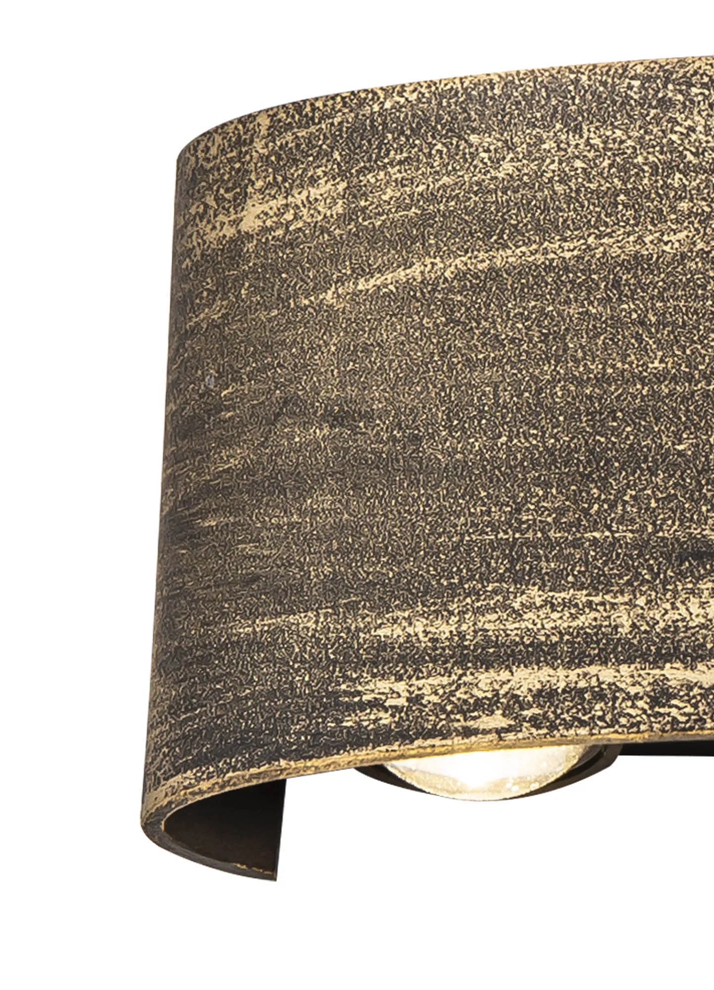 Massa's brushed gold/black colour finish gives a weathered, industrial quality to the sleek framework of this outdoor wall lamp. The slight projection of this fixture, from the surface to which it is applied, is a coveted aspect of an IP54 rated product ensuring an unobtrusive lighting solution either on pathways or even within a small bathroom.