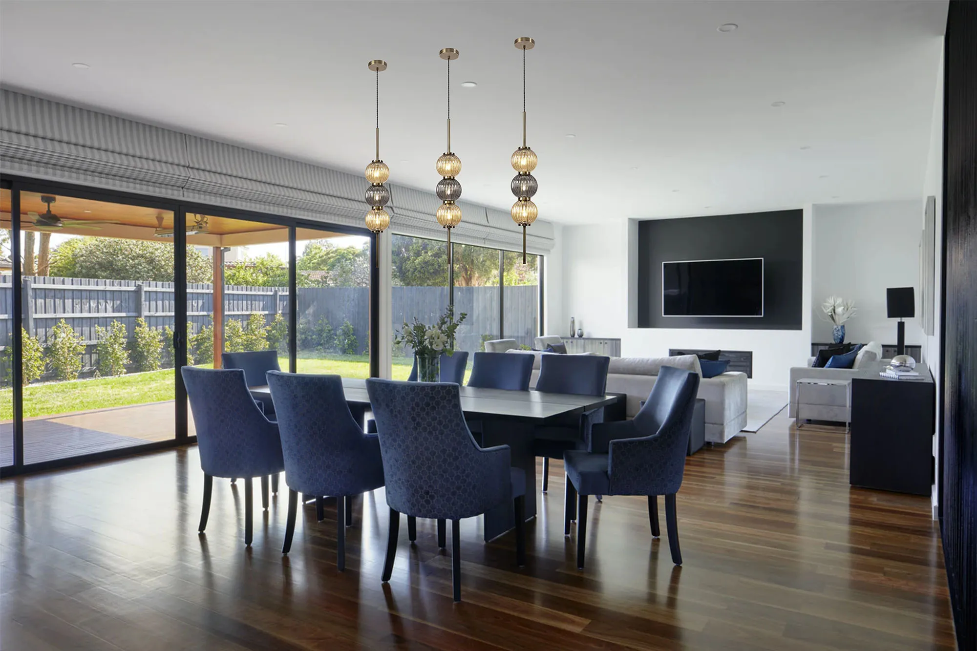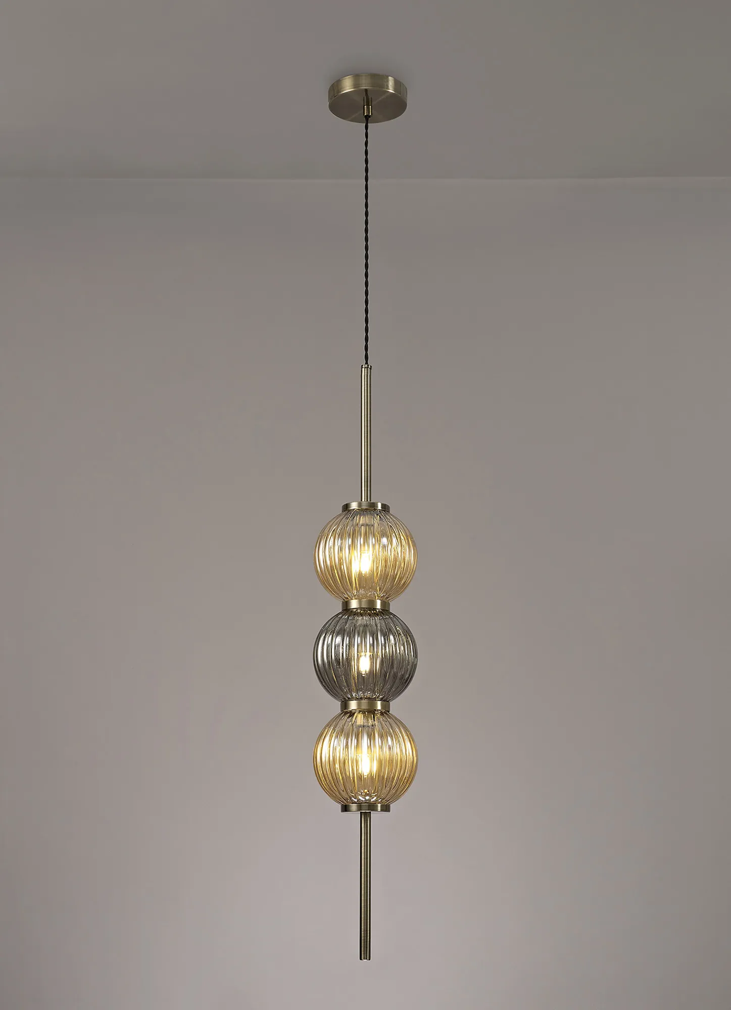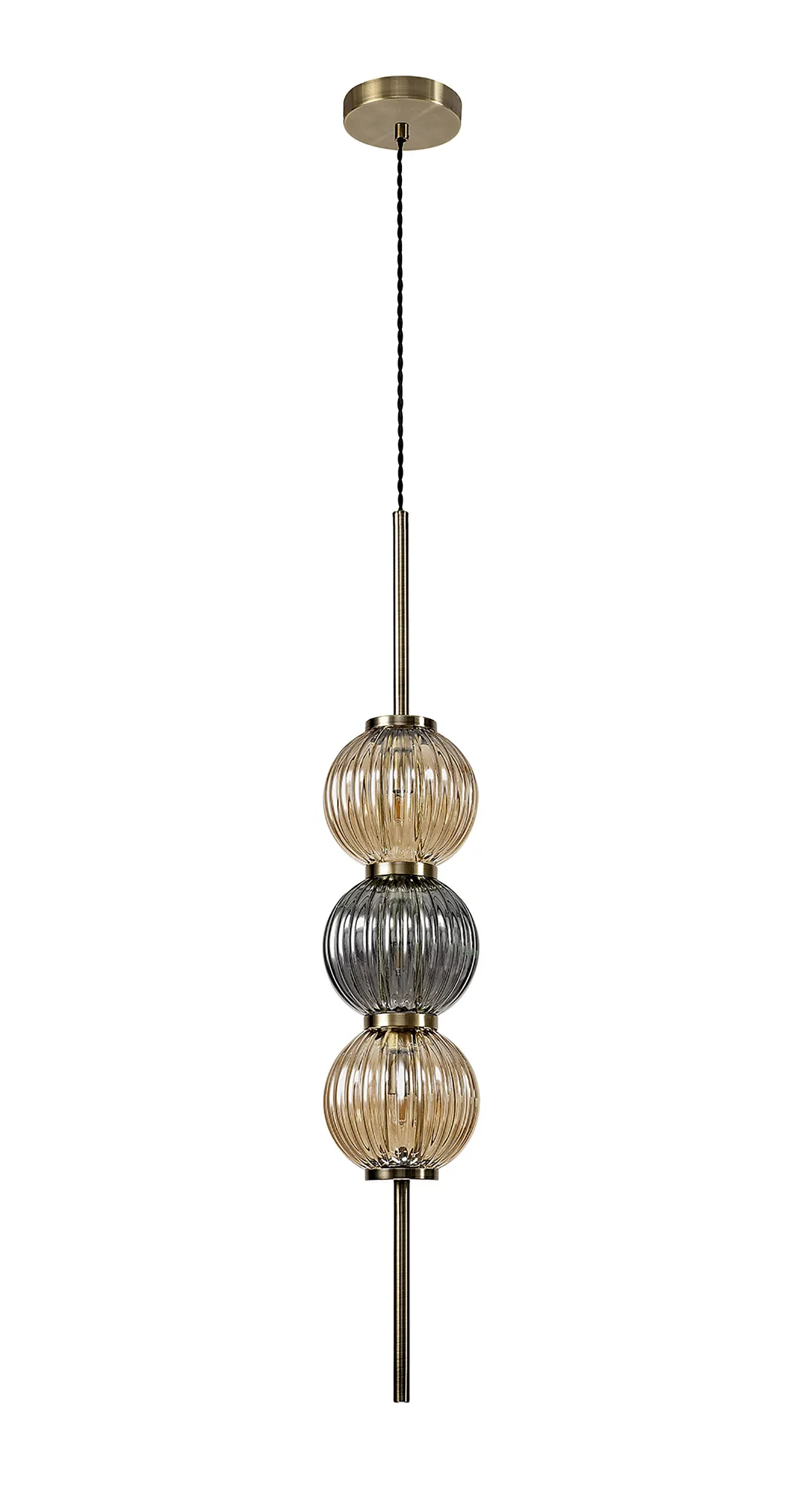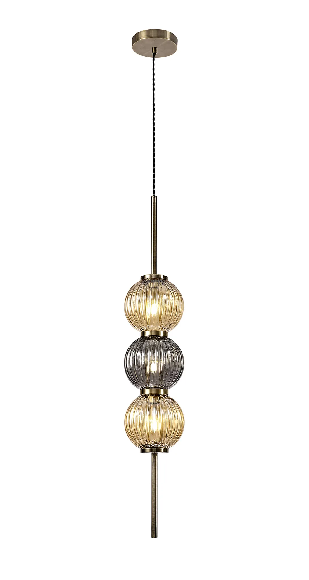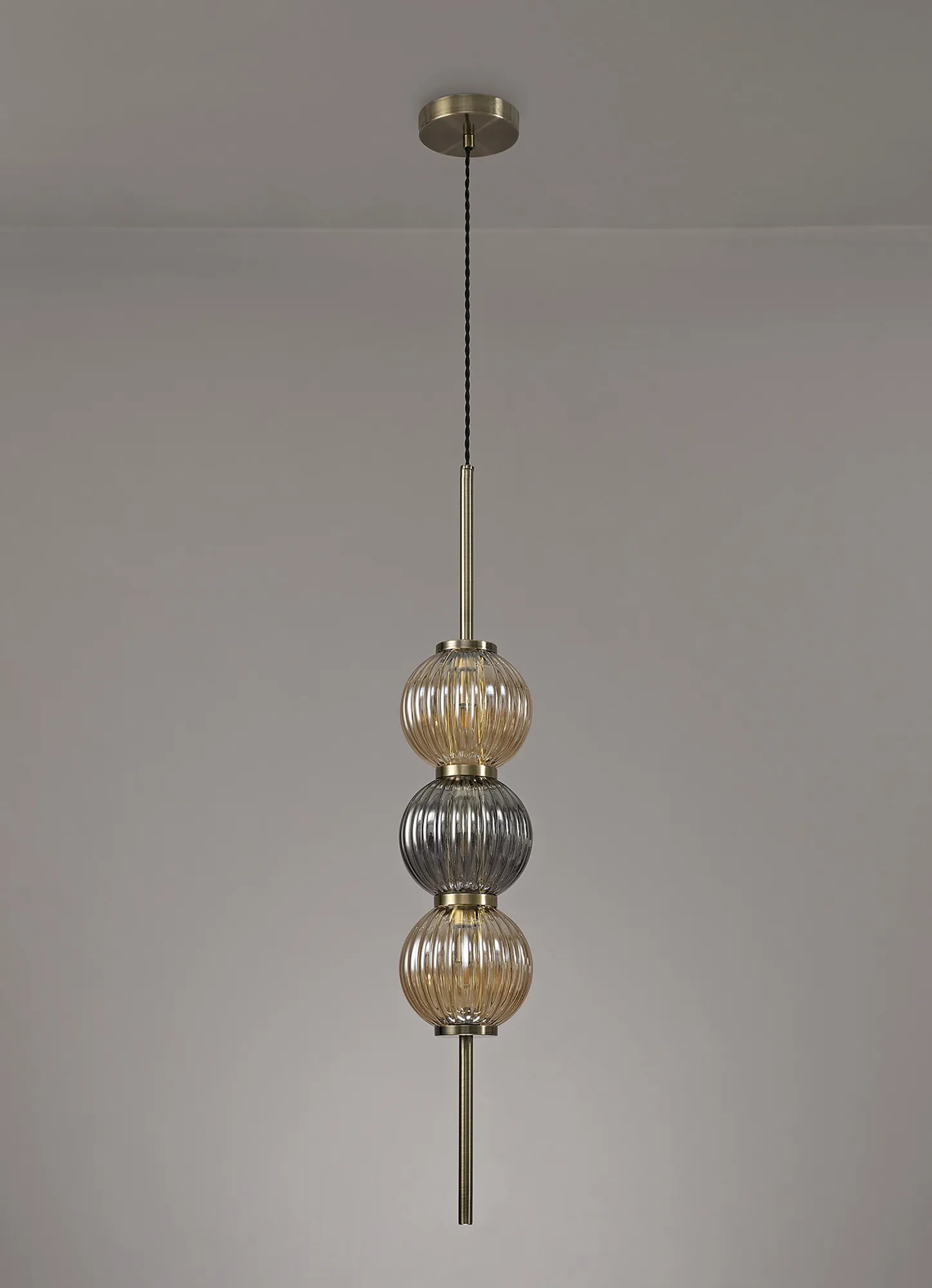 OTHER Fauglia Pendant, 3 x G9, Antique Brass/Smoked & Amber Glass
