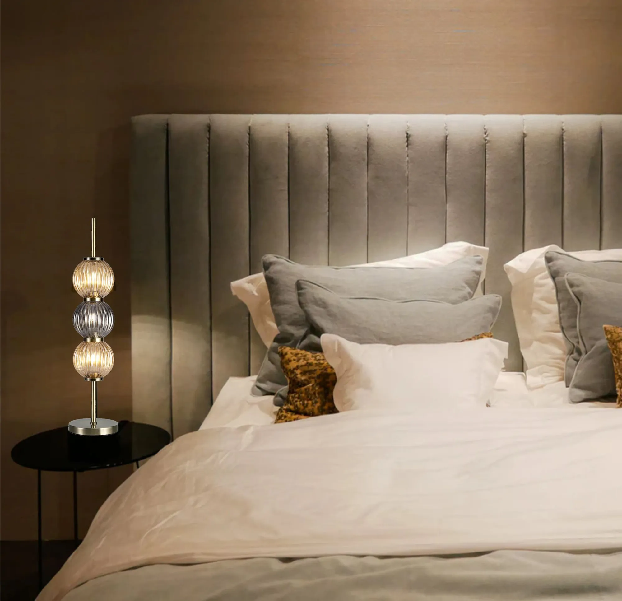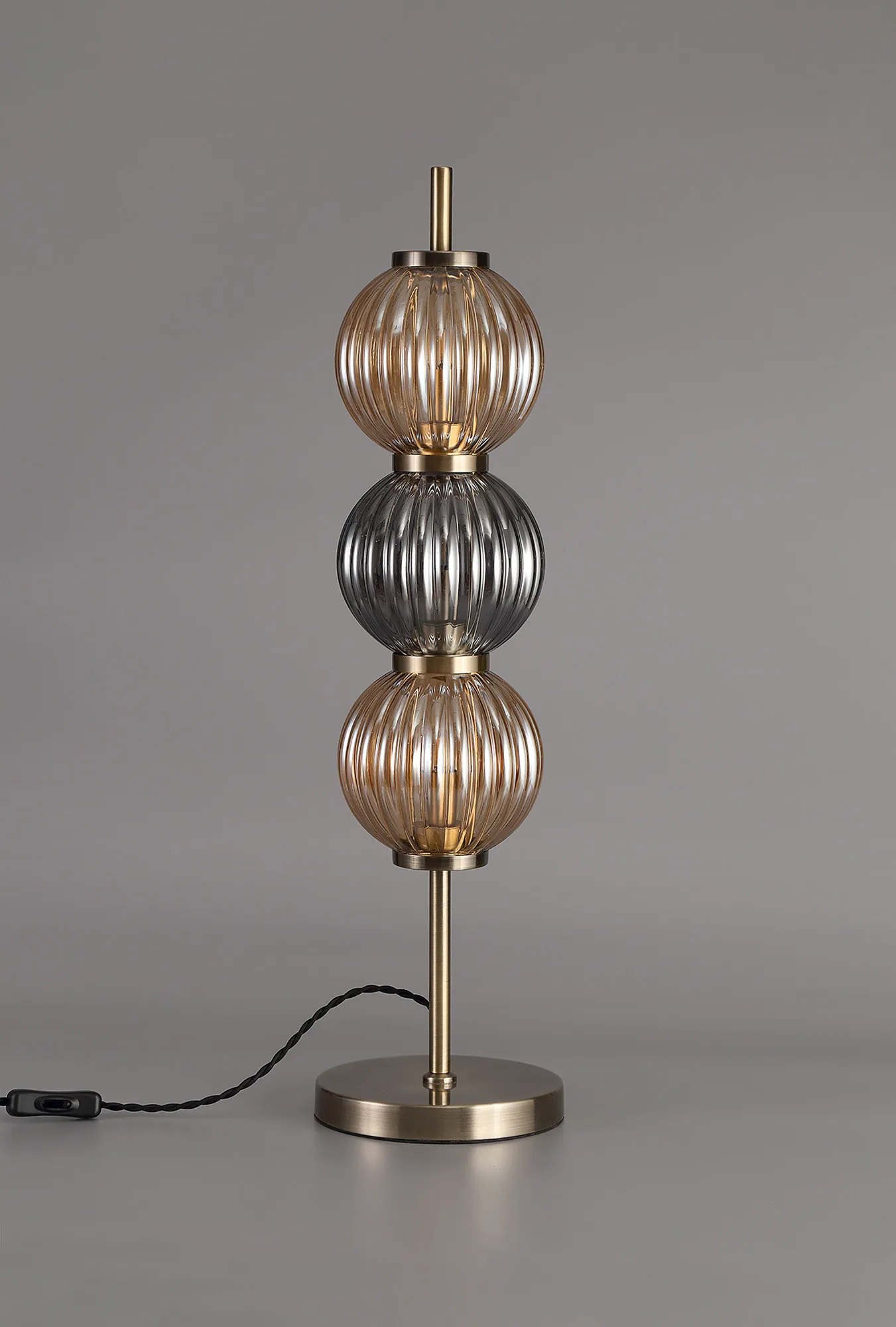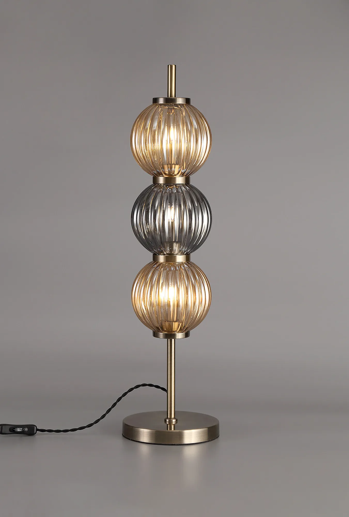 OTHER Fauglia Table Lamp, 3 x G9, Antique Brass/Smoked & Amber Glass
