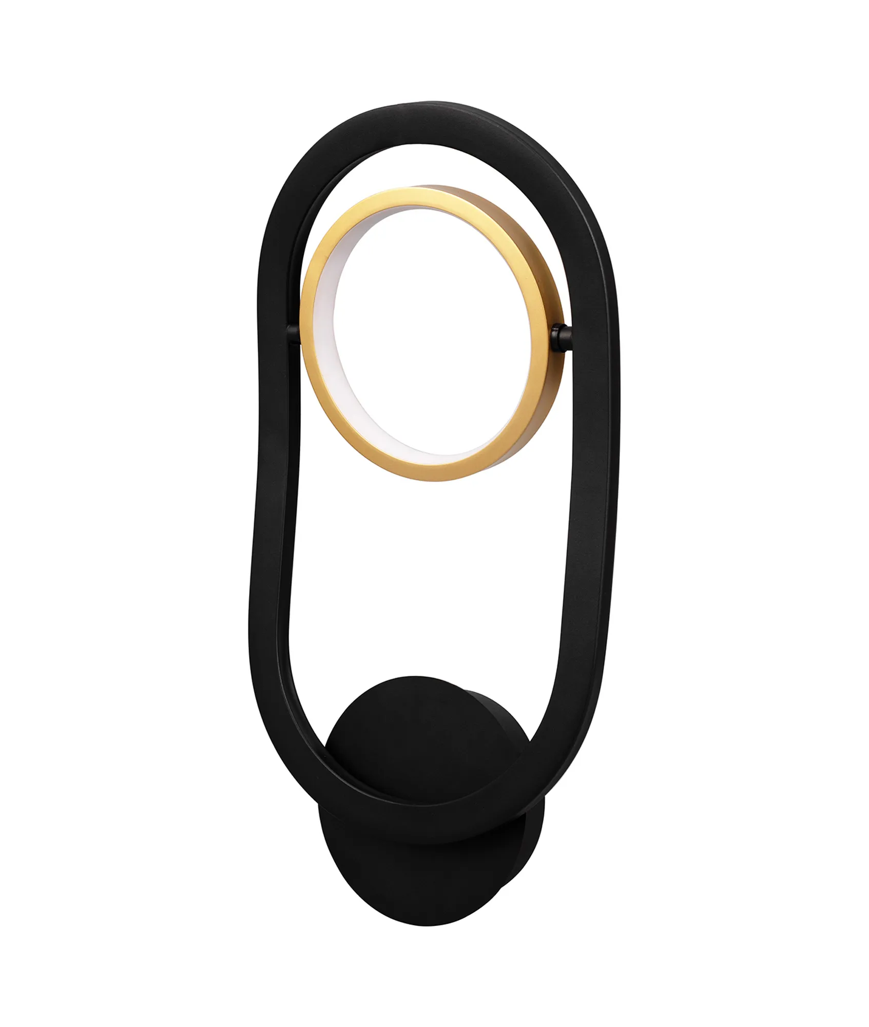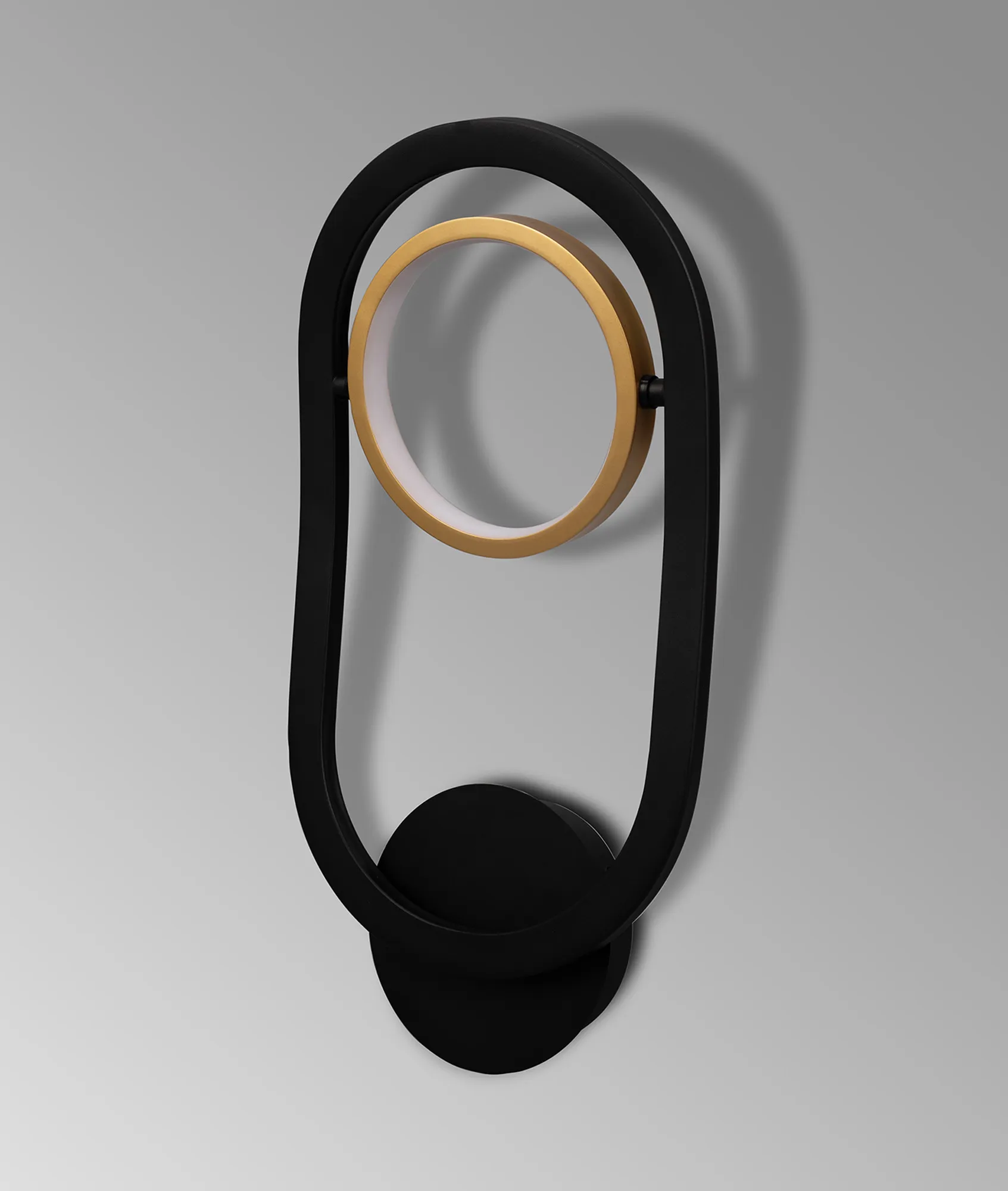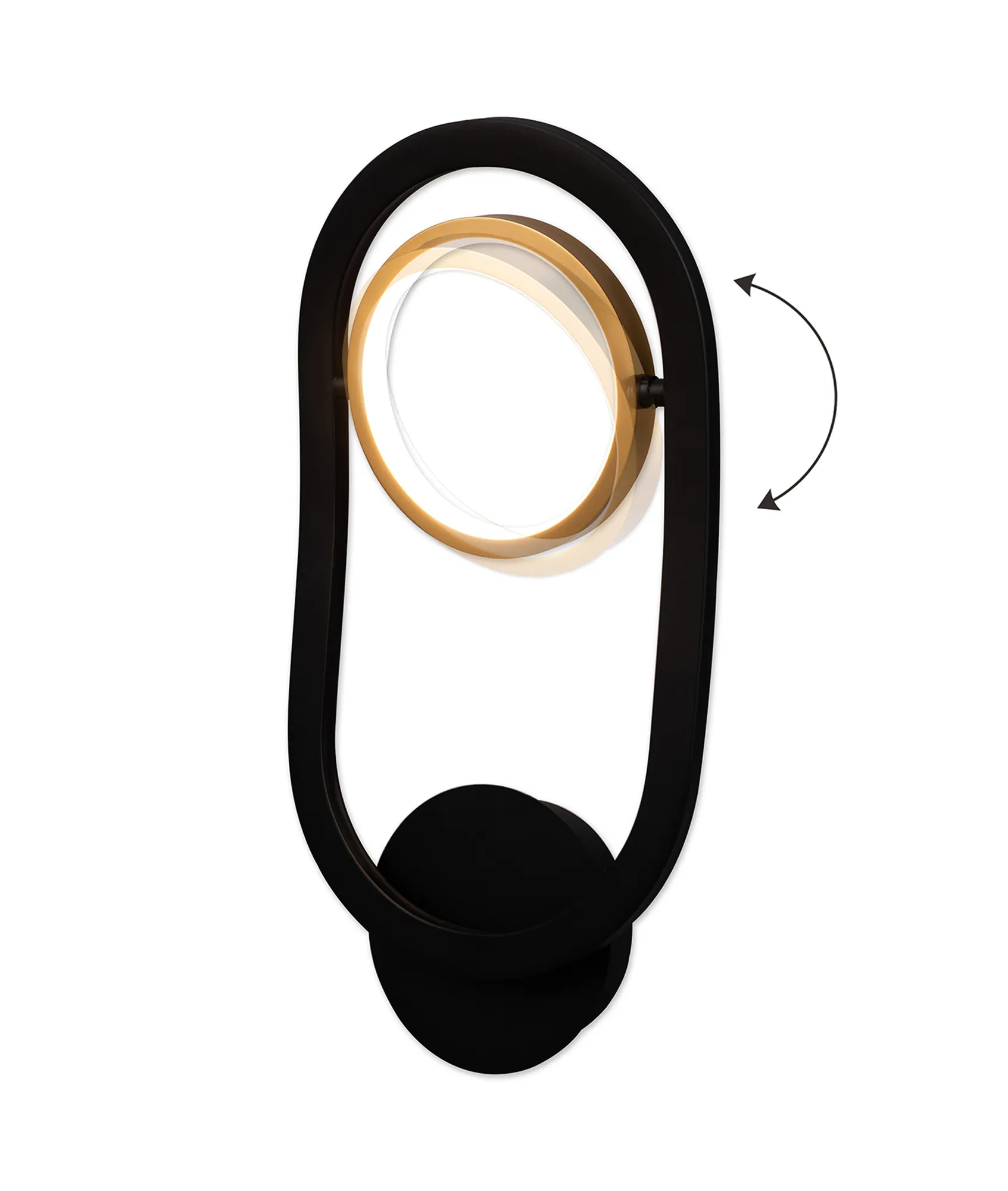 Gold rings encircling halos of integral LEDs are randomly angled within the contrasting satin black frames to create the impact of the Grimacco range. The ingenious positioning of each ring gives the illusion that they are floating within the orbit of the dark outer frame construct. A fully comprehensive range, Grimacco's designer features can be used as lone items or as a family bringing character to their room setting.