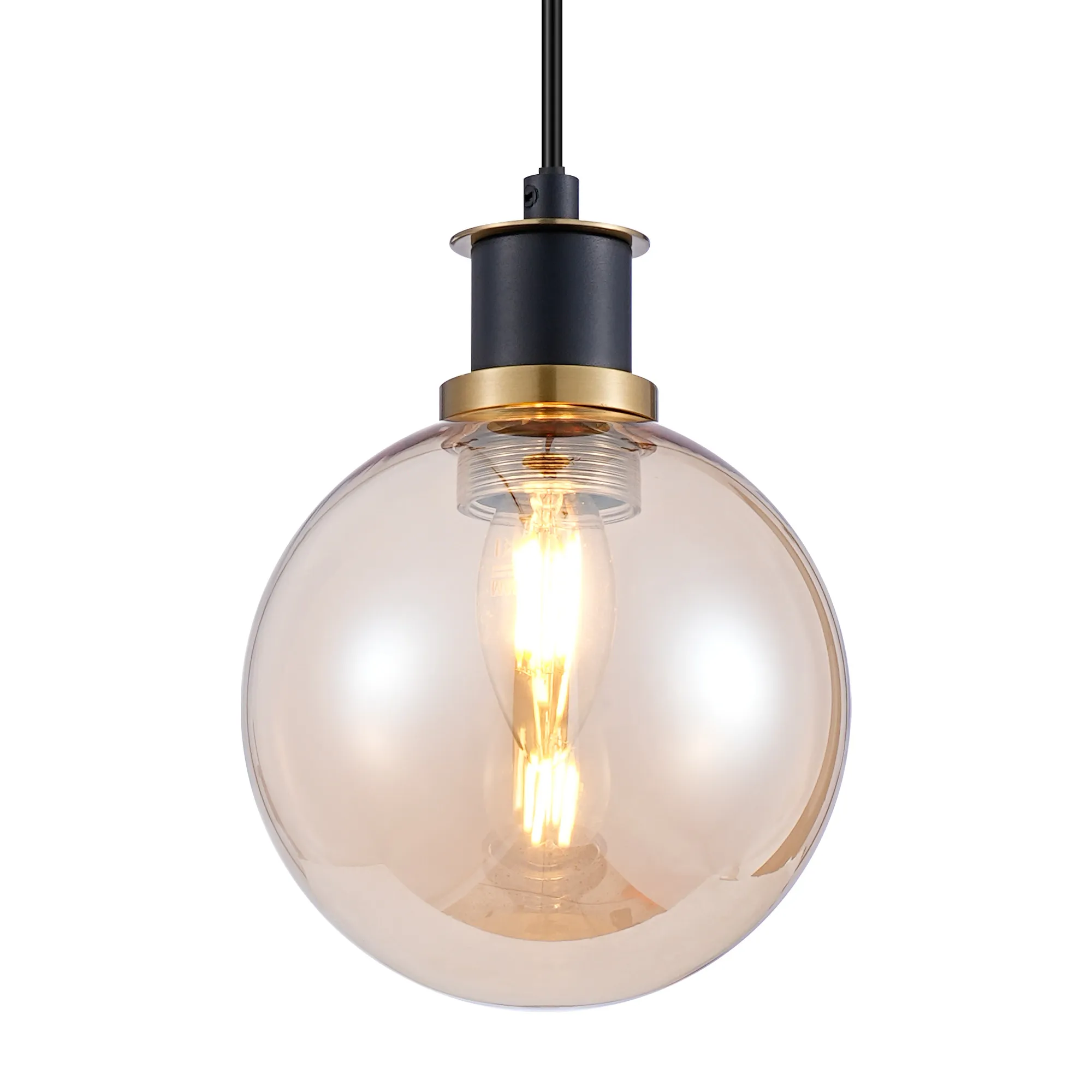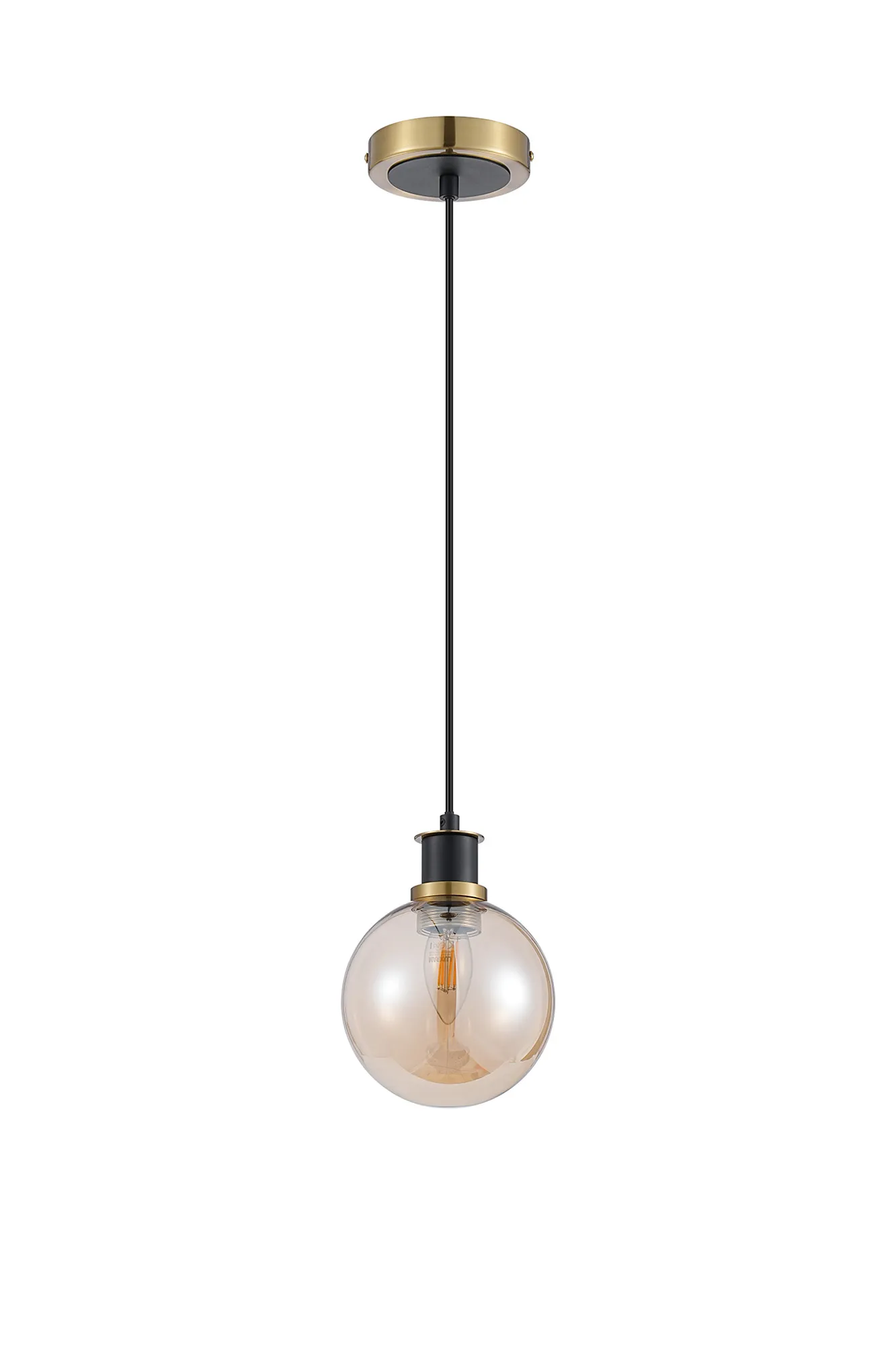 OTHER Castana 1.3m Pendant, 1 x E14 With 15cm Round Glass Shade, Brass, Amber Plated & Satin Black