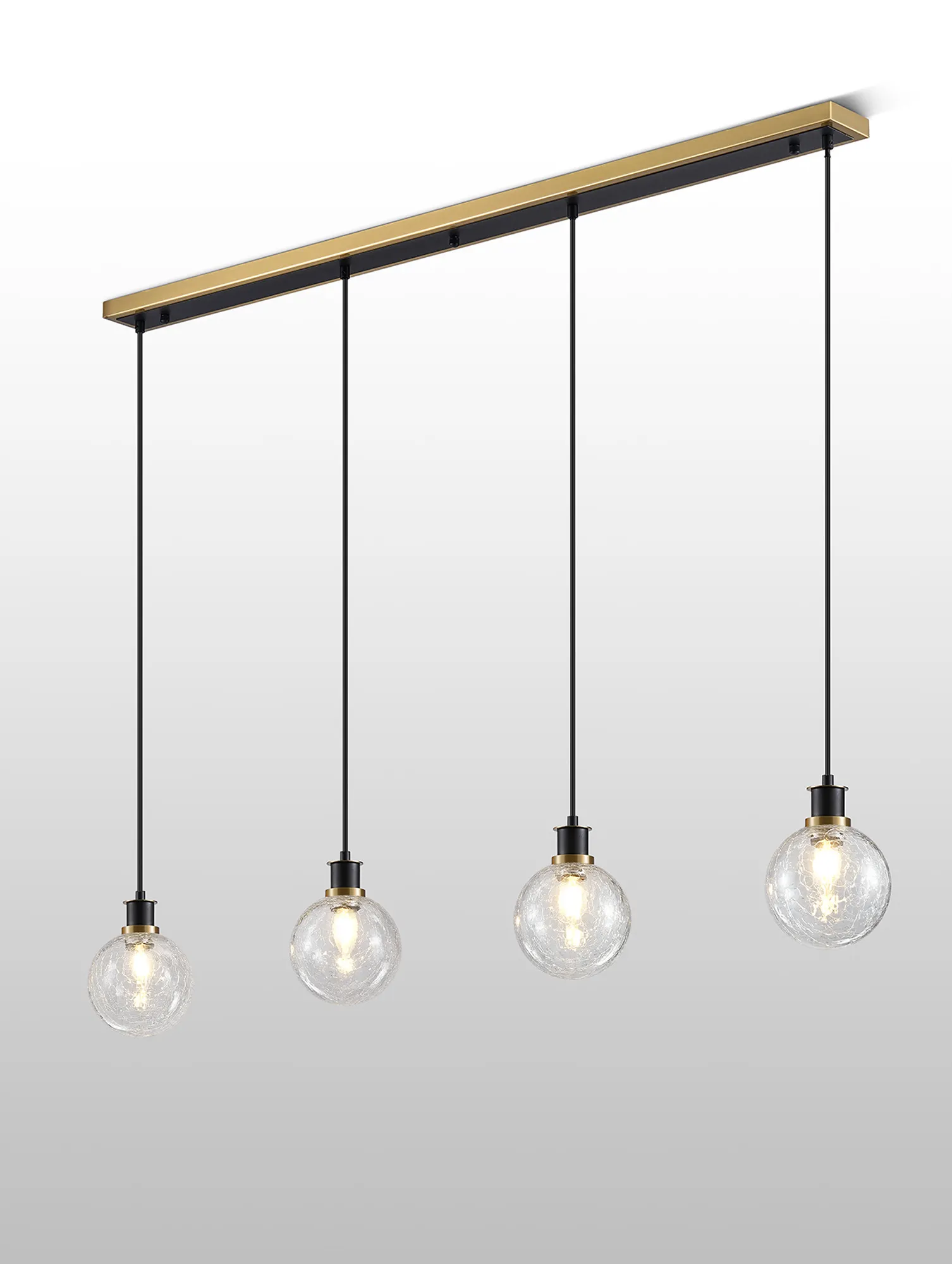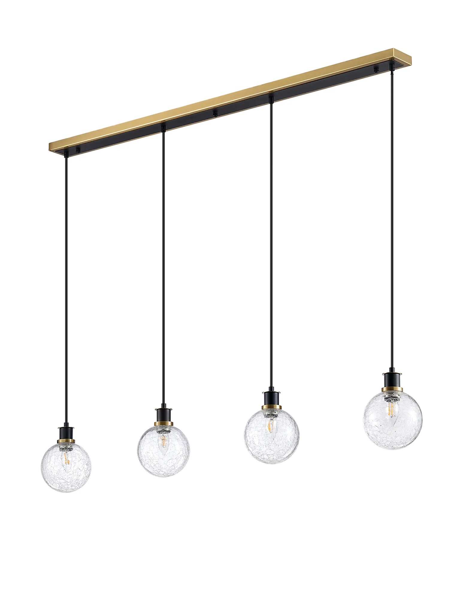 Castana Table Lamp Touch Switch, 3 Light E14, With 15cm Round Crackled Glass Shade Brass, Clear, Satin Black