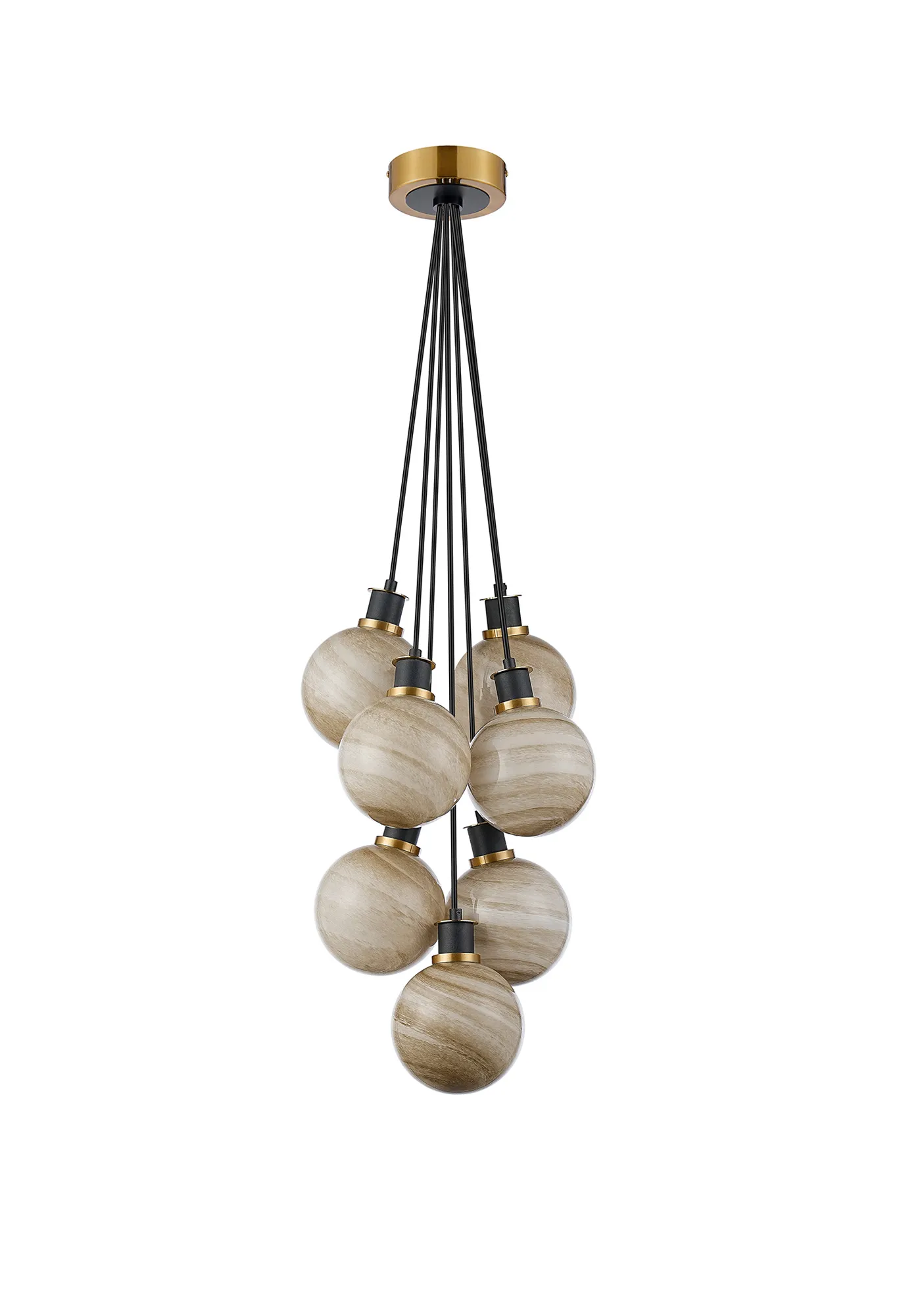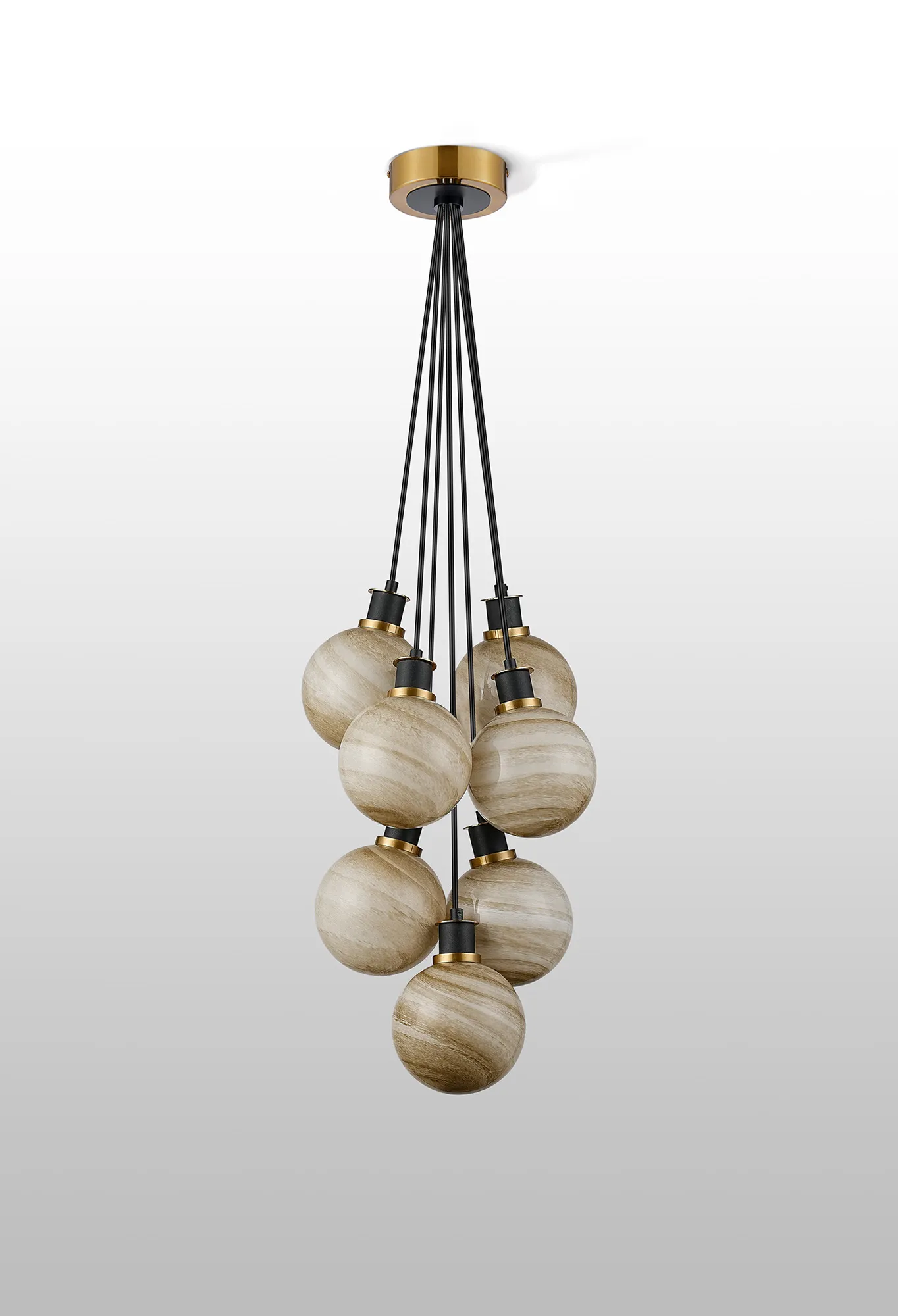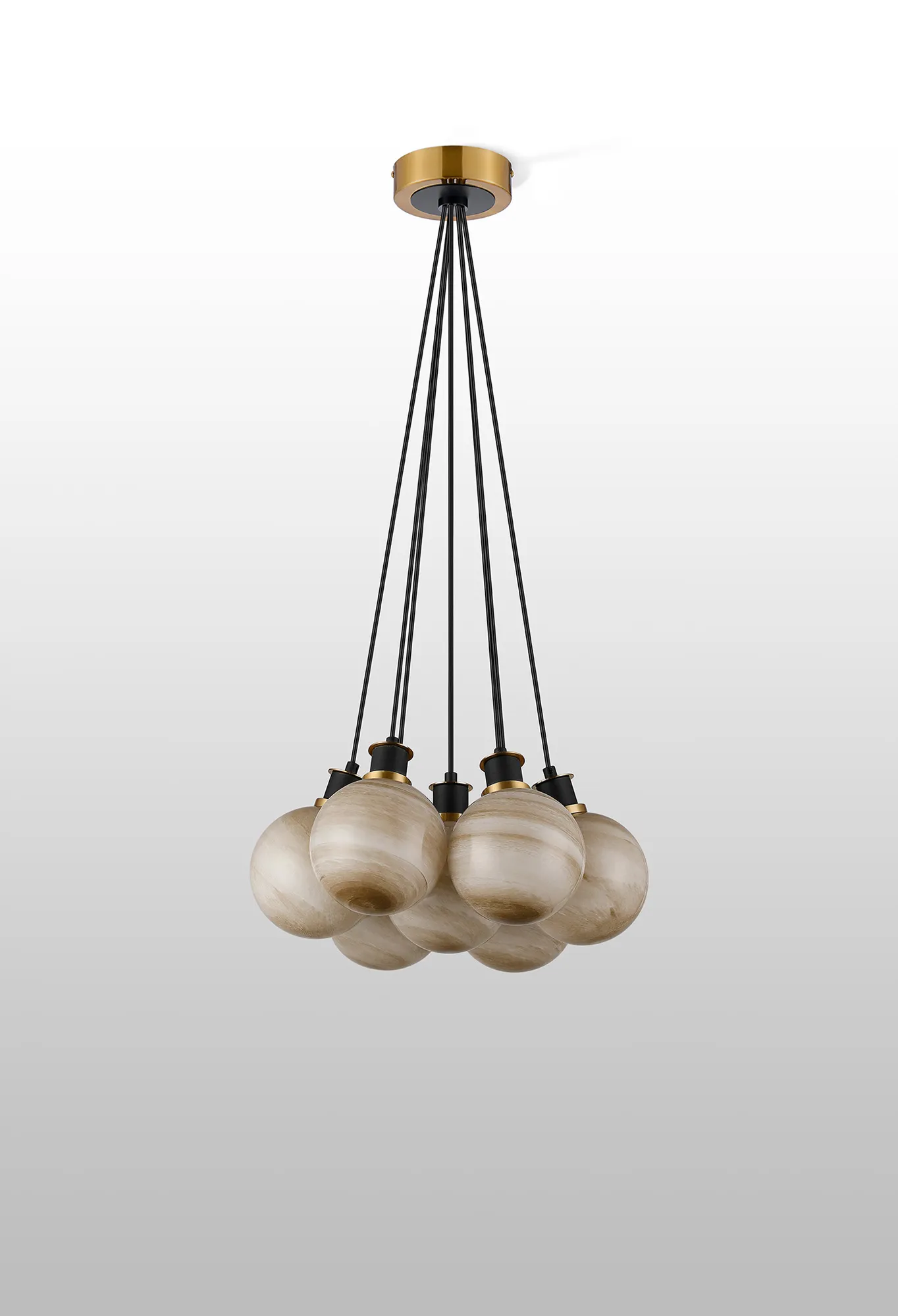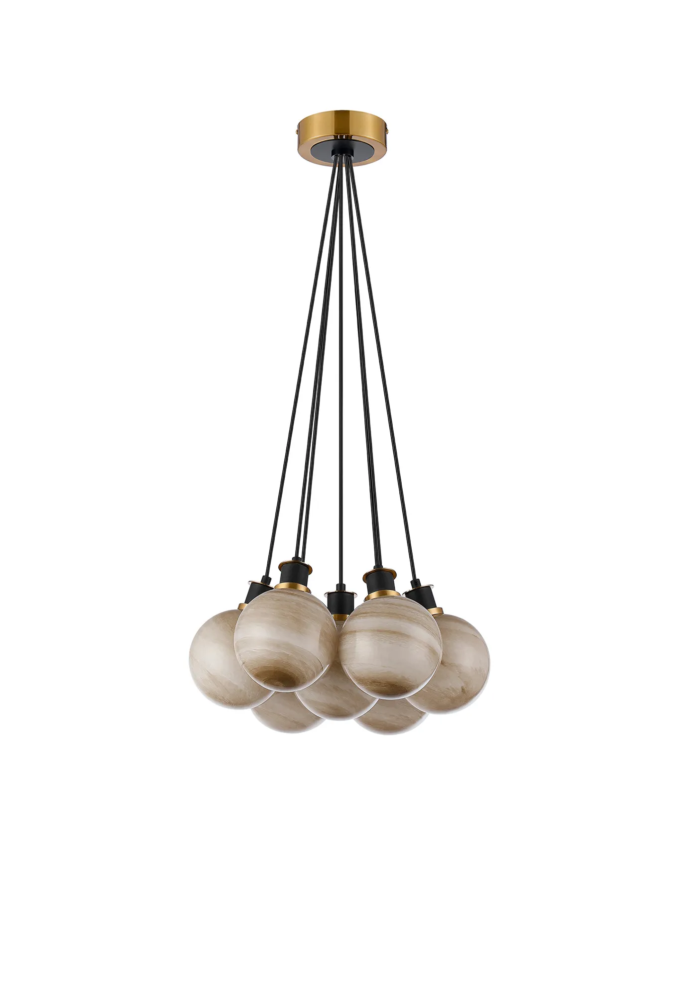 Castana Switched Wall Light, 1 Light E14 With 15cm Round Dark Beige Marble Effect Glass Shade, Brass & Satin Black Framework