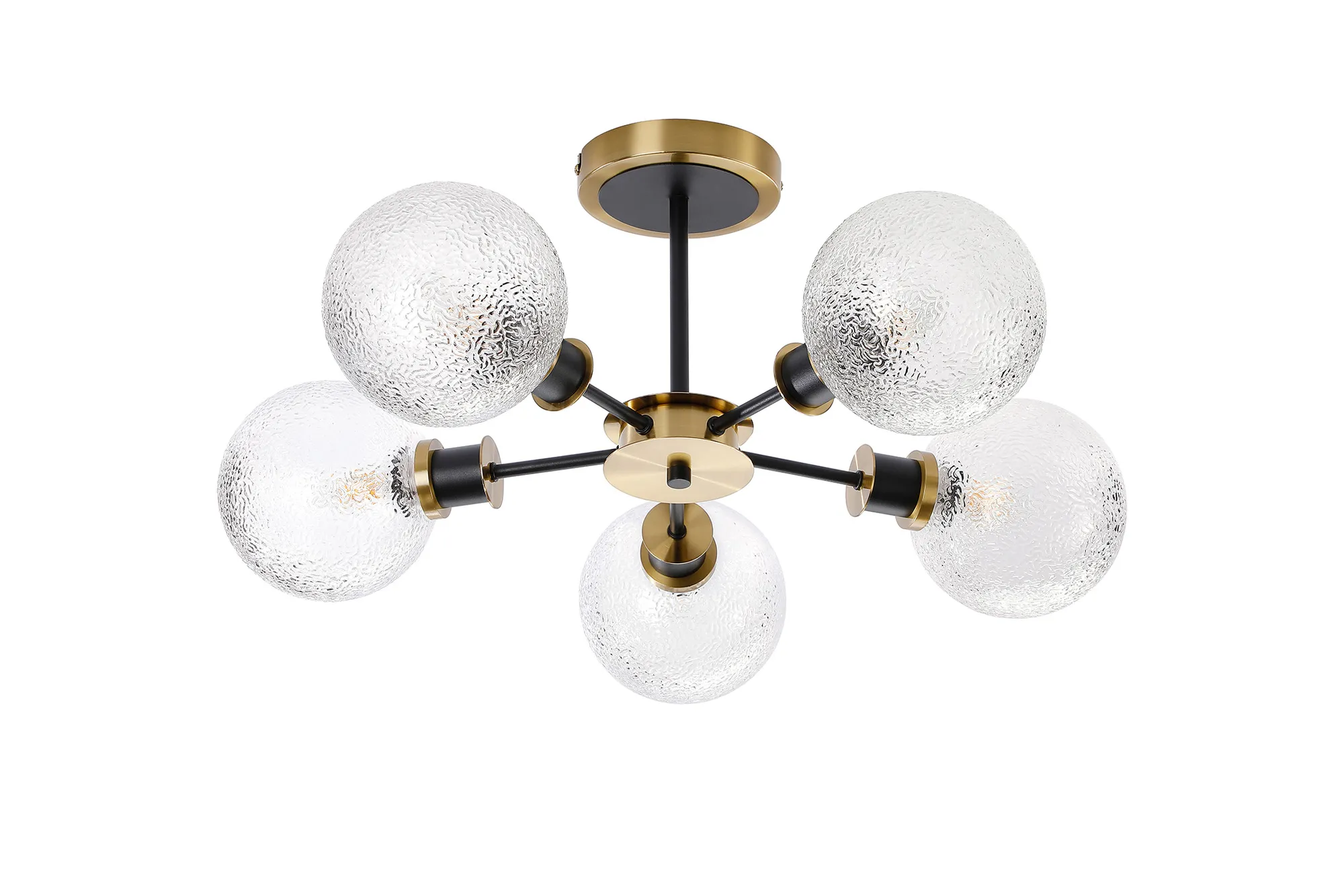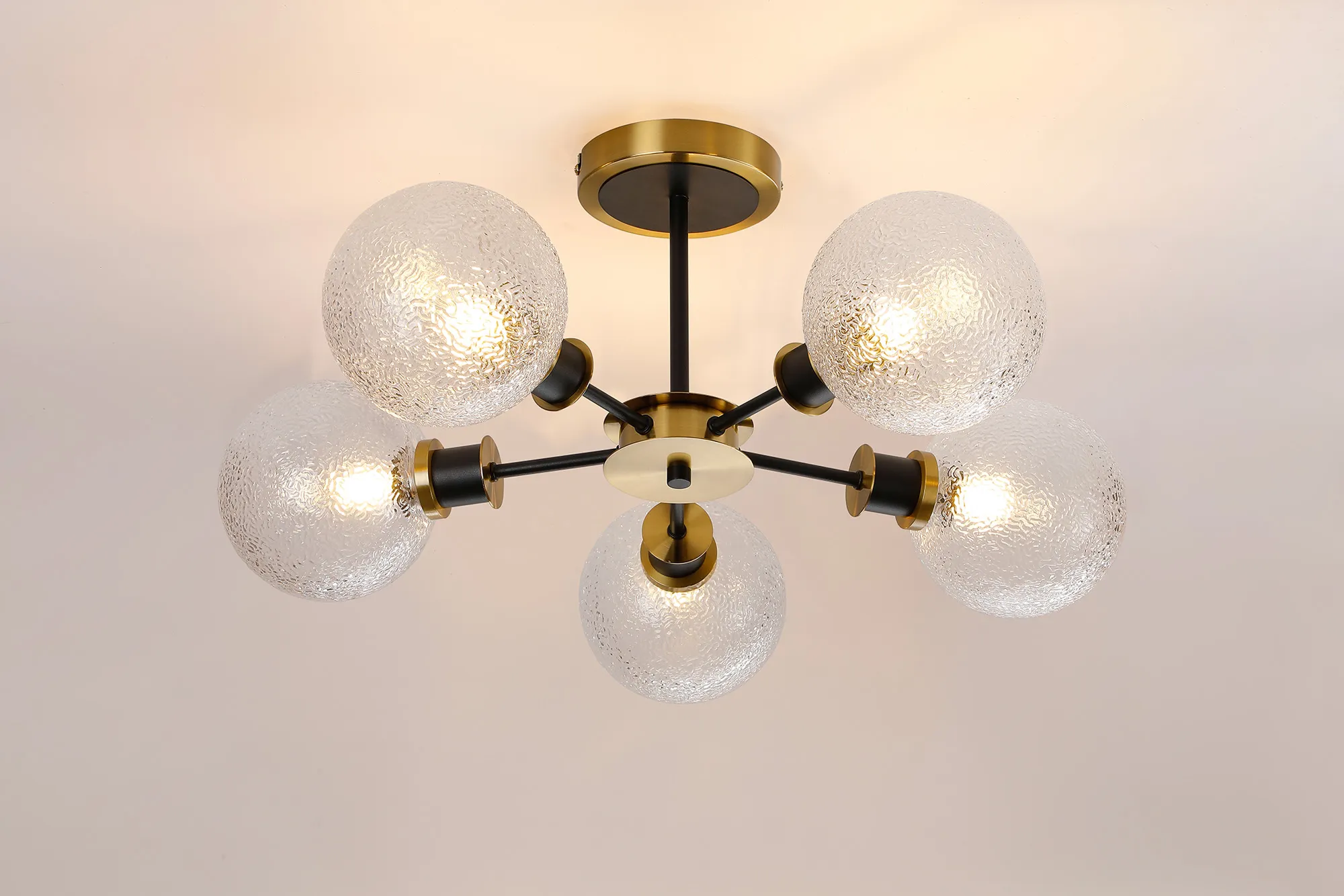 The Castana collection offers a sophisticated range of E14 lighting options, distinguished by elegant dual-tone colour finishes. Designed with versatility in mind, the collection allows you to create a personalised lighting setup by pairing fixtures with a selection of carefully crafted Castana glass shades. Each round glass piece features a unique pattern, showcasing finishes such as smooth marble, crackled surfaces, or crumpled textures that add visual interest and depth. The coordinated design between the fixtures and glass ensures a cohesive and customisable lighting solution, making it easy to tailor each piece to suit your individual style and space.