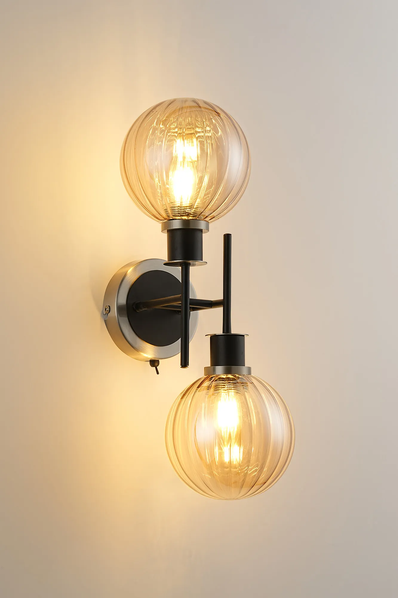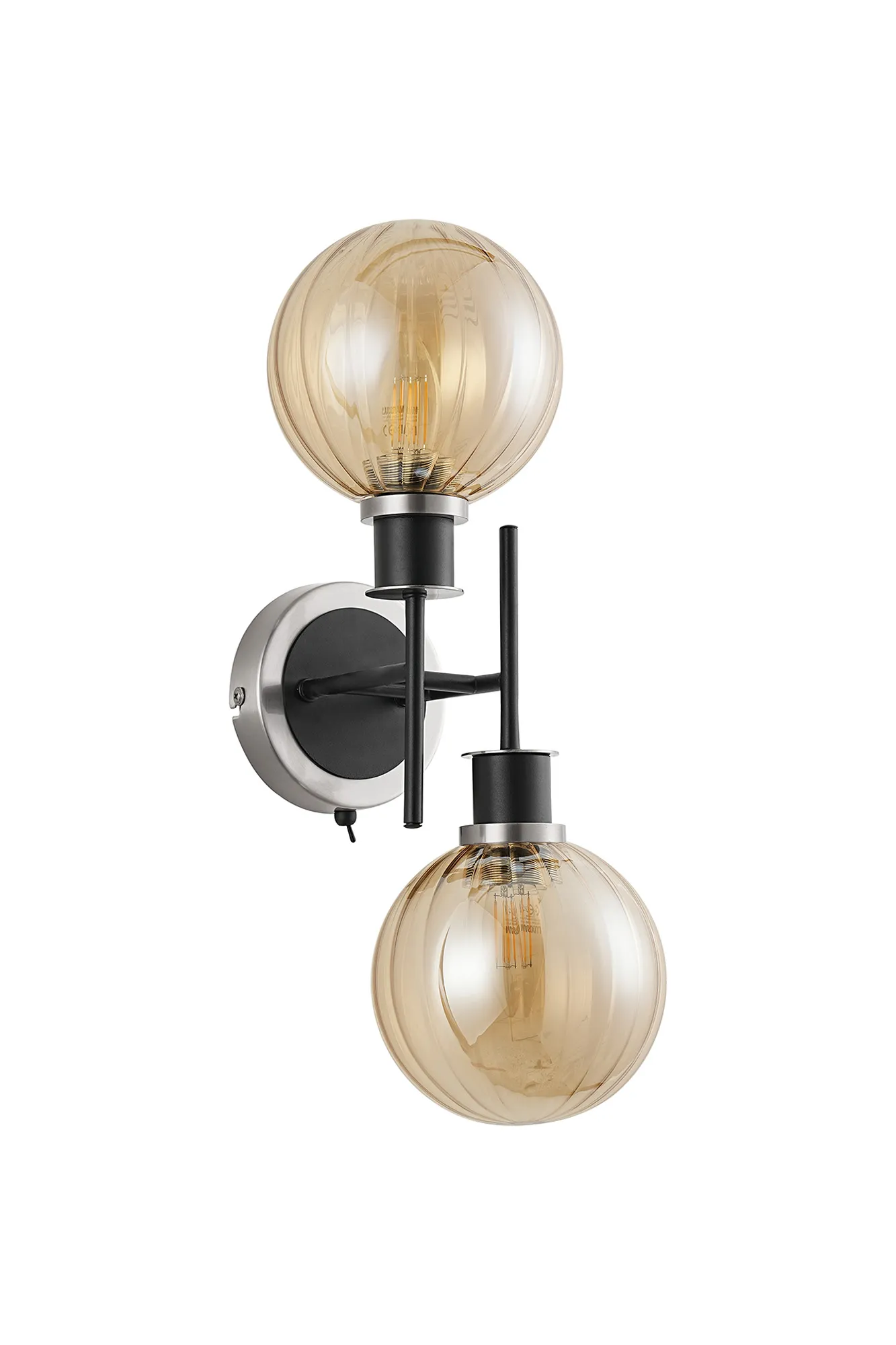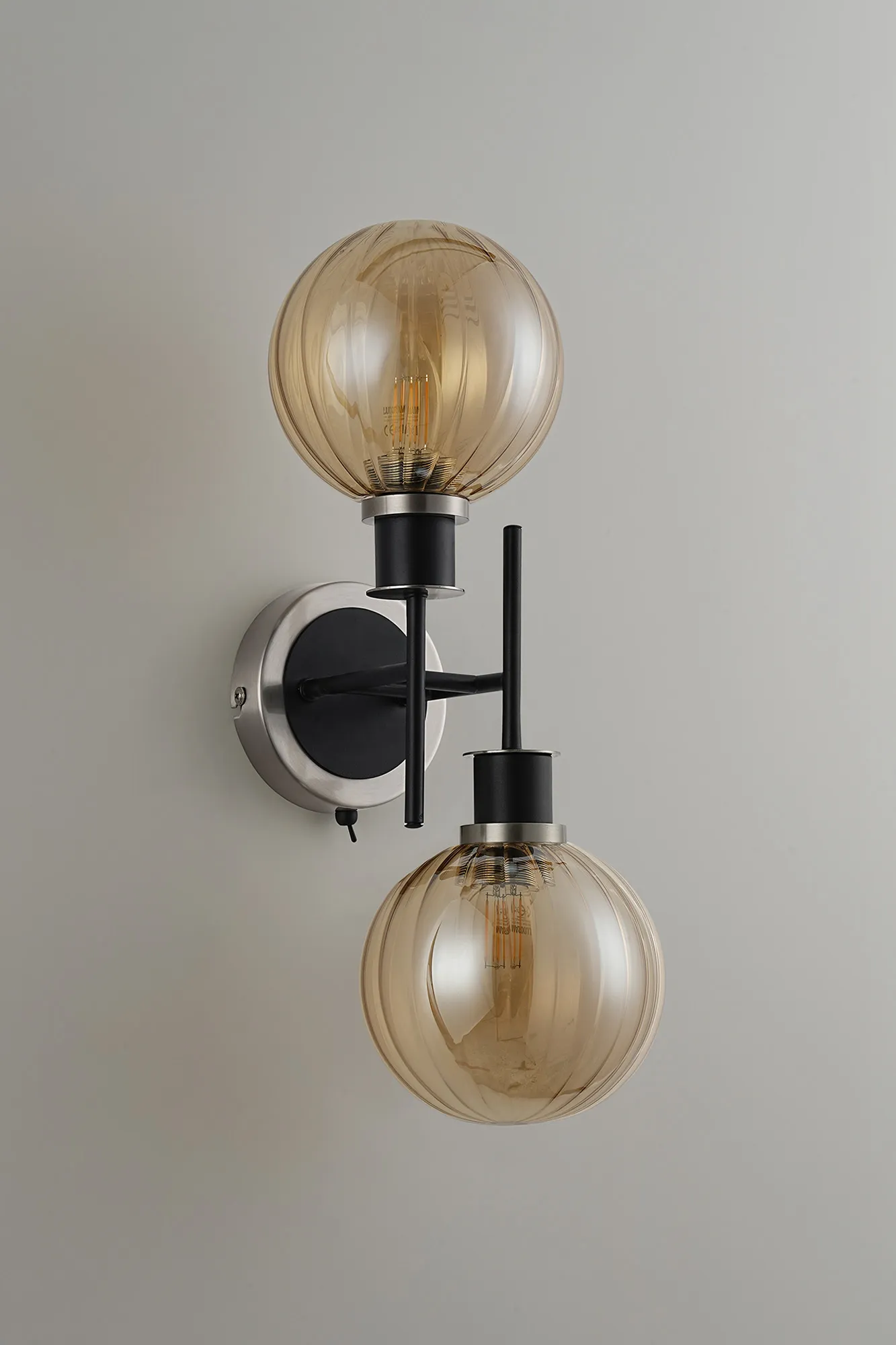 OTHER Castana Switched Wall Light, 2 x E14 With 15cm Round Segment Glass Shade, Satin Nickel, Amber Plated & Satin Black