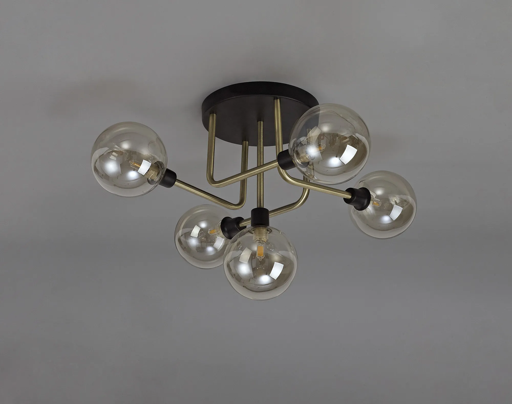 Cinigiano Flush Ceiling, 9 x G9, Matt Black/Antique Brass/Cognac Glass
